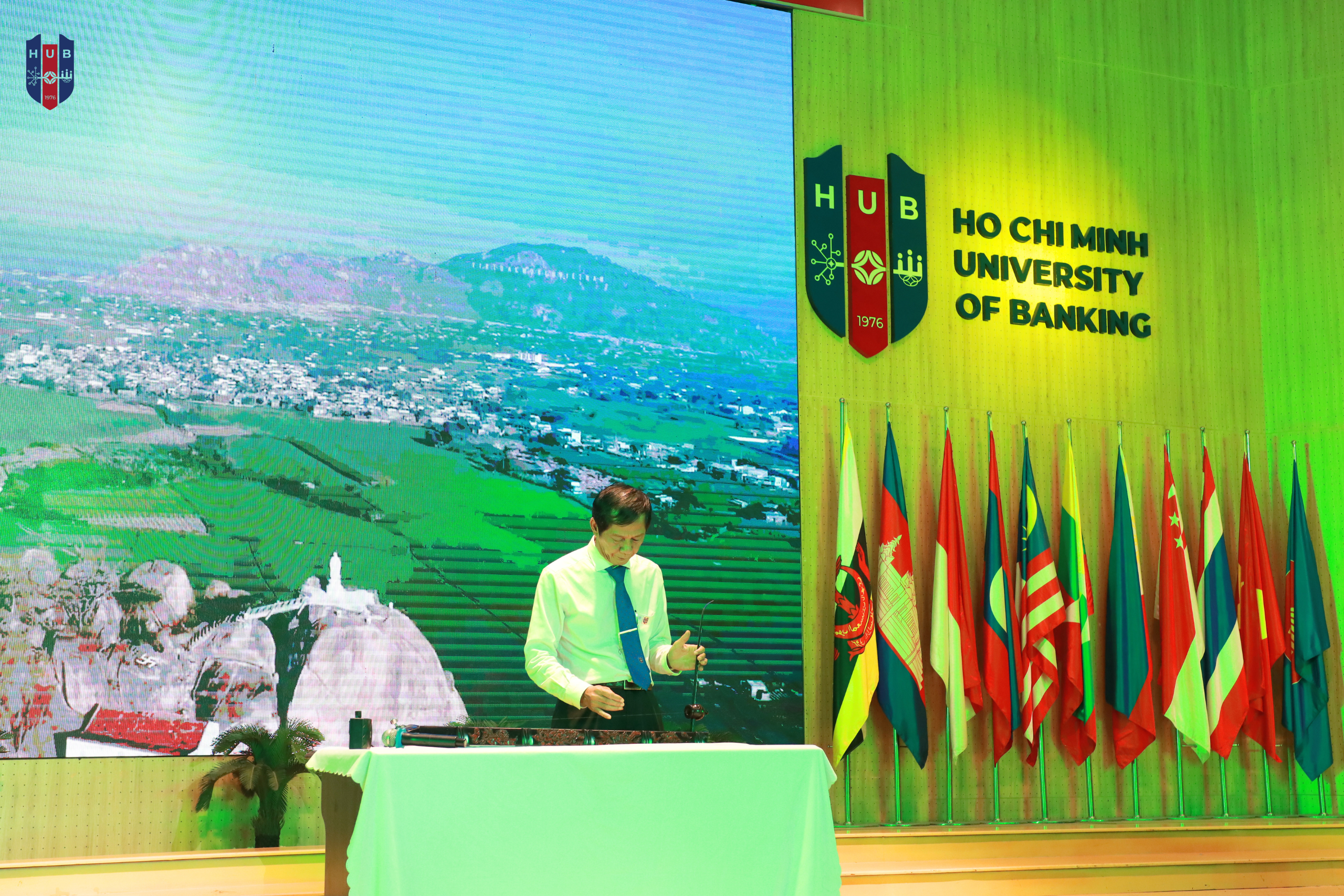 Chương trình mở đầu với giai điệu trong trẻo, thanh thoát của tiếng đàn bầu qua phần trình bày của PGS., TS. Lê Đình Hạc – Trưởng khoa Ngân hàng.