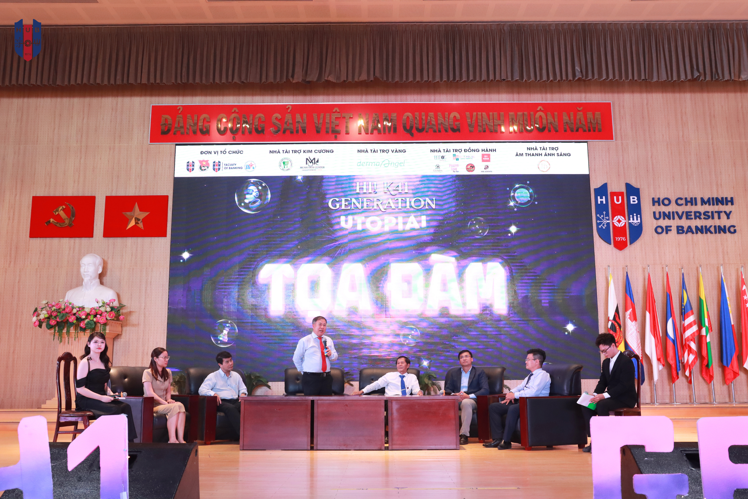 Một trong những điểm nhấn đáng nhớ của đêm hội là buổi tọa đàm với chủ đề “Định hình tương lai – Khám phá sự nghiệp”, có sự tham gia của các giảng viên, chuyên gia giàu kinh nghiệm trong lĩnh vực tài chính – ngân hàng: