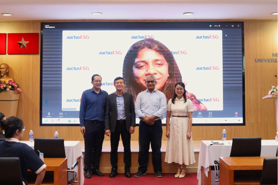 Buổi tọa đàm vinh dự đón tiếp ông Sourajit Aiyer, đồng sáng lập Trung tâm Hành động Kinh doanh Bền vững và Trí tuệ nhân tạo (Sustainability & AI Business Action Center, được hỗ trợ bởi Đại học Sussex, Vương quốc Anh), và bà Sudha Meiyappan, chuyên gia tư vấn cao cấp trong lĩnh vực tài chính xanh, tham dự và chia sẻ.