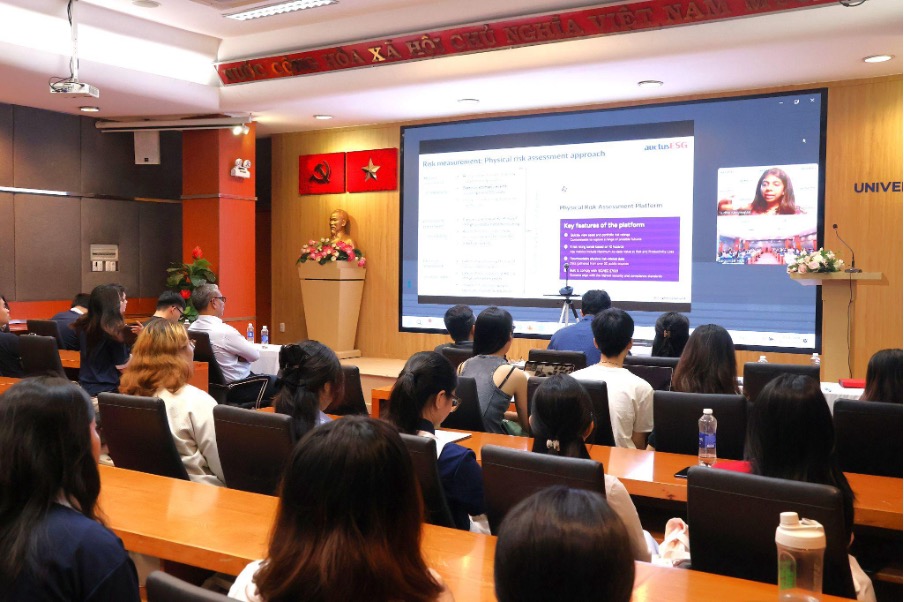 Các diễn giả đã mang đến những góc nhìn toàn cầu về mối liên hệ giữa biến đổi khí hậu, rủi ro tài chính và phát triển bền vững, giúp sinh viên HUB hiểu rõ hơn cách mà ngân hàng, nhà đầu tư và chính phủ có thể chung tay xây dựng một nền kinh tế xanh và có khả năng chống chịu trước biến động môi trường.
