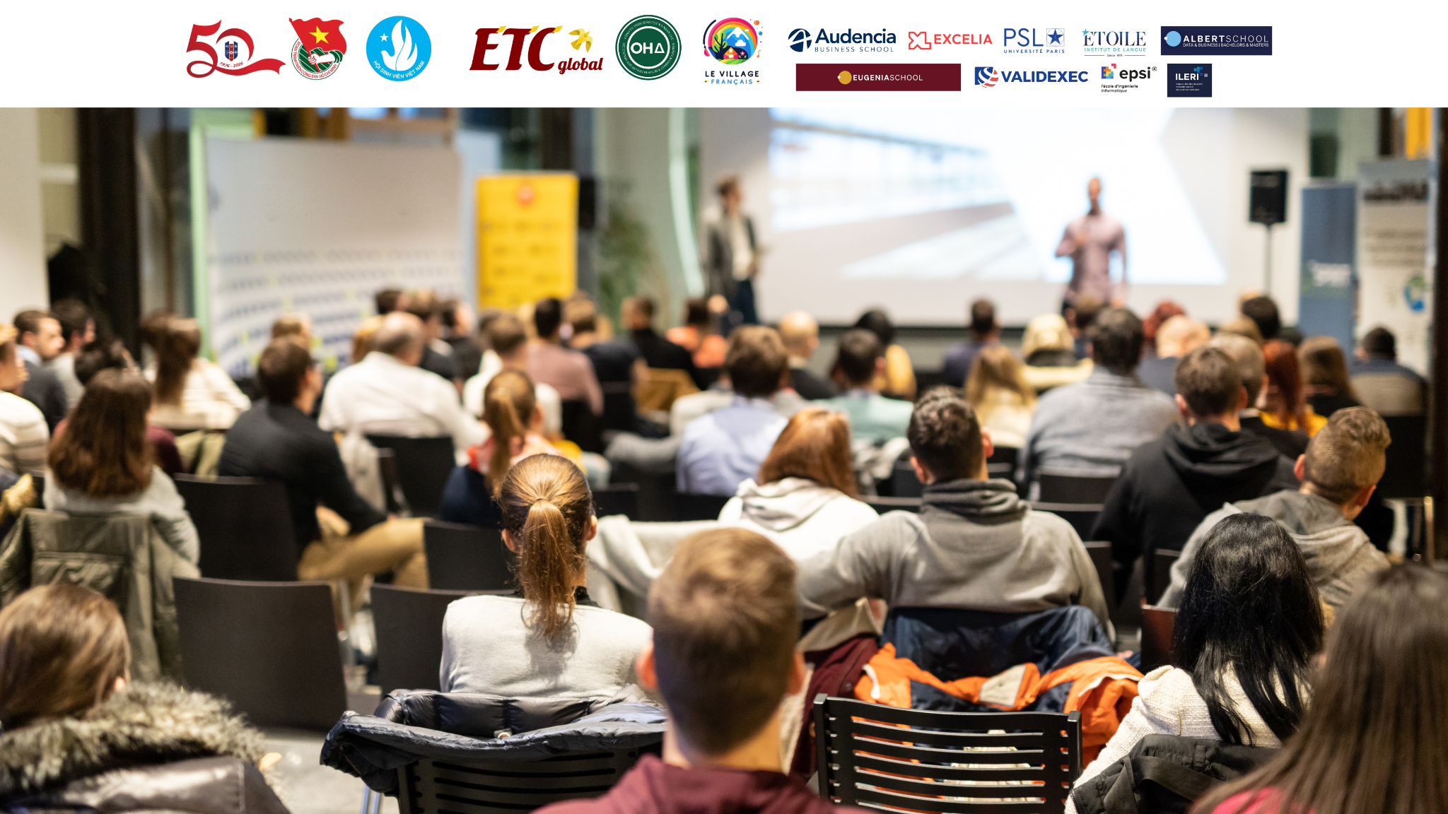 Sự kiện có sự tham gia của đại diện các trường đại học và business school uy tín tại Pháp như Audencia Business School và Excelia Business School, thu hút đông đảo sinh viên tham dự và tìm hiểu thông tin về hệ thống giáo dục Pháp.