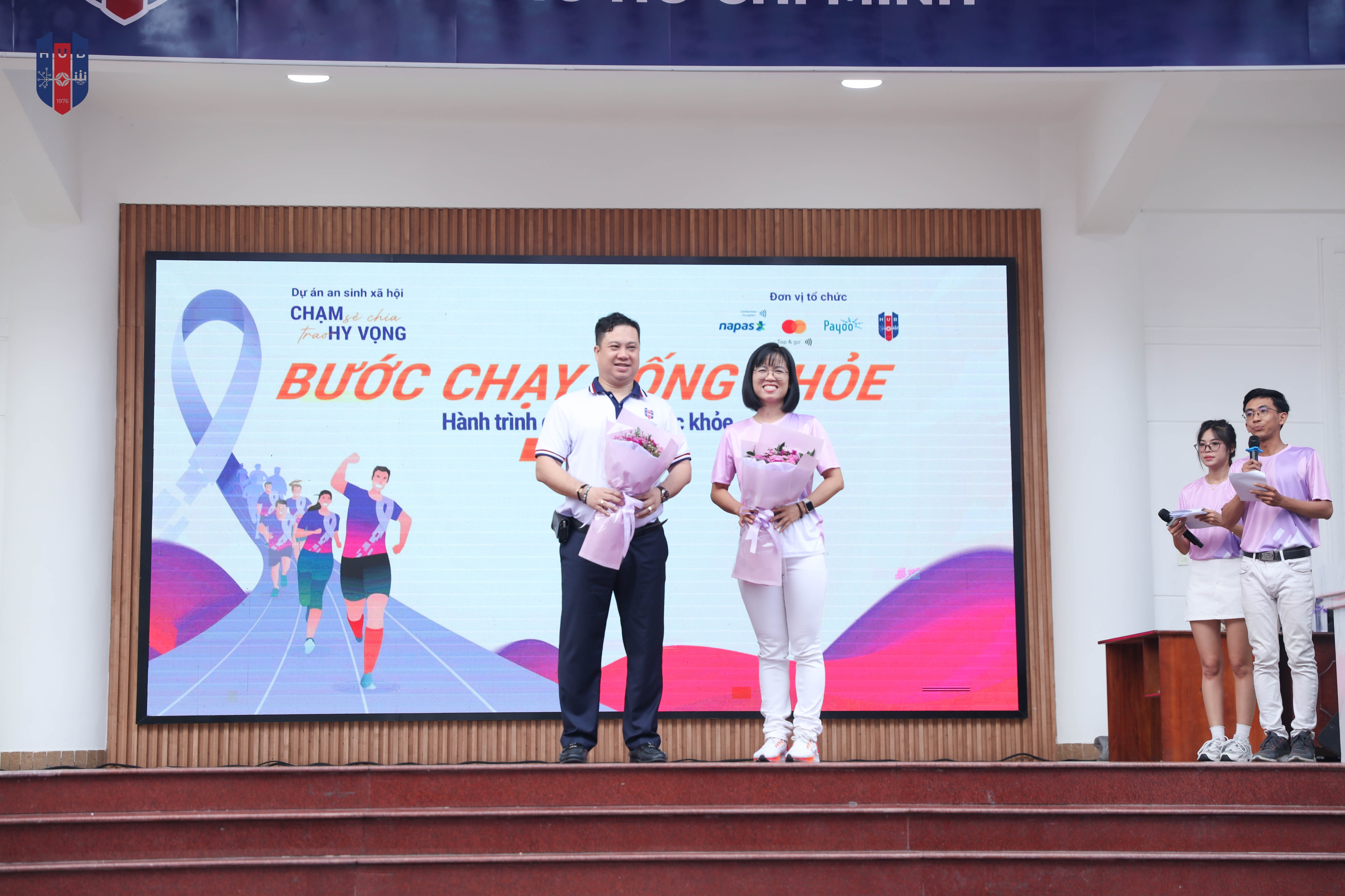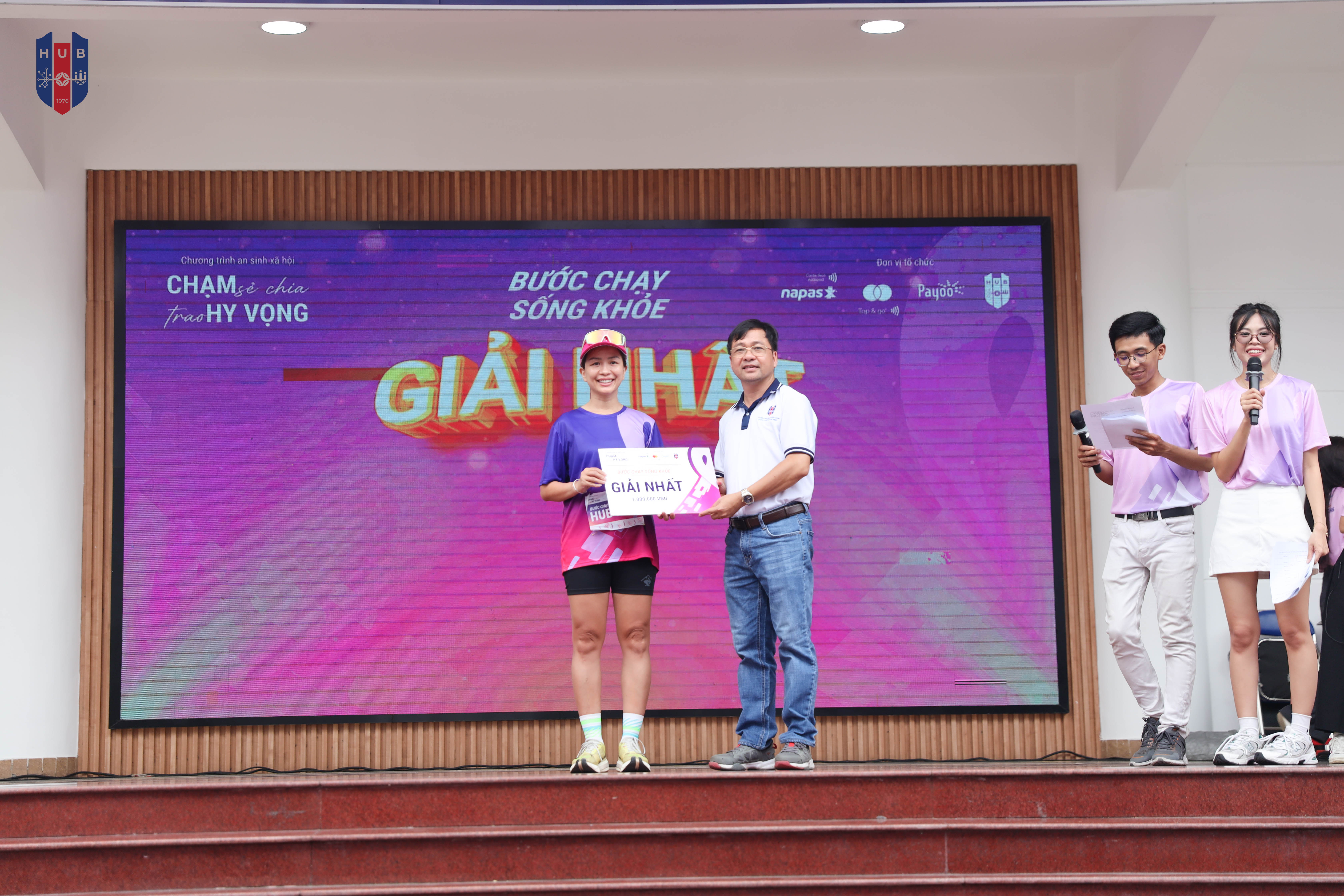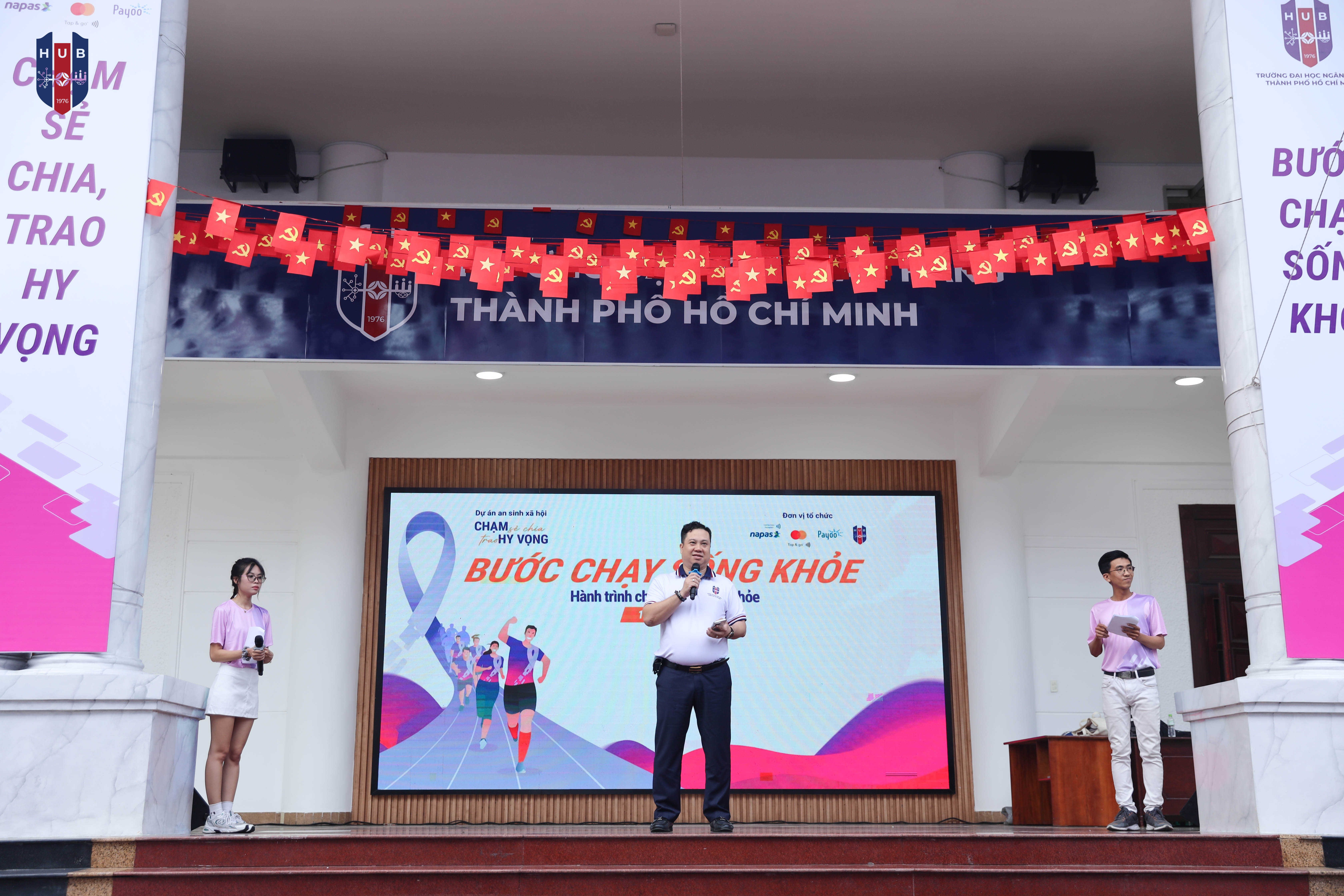 Phát biểu khai mạc chương trình, PGS.TS Nguyễn Đức Trung – Hiệu trưởng Trường Đại học Ngân hàng TP.HCM gửi lời chúc mừng đến các vận động viên và nhấn mạnh ý nghĩa nhân văn sâu sắc của hoạt động thể thao đặc biệt này. Mỗi bước chạy của cán bộ, giảng viên và sinh viên HUB không chỉ mang thông điệp rèn luyện sức khỏe mà còn góp phần quyên góp kinh phí tầm soát ung thư miễn phí cho phụ nữ yếu thế tại TP.HCM và Hà Nội – đúng với tinh thần “Chạy để sẻ chia – Trao hy vọng”.