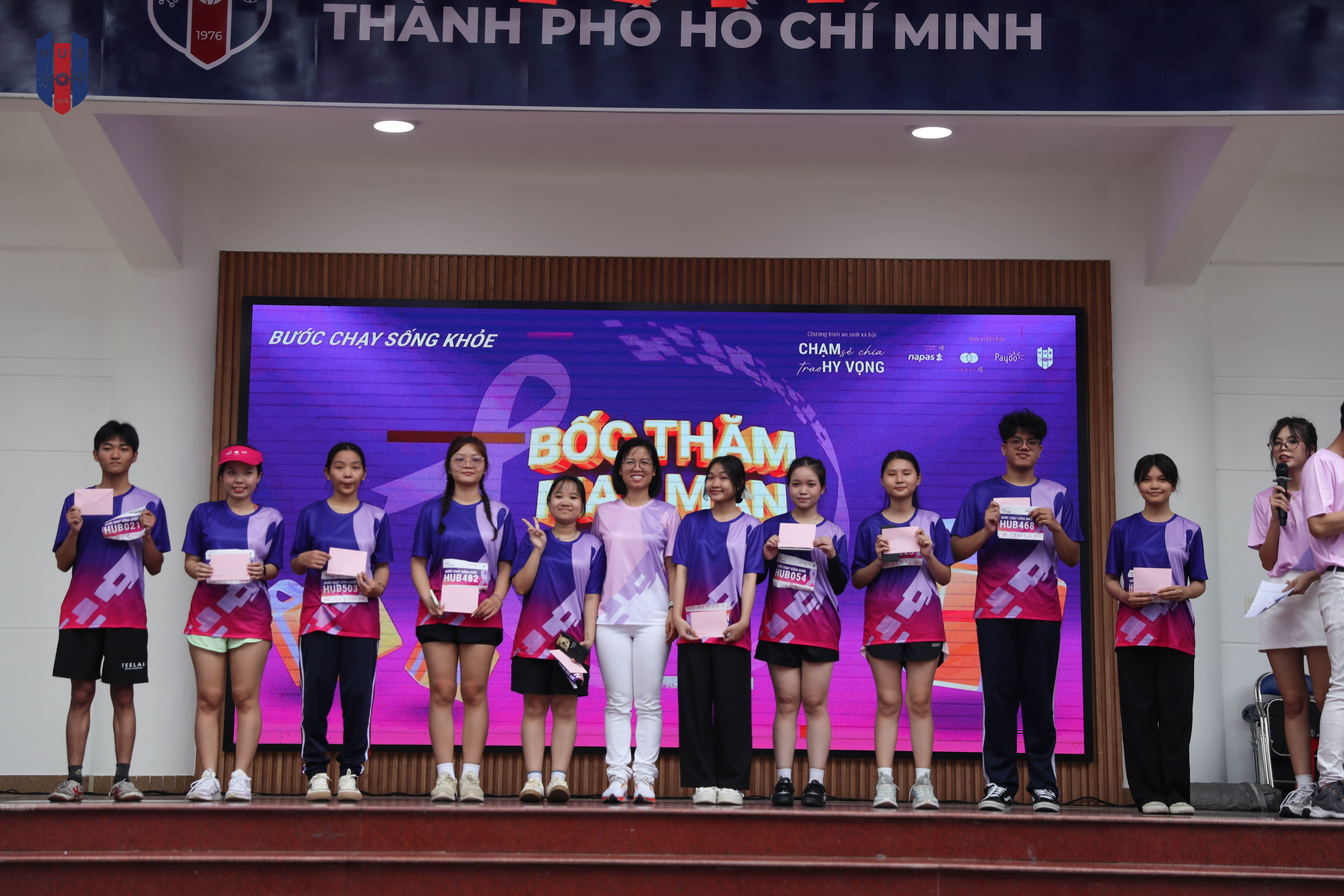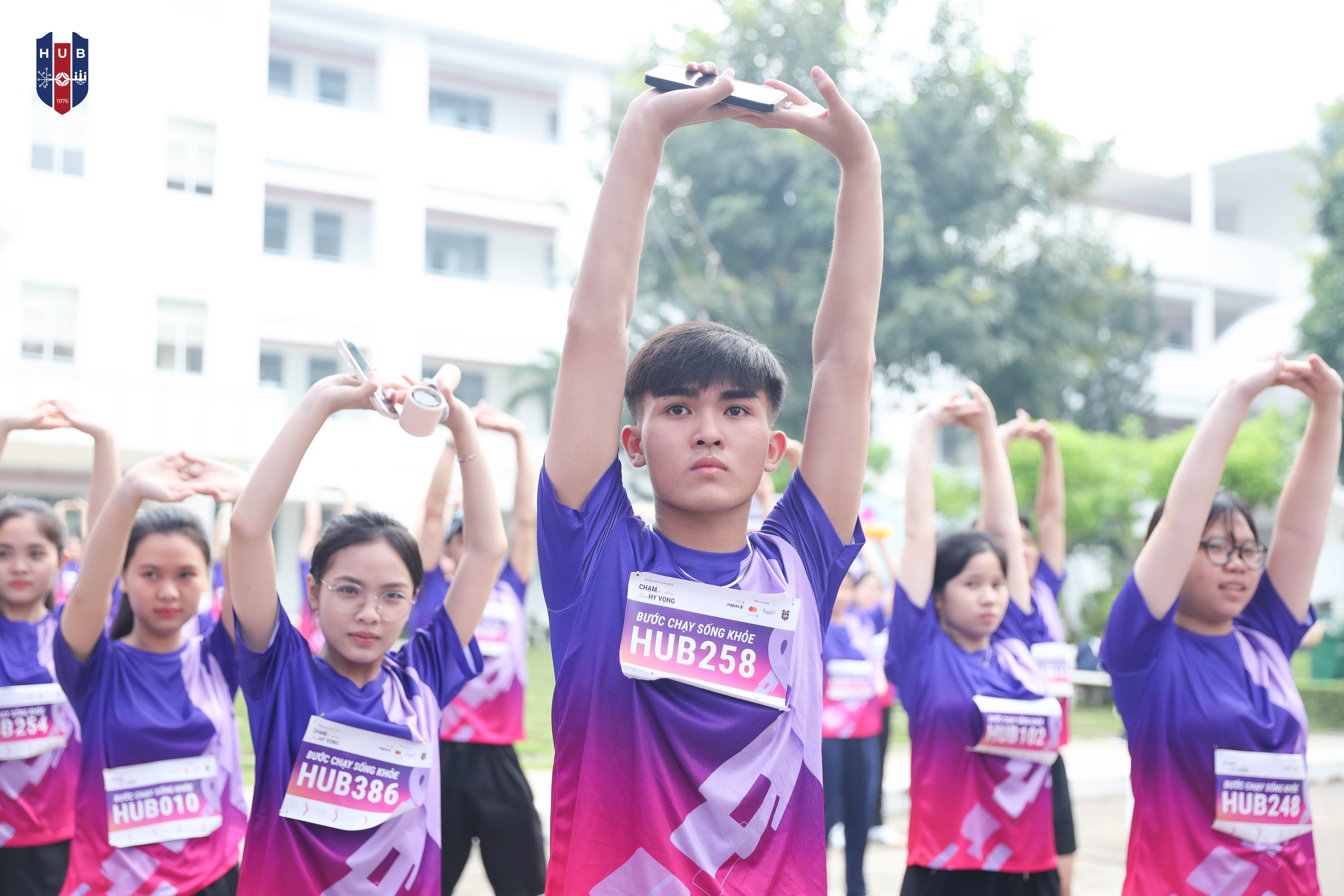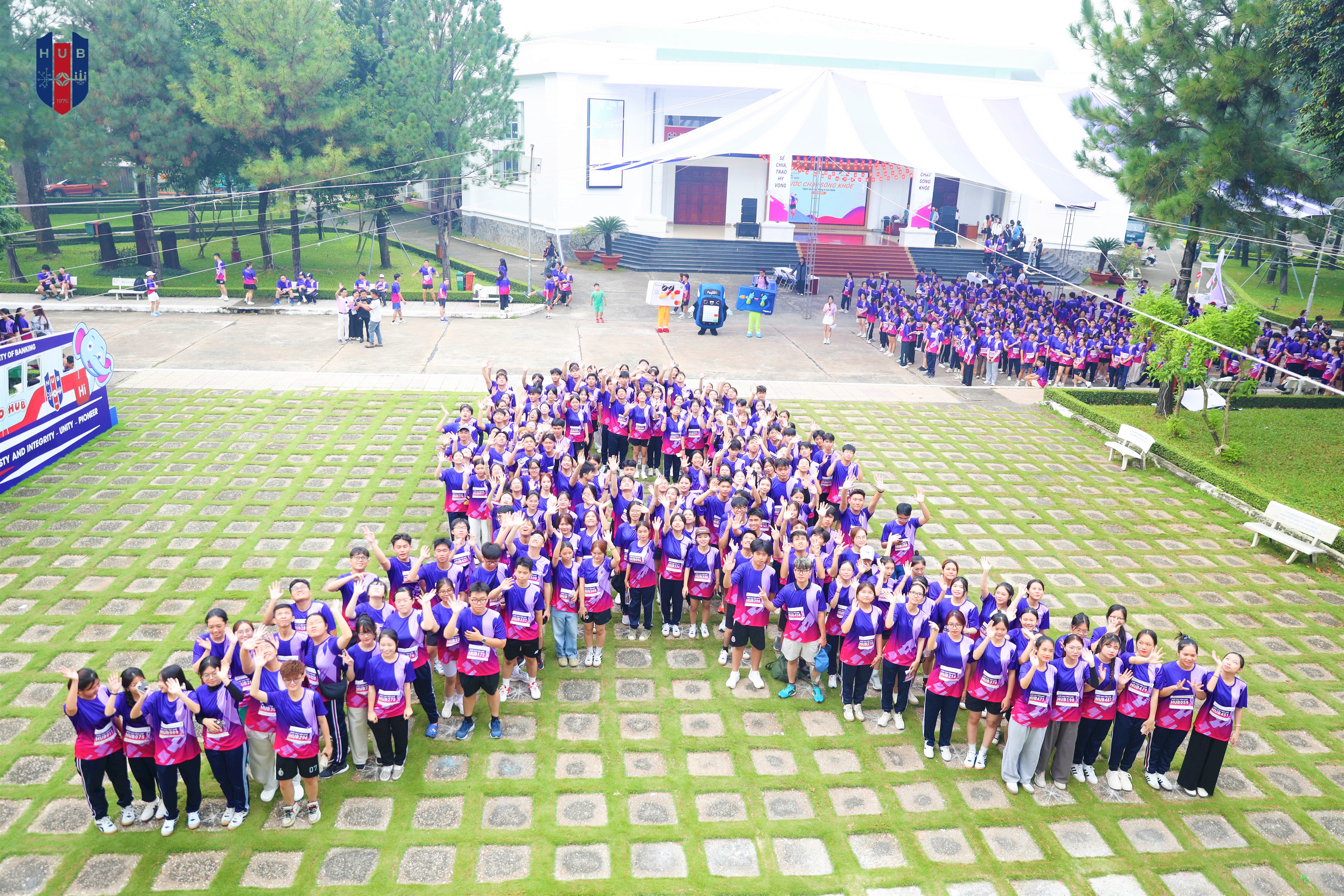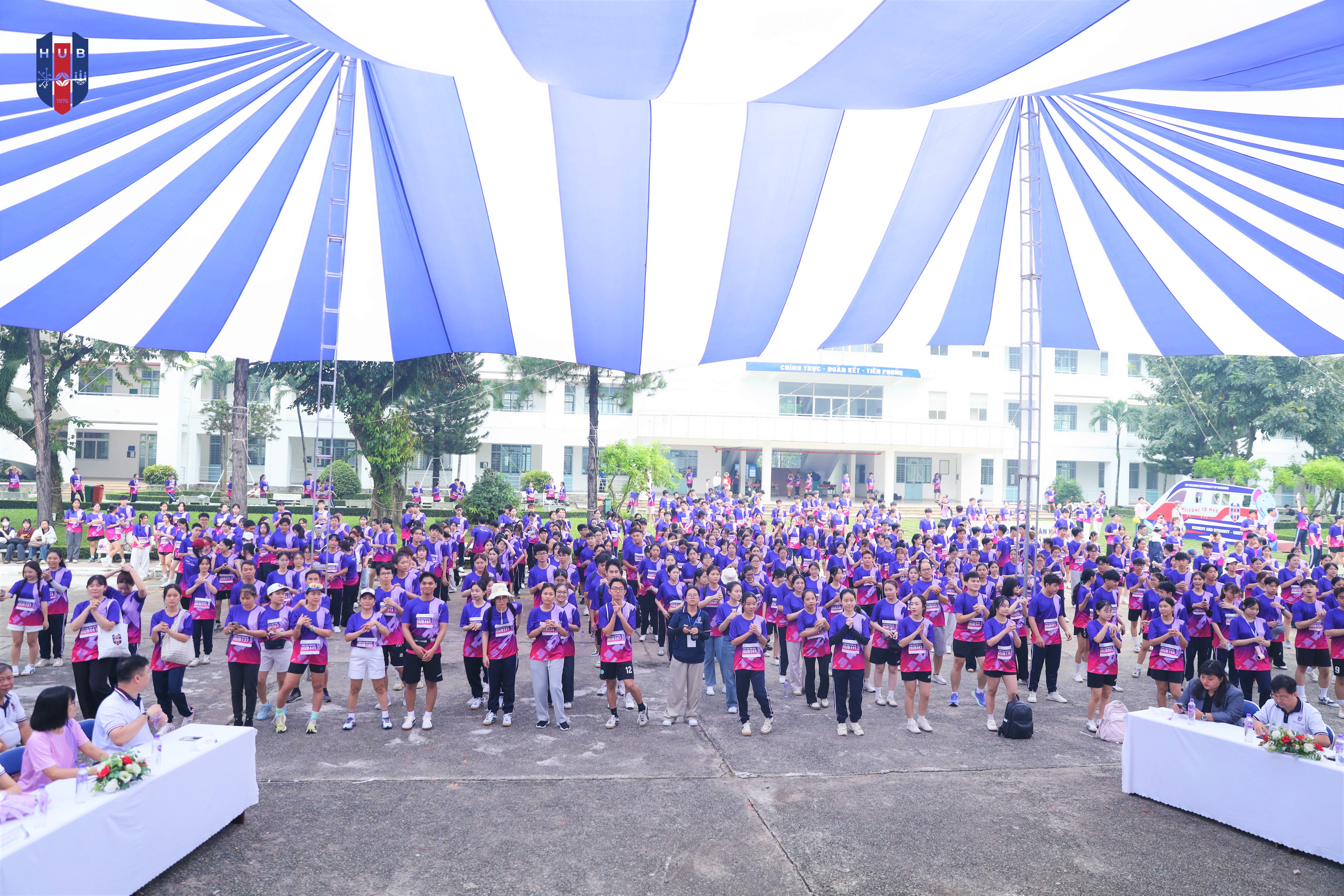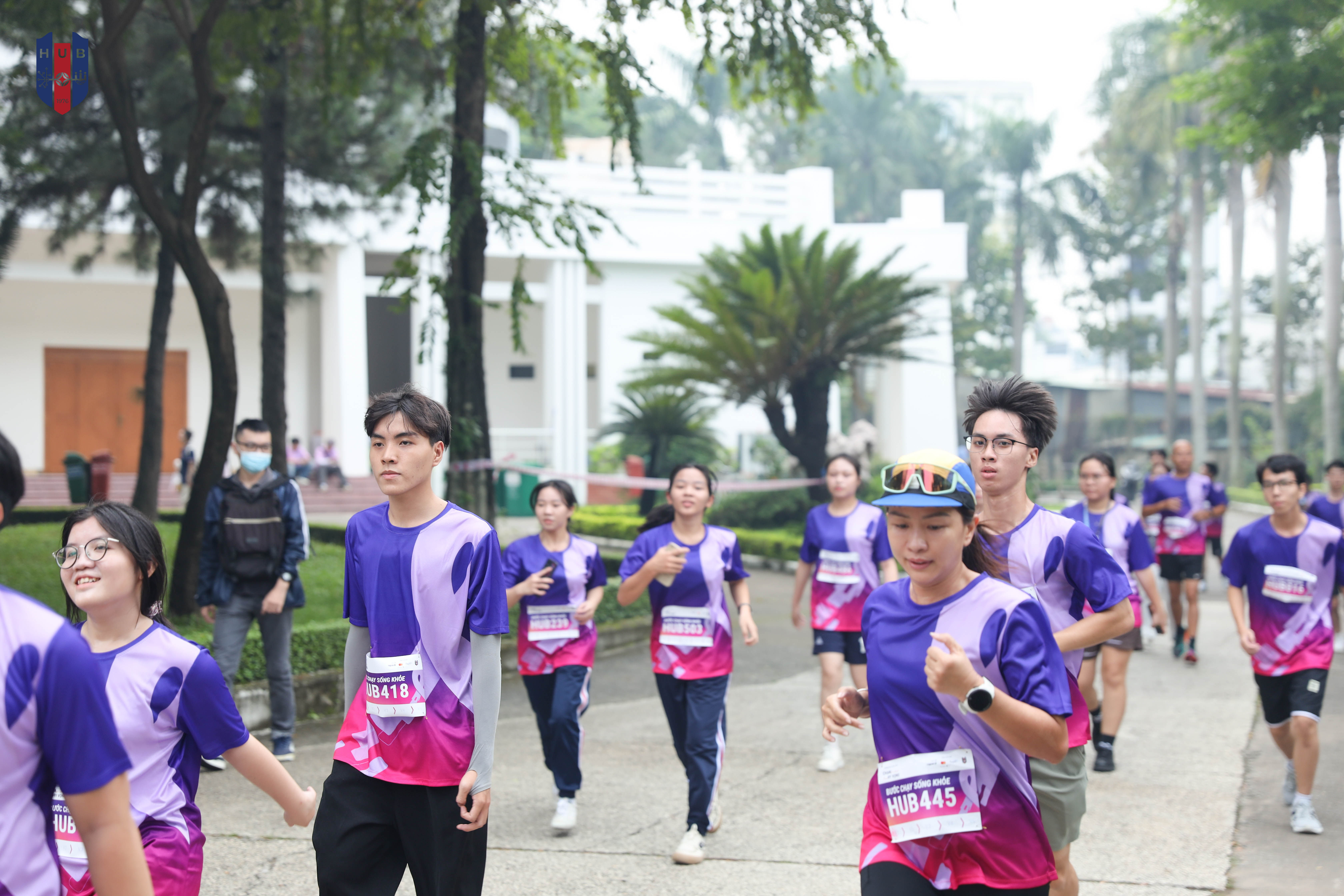 Chương trình thu hút hơn 500 vận động viên (VCV) là giảng viên, cán bộ nhân viên, cựu sinh viên và sinh viên HUB tham gia chinh phục cự ly 5km trong khuôn viên trường. Không khí trở nên sôi động ngay từ phần khởi động thể thao và chụp ảnh tập thể tạo hình chiếc nơ tím – biểu tượng của chiến dịch “Chạm sẻ chia, Trao hy vọng”. Hình ảnh tập thể HUB rạng rỡ trong sắc tím đã tạo nên khoảnh khắc đáng nhớ, thể hiện tinh thần đoàn kết, sẻ chia và năng lượng tích cực của cộng đồng HUB.