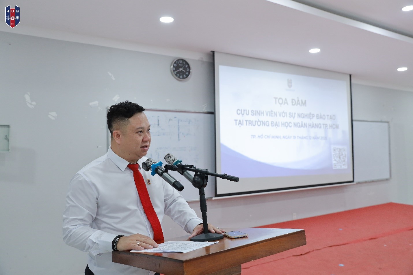 Hội nghị có sự tham dự: PGS.TS Đoàn Thanh Hà – Bí thư Đảng ủy, Chủ tịch Hội đồng trường; GS.TS Nguyễn Đức Trung – Phó Bí thư Đảng ủy, Phó Chủ tịch Hội đồng trường, Hiệu trưởng Trường Đại học Ngân hàng TP.HCM; TS Phan Ngọc Minh – Chủ nhiệm CLB HUB Alumni