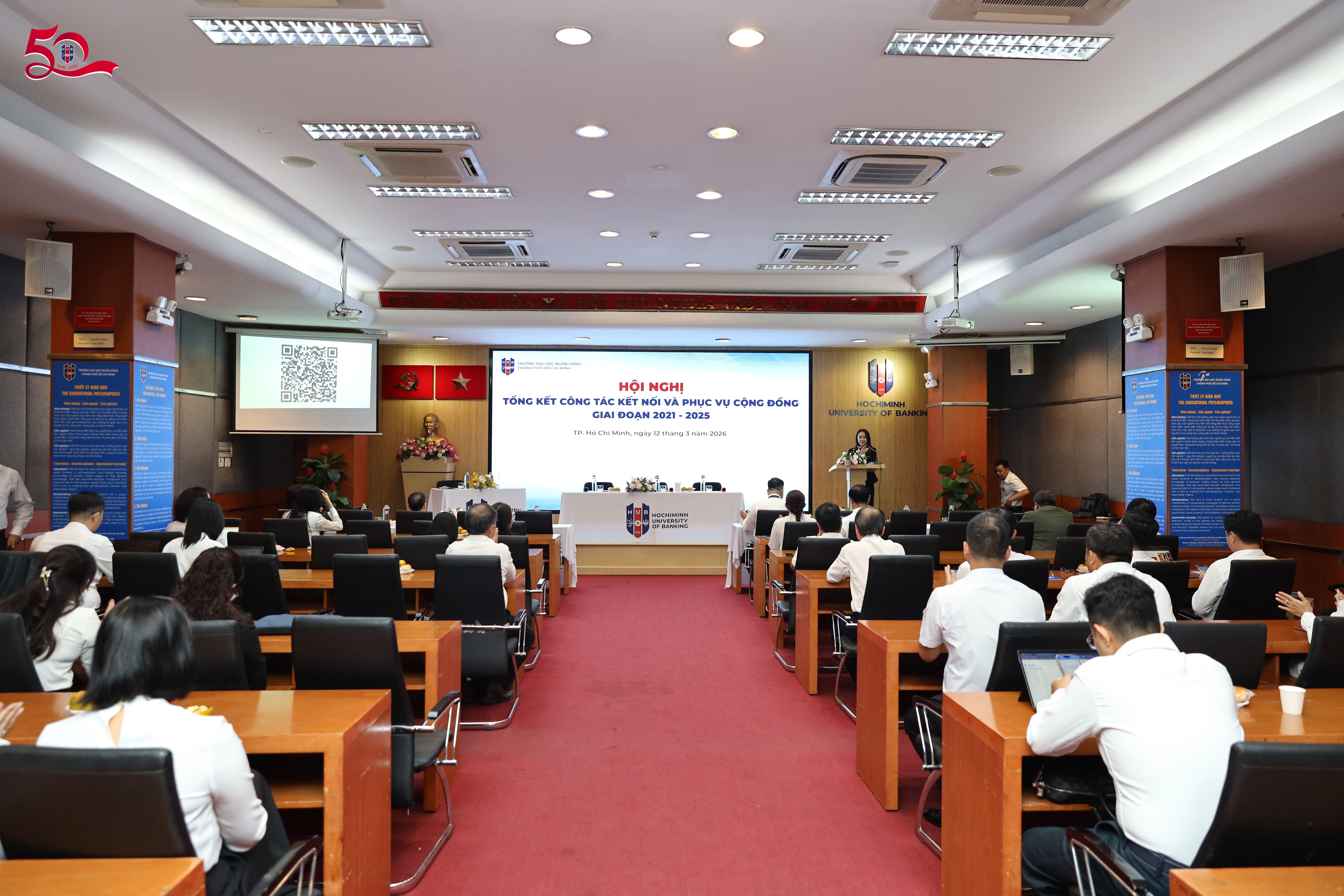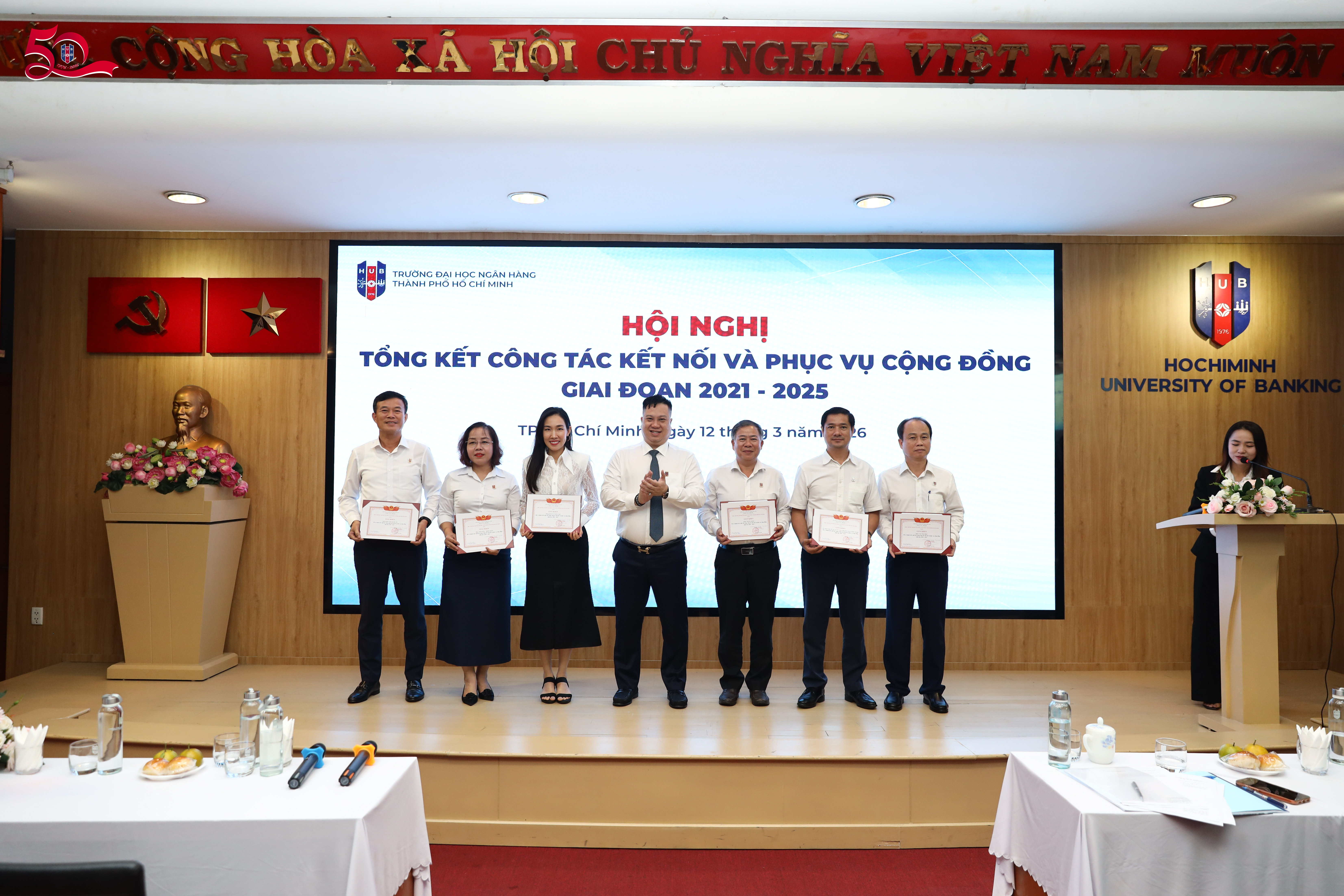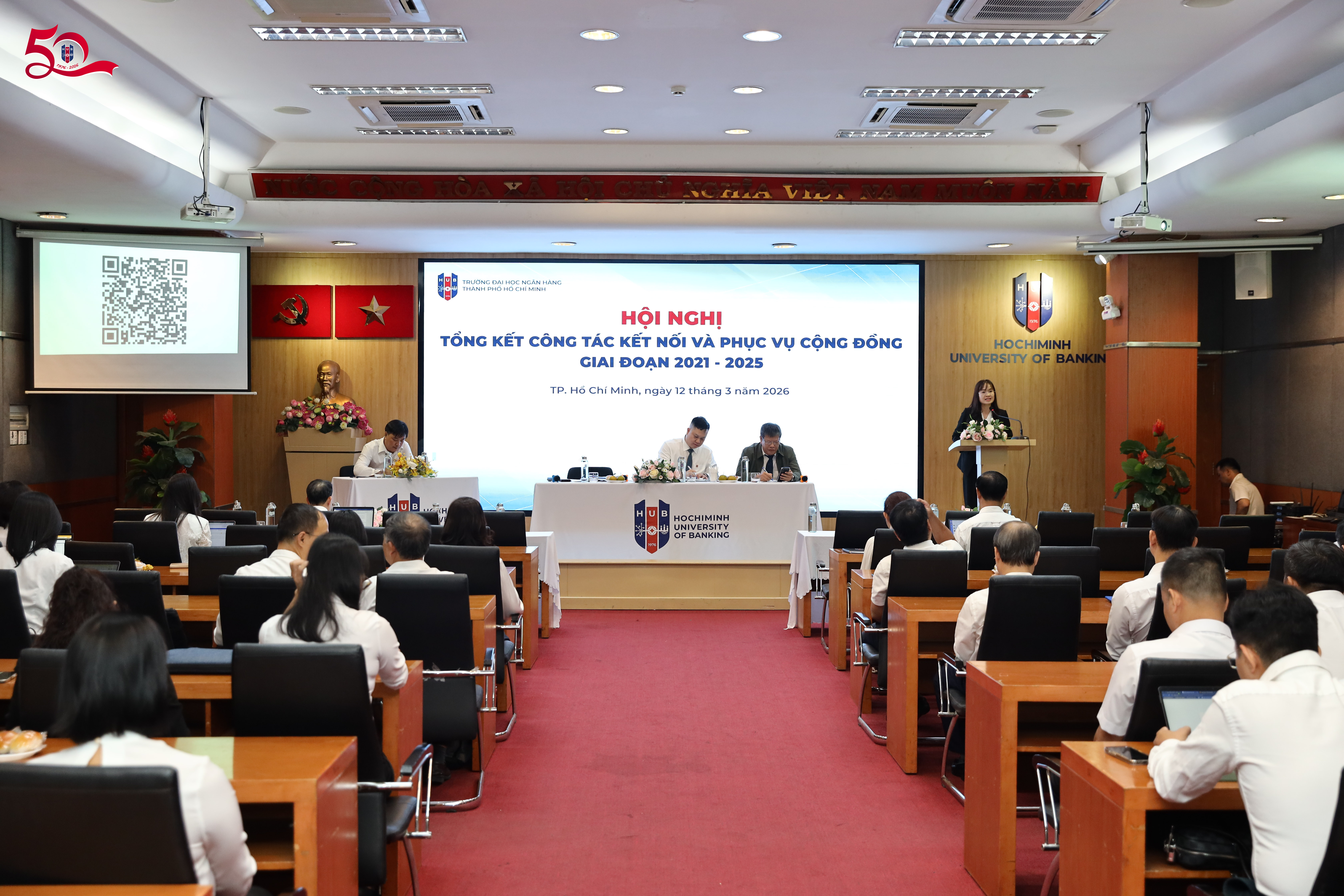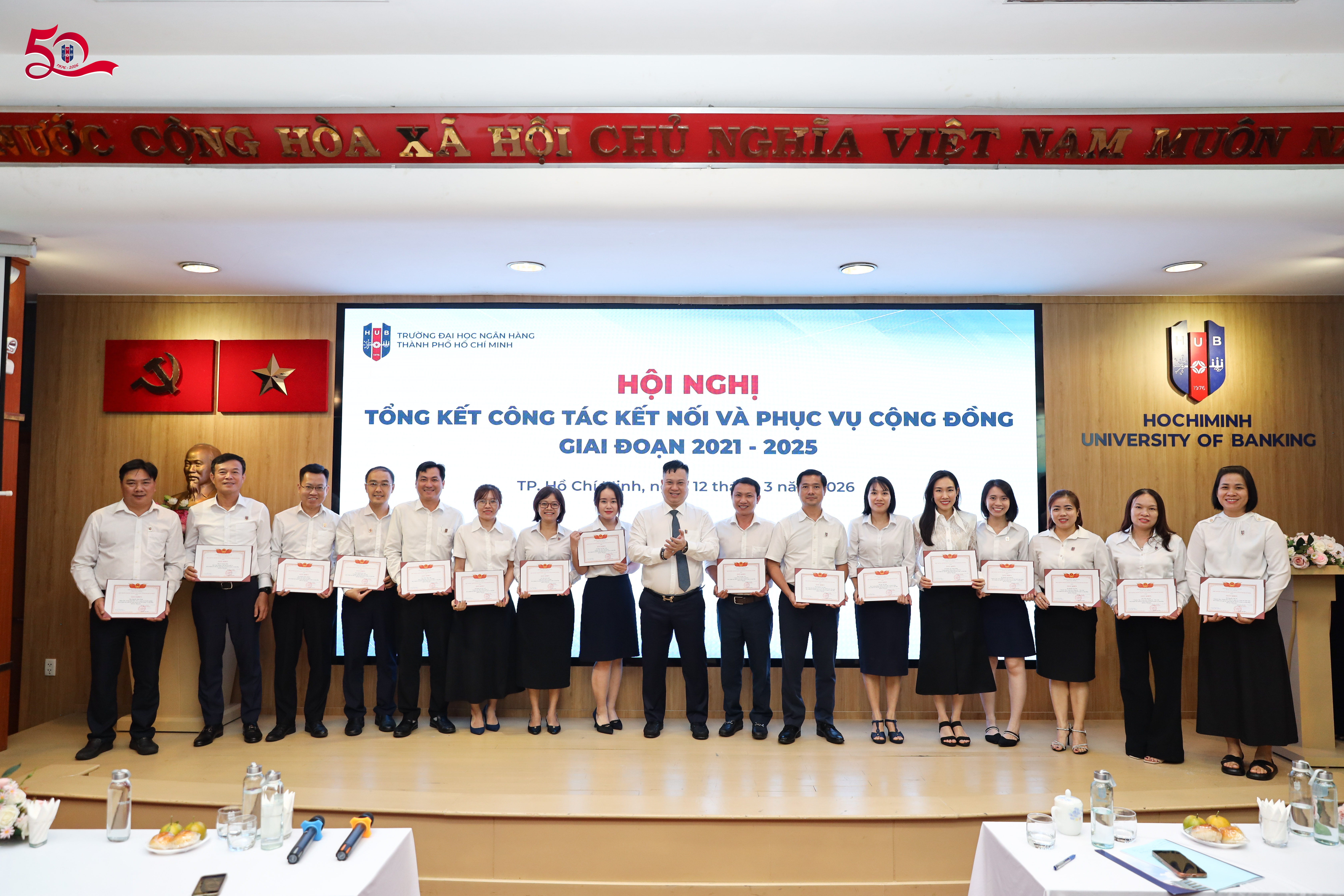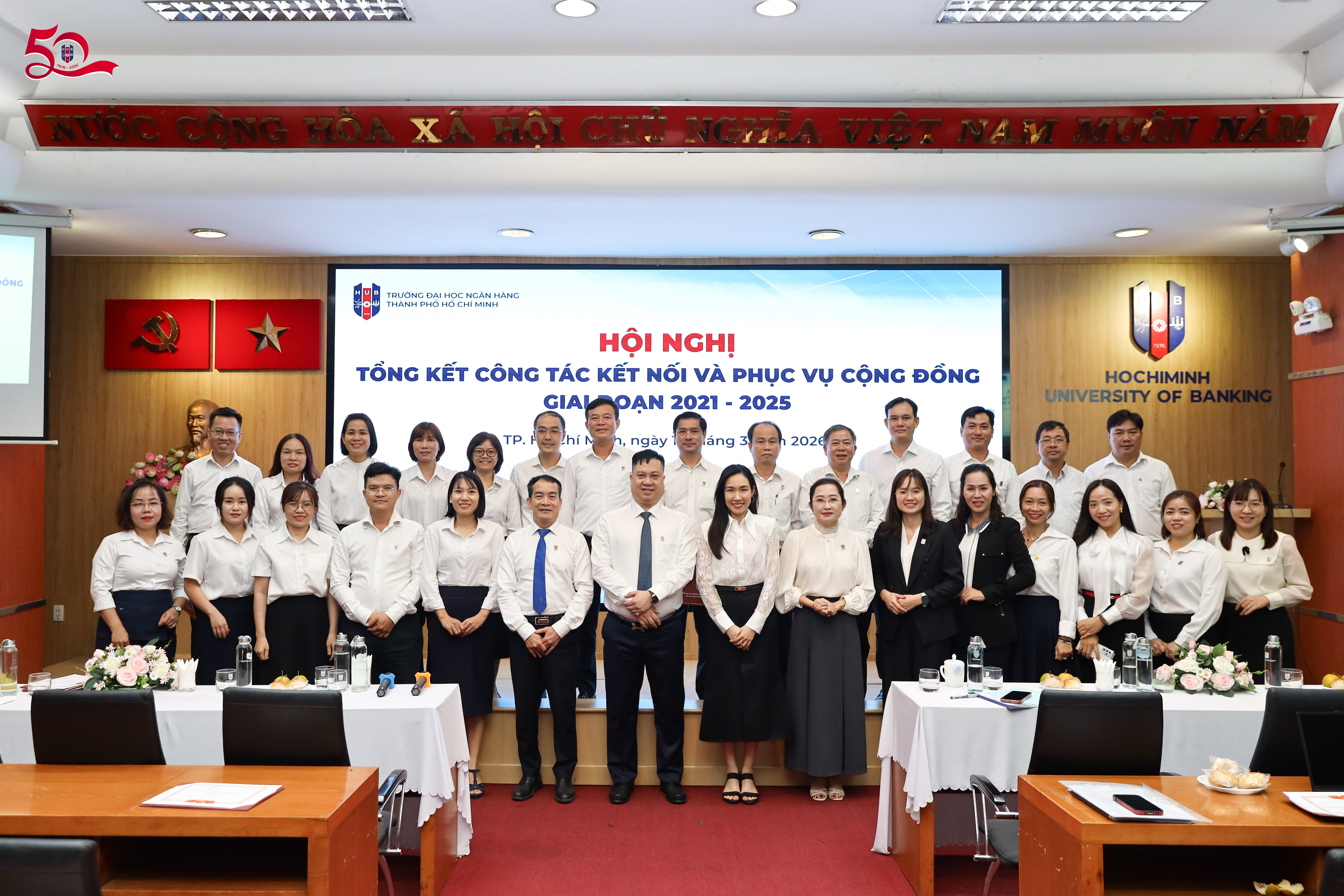 Ngày 12/3, tại cơ sở 36 Tôn Thất Đạm, Trường Đại học Ngân hàng TP. Hồ Chí Minh đã tổ chức Hội nghị tổng kết công tác kết nối và phục vụ cộng đồng giai đoạn 2021–2025 và định hướng giai đoạn 2026–2030. Hội nghị nhằm đánh giá những kết quả đạt được trong giai đoạn vừa qua, đồng thời trao đổi, đề xuất các giải pháp nhằm nâng cao hiệu quả triển khai các hoạt động kết nối và phục vụ cộng đồng trong thời gian tới.