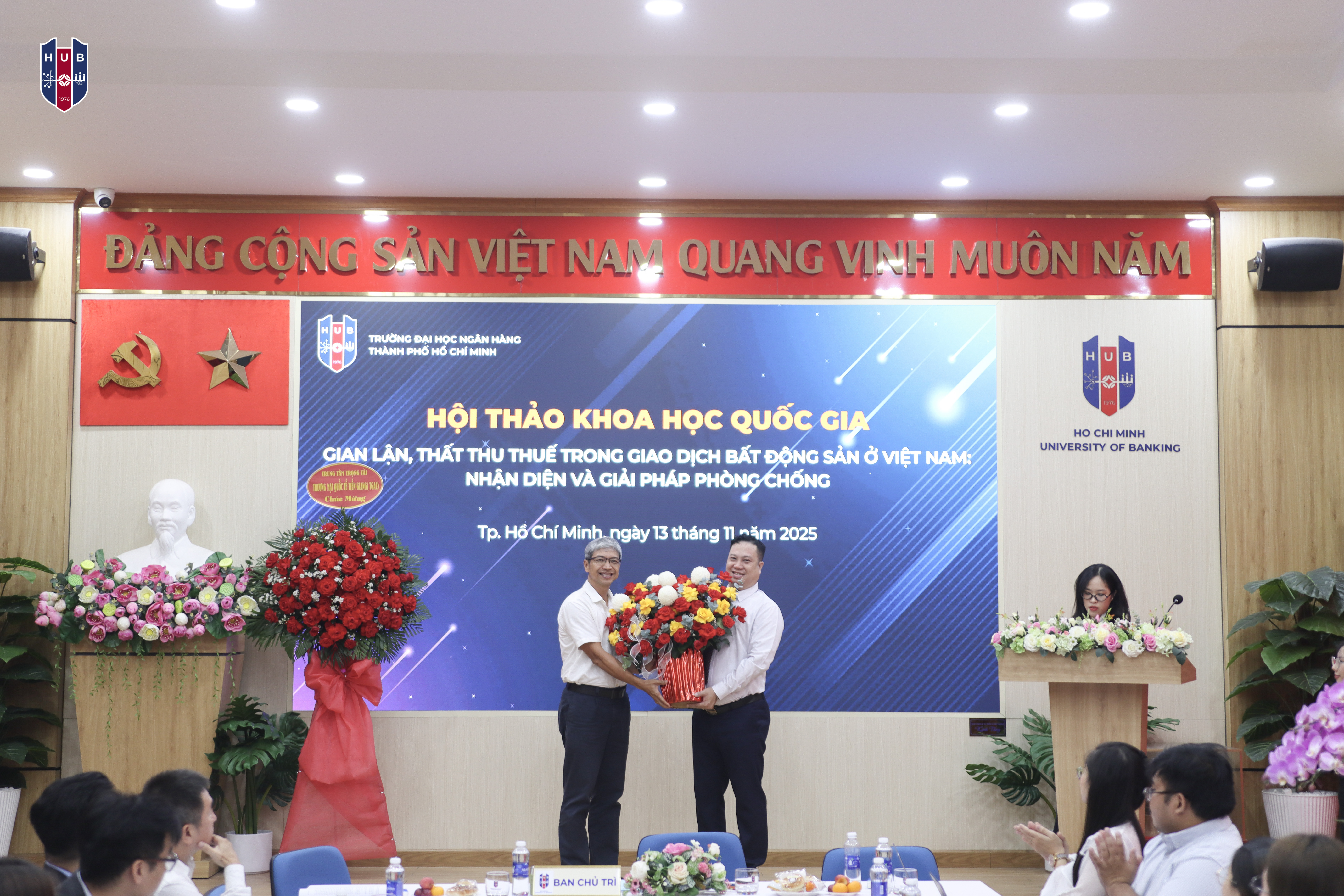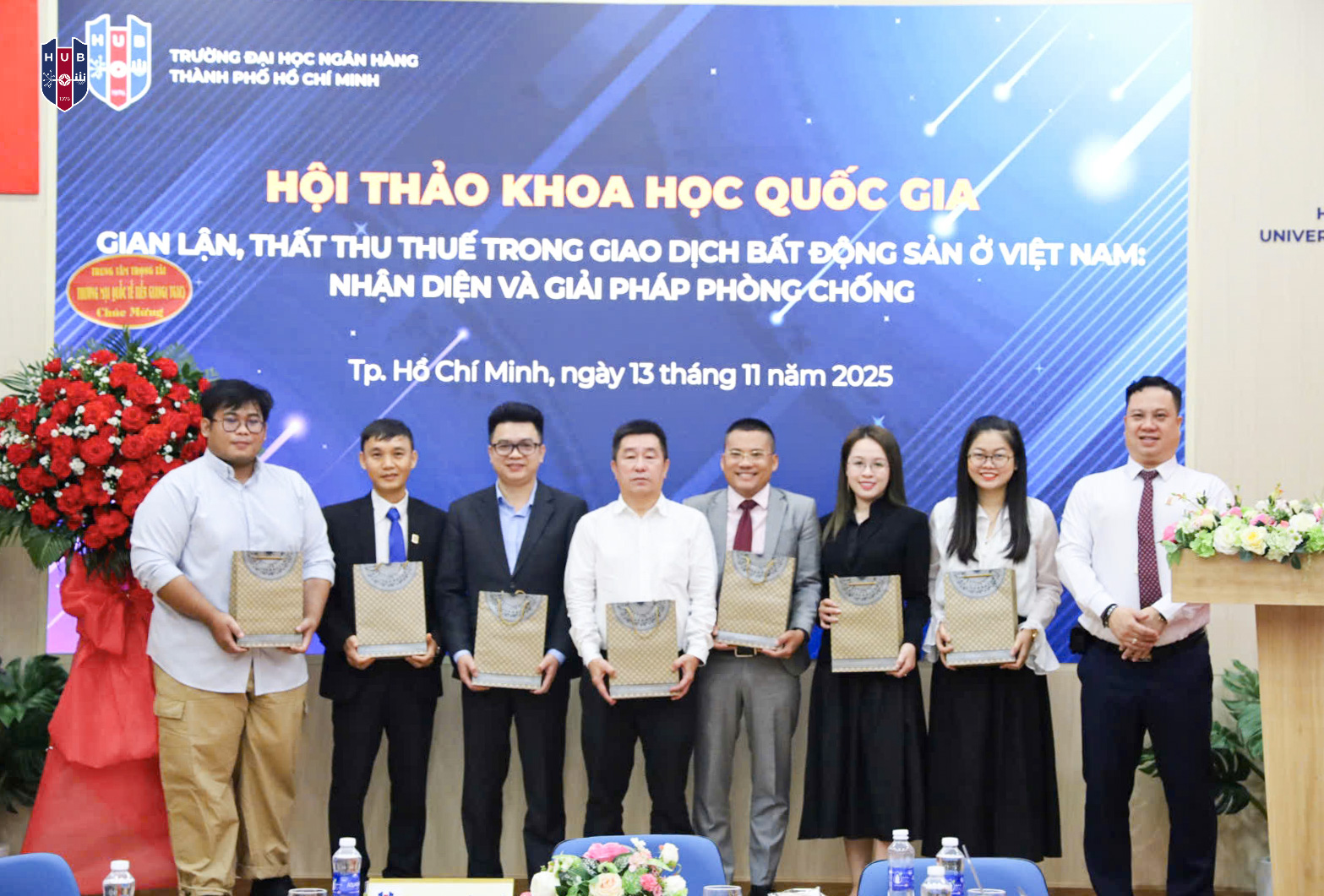 Sáng ngày 13/11/2025, tại cơ sở 56 Hoàng Diệu 2, Khoa Luật kinh tế Trường Đại học Ngân hàng TP. Hồ Chí Minh đã tổ chức Hội thảo quốc gia: Gian lận, thất thu thuế trong giao dịch Bất động sản ở Việt Nam: Nhận diện và giải pháp phòng chống. Hội thảo đã có sự tham dự của các chuyên gia pháp lý, Nhà nghiên cứu, đại diện cơ quan thuế TP. HCM, các công ty Luật, Trung tâm trọng tài thương mại: