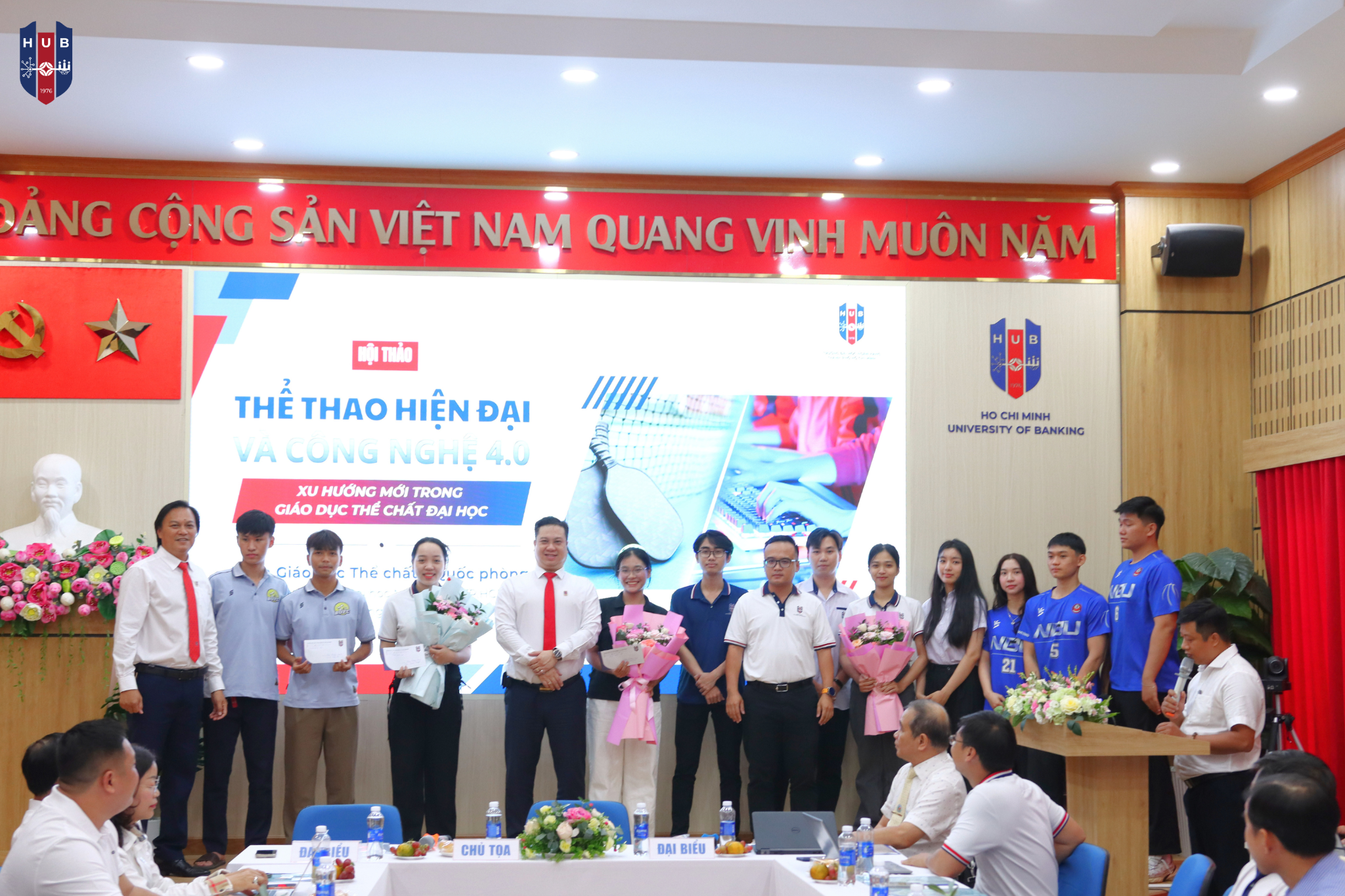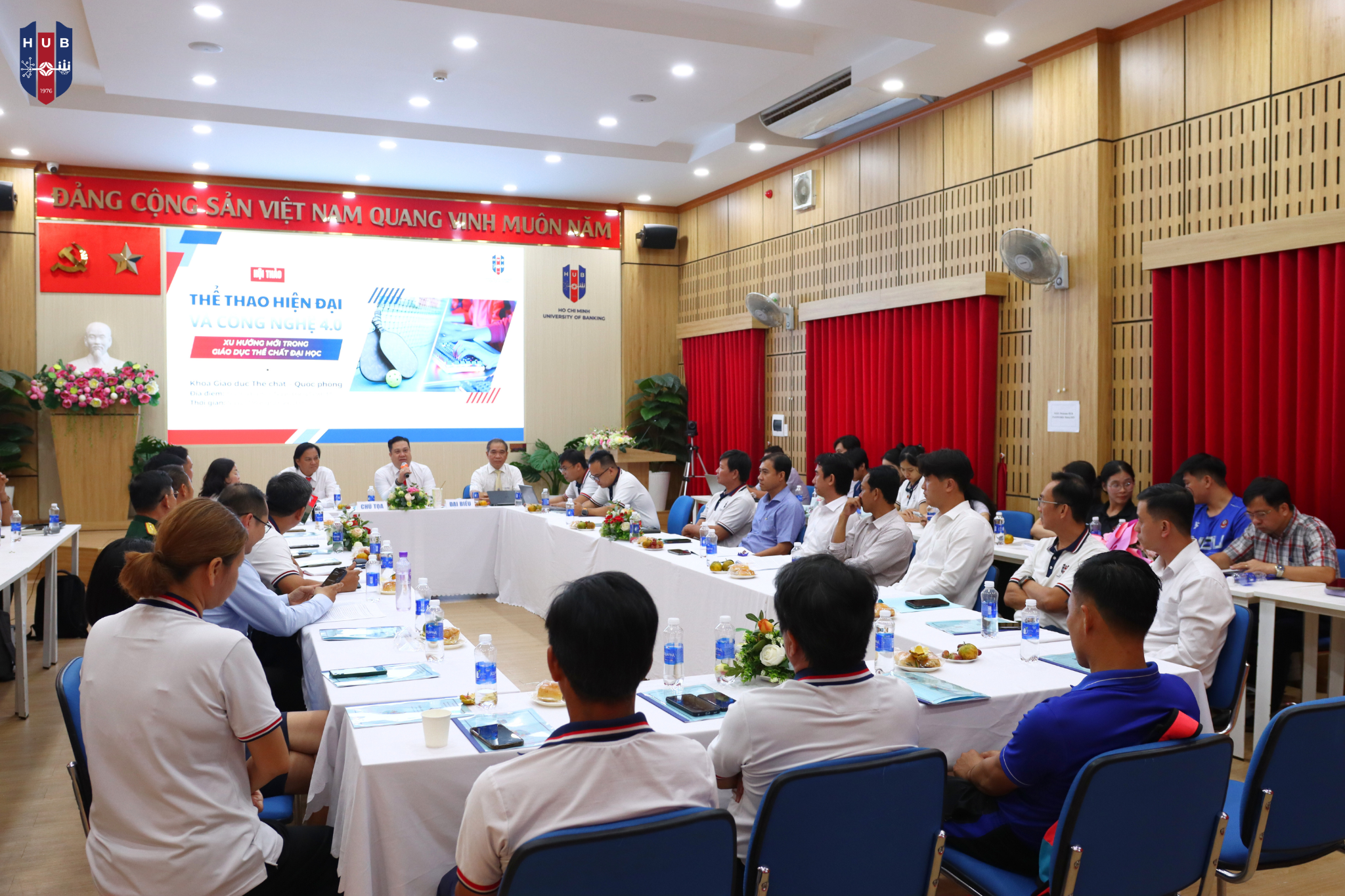 Chiều ngày 17/12 tại Hội trường HT01 Trường Đại học Ngân hàng TP.HCM đã diễn ra buổi Hội thảo khoa học với chủ đề “Thể thao hiện đại và công nghệ 4.0 - Xu hướng mới trong giáo dục thể chất đại học”