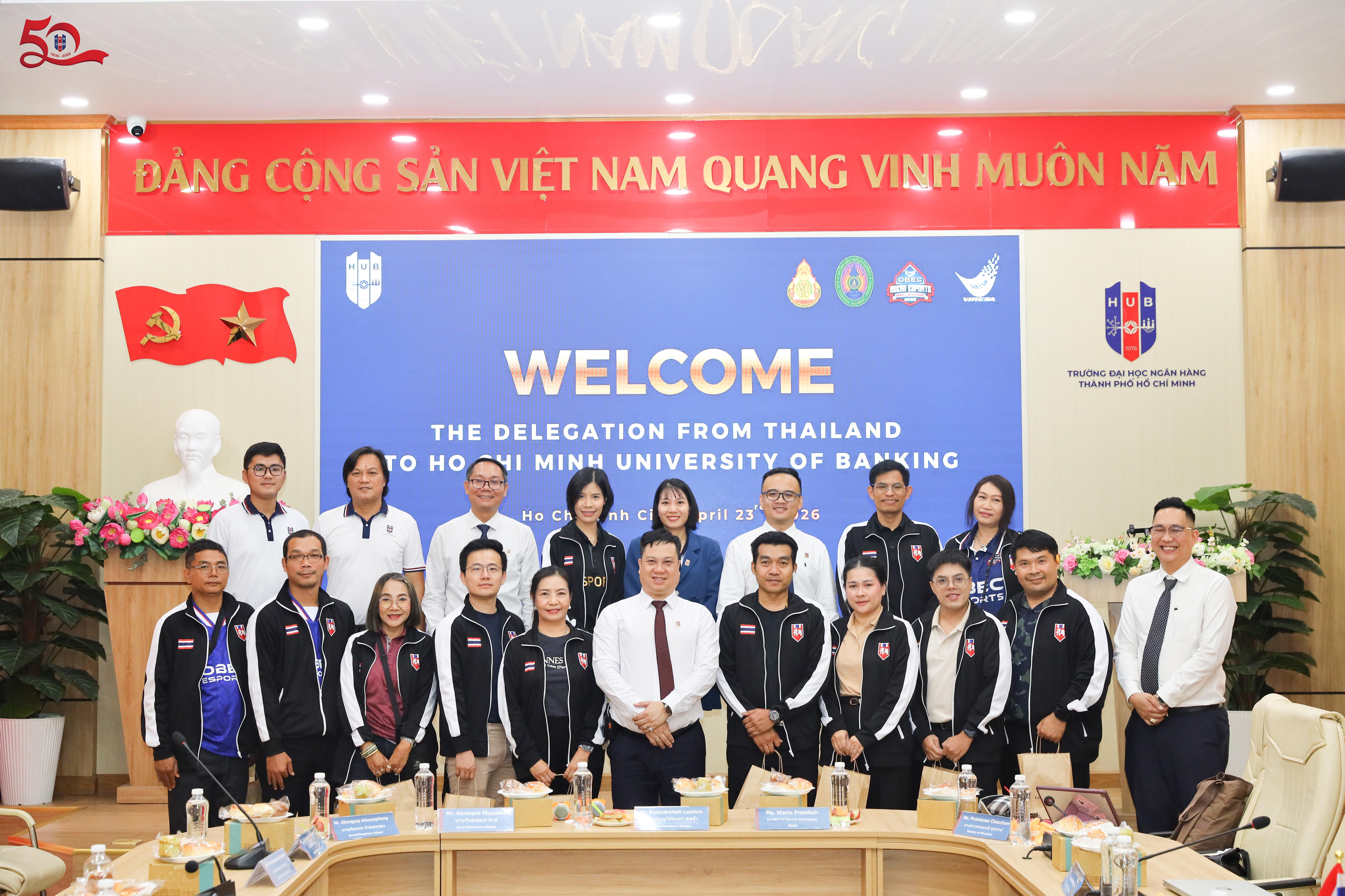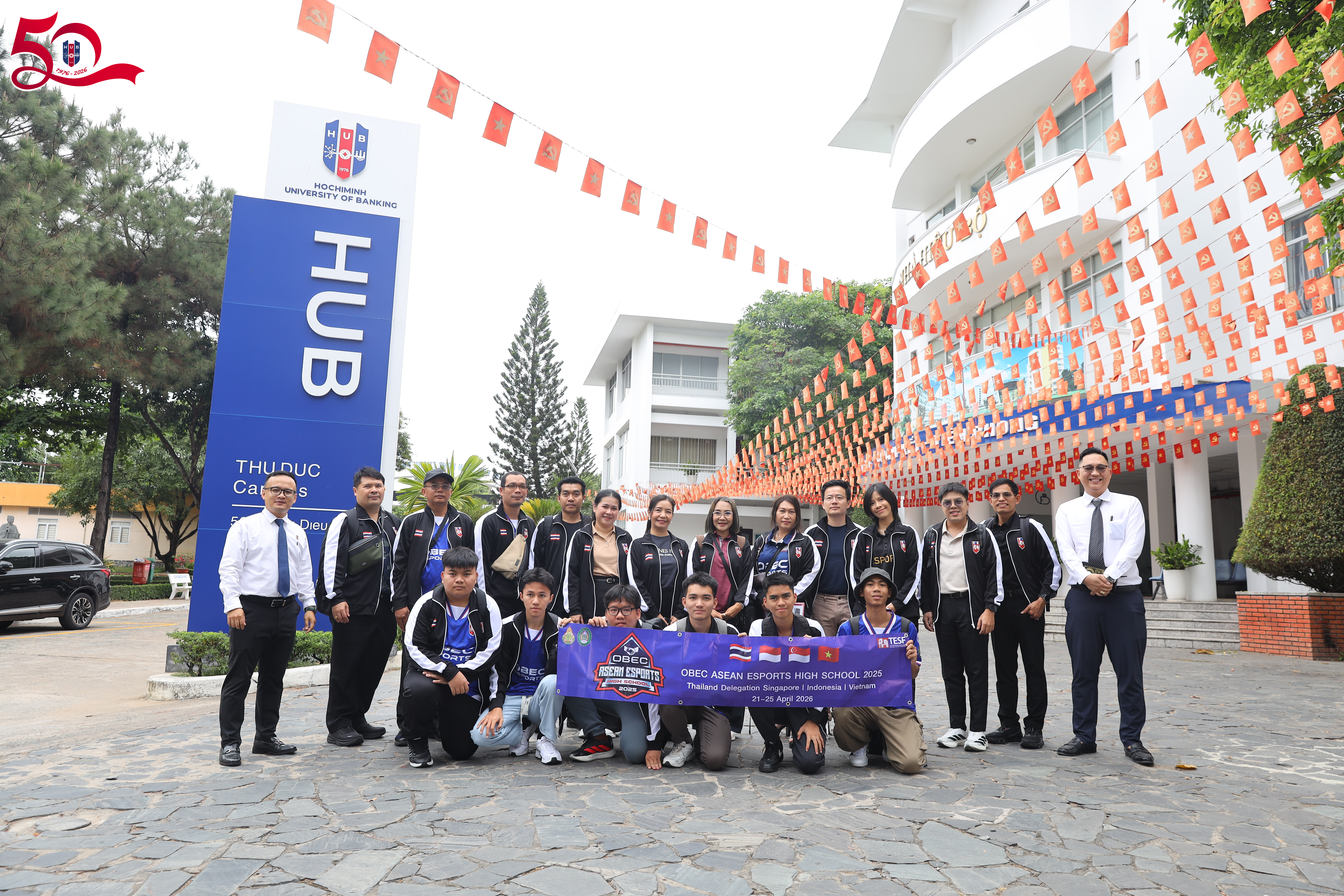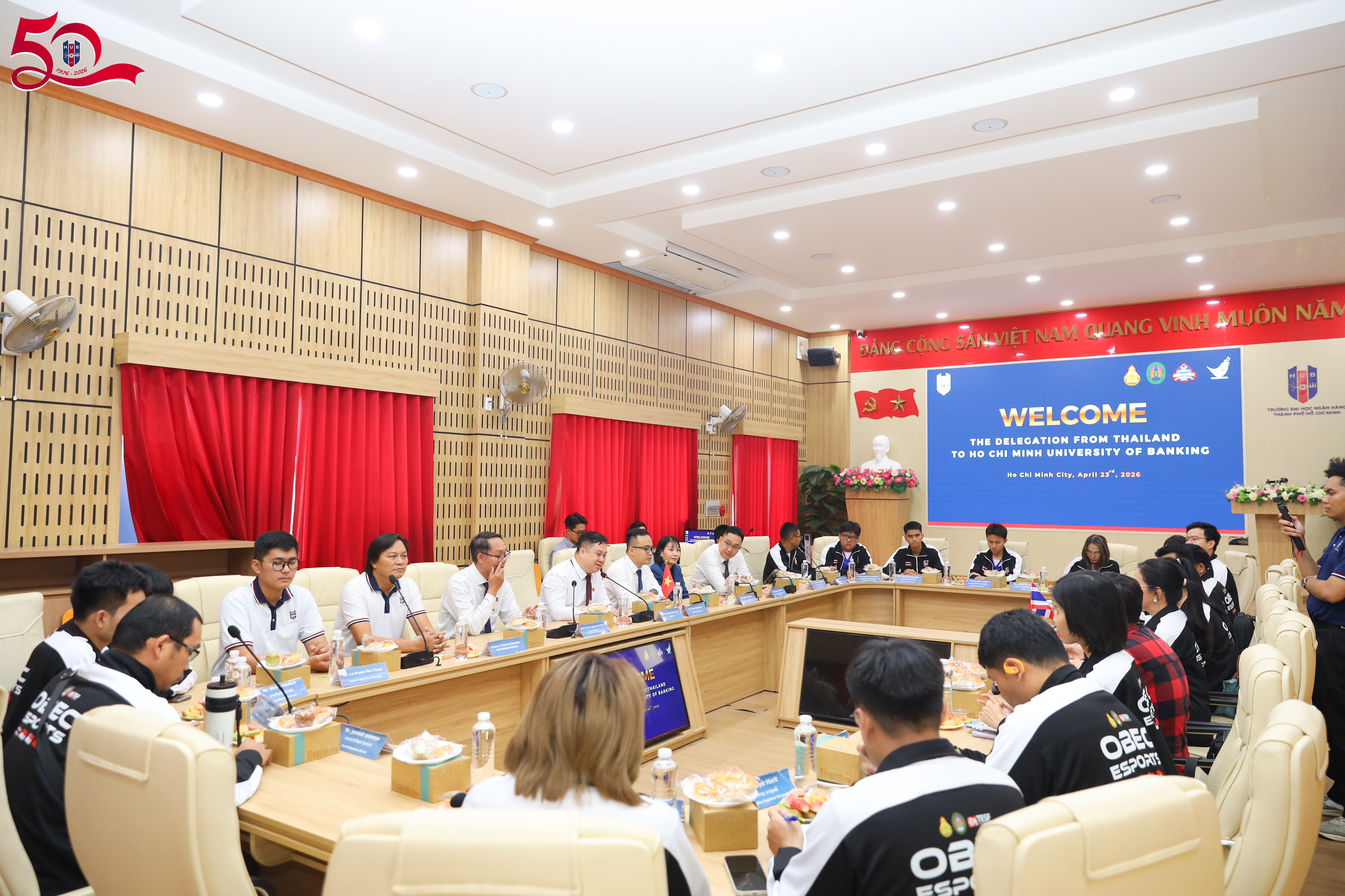 Ngày 23/4/2026, tại cơ sở Thủ Đức, Trường Đại học Ngân hàng TP.HCM (HUB) đã tổ chức đón tiếp Đoàn thể thao điện tử sinh viên Thái Lan trong khuôn khổ chương trình sáng kiến “OBEC Asian Esport High School” do Bộ Giáo dục Thái Lan hỗ trợ nhằm thúc đẩy hợp tác quốc tế, giao lưu học thuật và phát triển thể thao điện tử trong môi trường giáo dục.