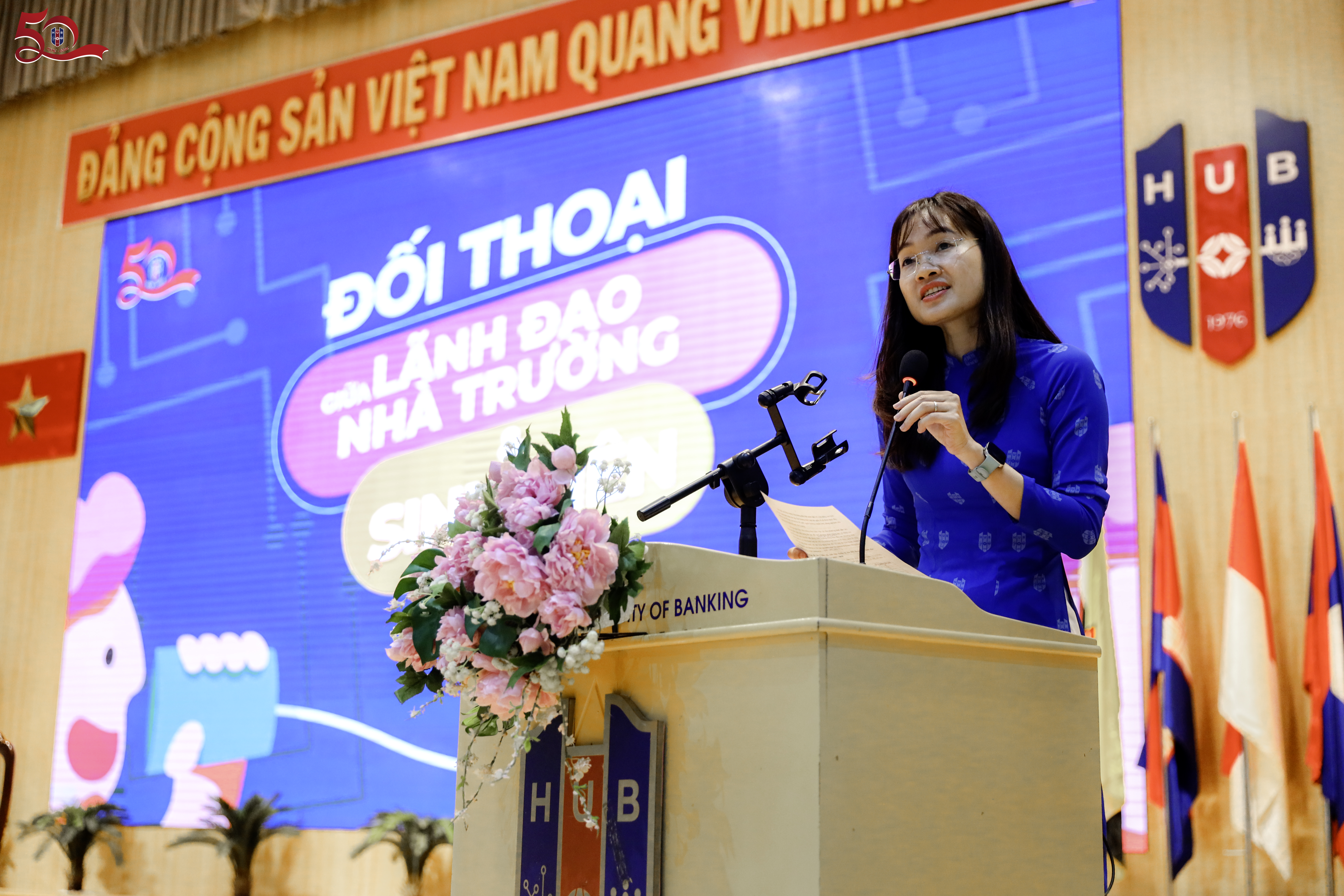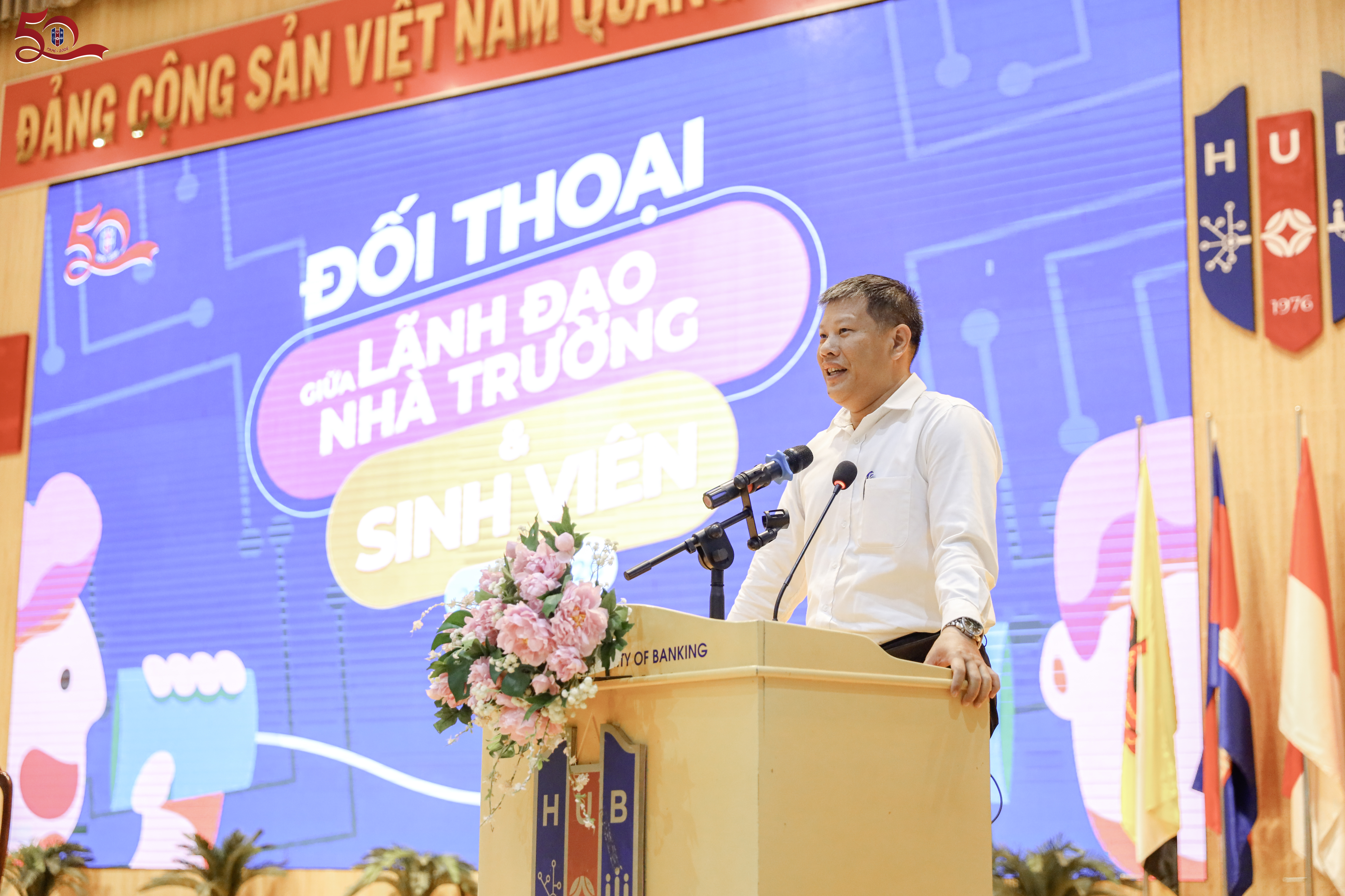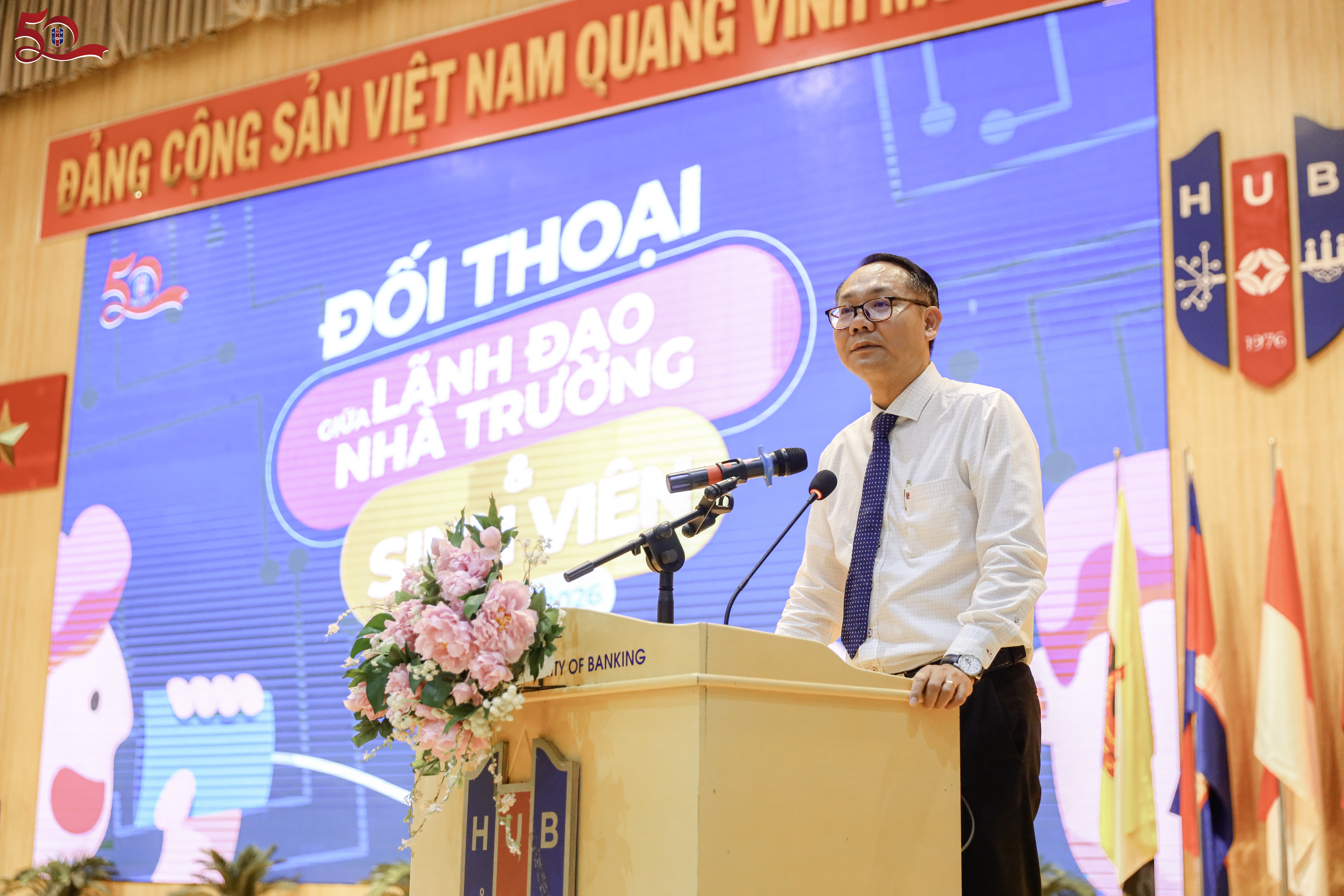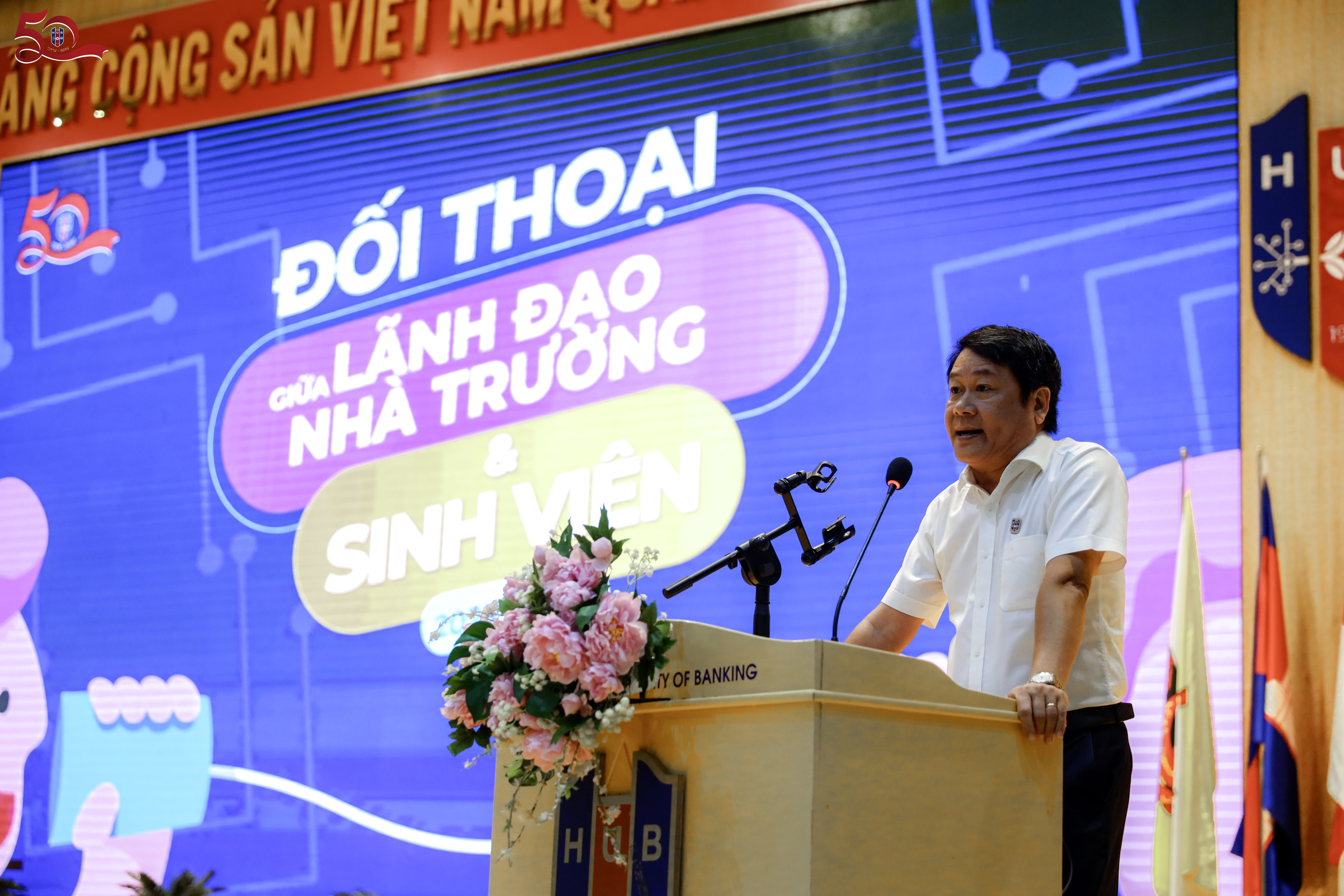 Phát biểu khai mạc, GS. Nguyễn Đức Trung- Hiệu trưởng HUB nhấn mạnh, trong môi trường đại học, điều cốt lõi không chỉ là truyền đạt tri thức mà còn là xây dựng được sự đồng hành và thấu hiểu giữa Nhà trường và sinh viên. Mỗi ý kiến của sinh viên đều là những thông tin có giá trị, giúp Nhà trường nhìn nhận thực tiễn, từ đó điều chỉnh và hoàn thiện tốt hơn. Trên tinh thần đó, chương trình được tổ chức như một diễn đàn trao đổi trực tiếp, cởi mở và mang tính xây dựng, nơi sinh viên có thể thẳng thắn bày tỏ những vấn đề quan tâm, đồng thời Nhà trường lắng nghe, giải đáp minh bạch và đồng hành cùng các em trong suốt quá trình học tập và phát triển.