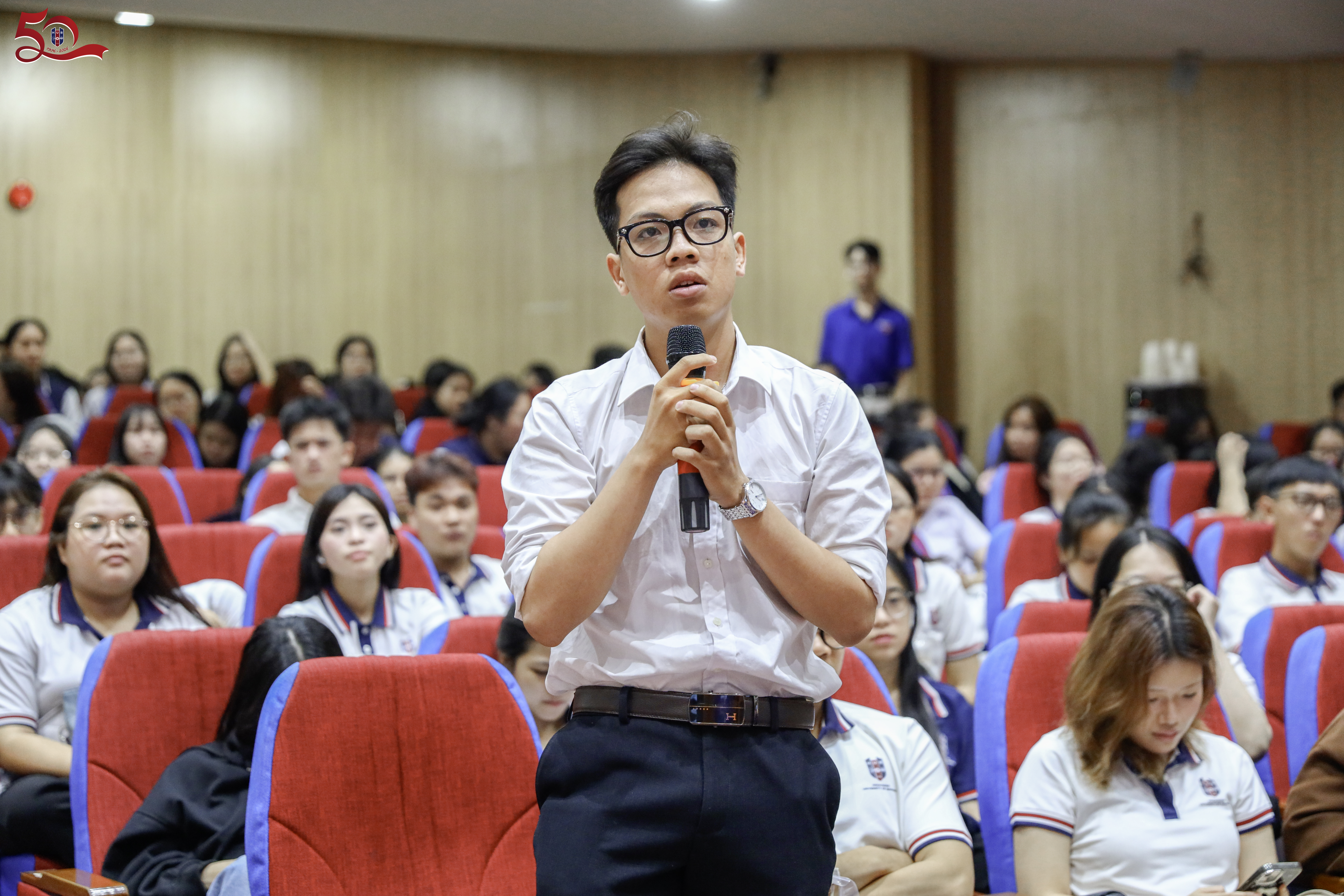 Các ý kiến, câu hỏi gửi về của sinh viên đã được Ban Giám hiệu và lãnh đạo các đơn vị chức năng giải đáp cụ thể, rõ ràng, đi thẳng vào trọng tâm vấn đề. Không chỉ dừng lại ở việc cung cấp thông tin, nhiều nội dung còn được trao đổi, làm rõ theo hướng định hướng, giúp sinh viên hiểu đúng, hiểu đủ về quy định, cũng như cách thức vận hành của Nhà trường trong các lĩnh vực liên quan.