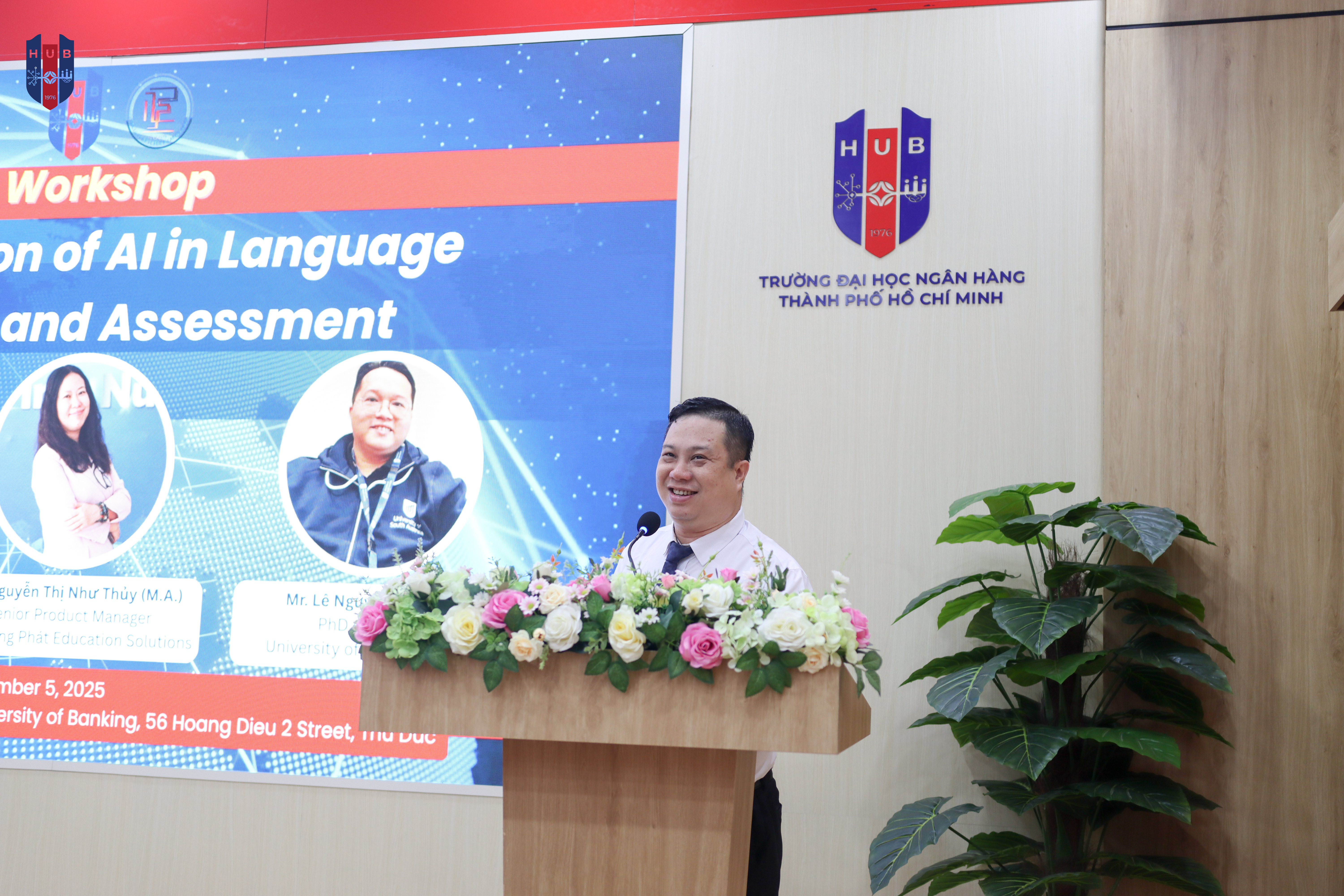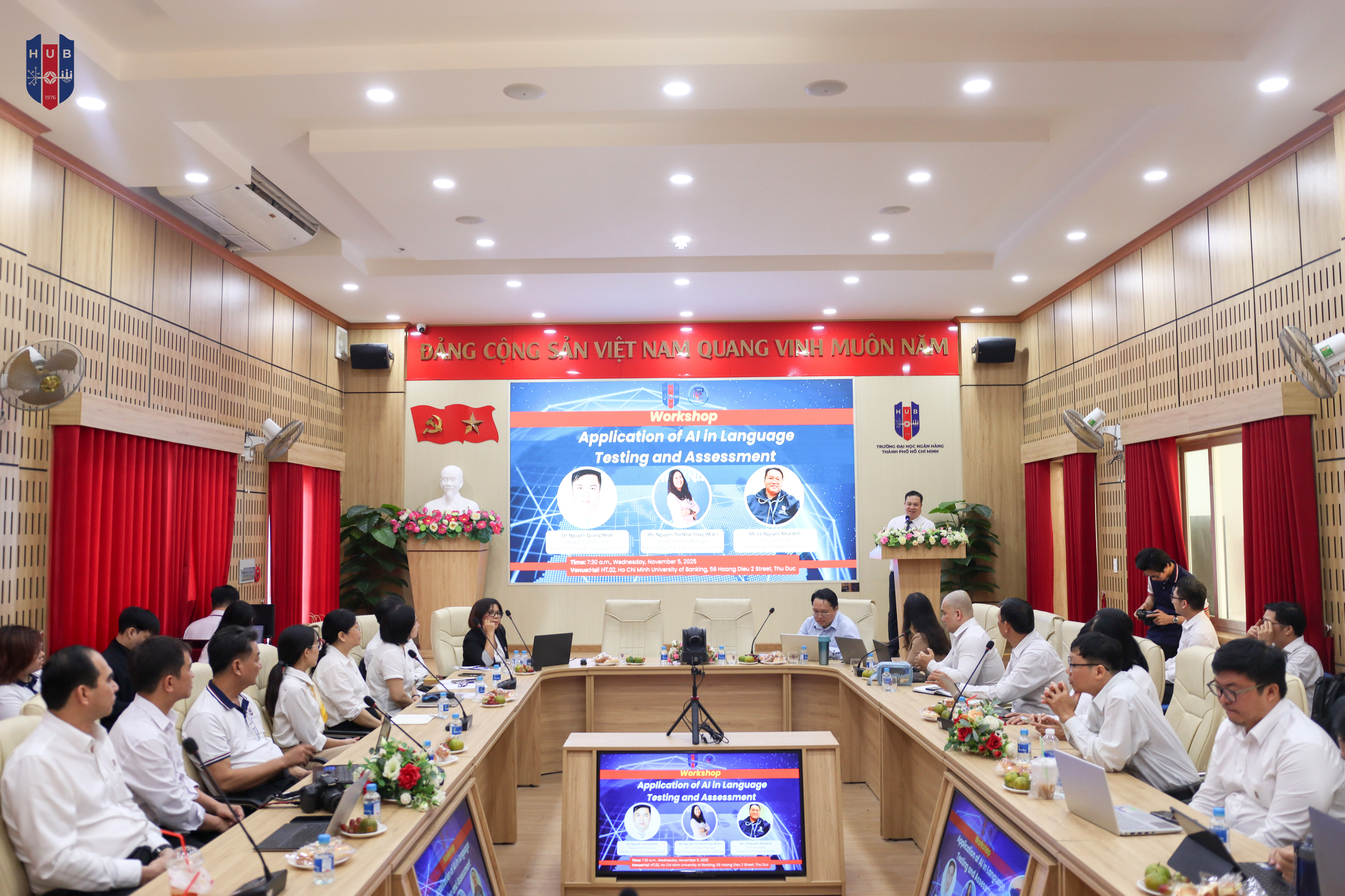 Sáng ngày 5/11/2025, Trường Đại học Ngân hàng TP. Hồ Chí Minh (HUB) đã tổ chức Tọa đàm “Ứng dụng Trí tuệ Nhân tạo (AI) trong công tác kiểm tra, đánh giá ngôn ngữ”. Đây là hoạt động tiếp nối trong chuỗi chương trình học thuật năm 2025 của Khoa Ngoại ngữ, hướng đến mục tiêu nâng cao chất lượng giảng dạy và năng lực chuyên môn của đội ngũ giảng viên, đồng thời cập nhật xu hướng ứng dụng AI trong lĩnh vực giáo dục ngôn ngữ.
