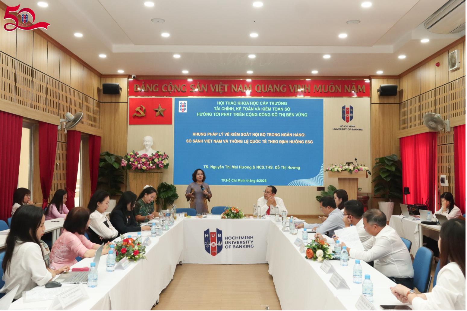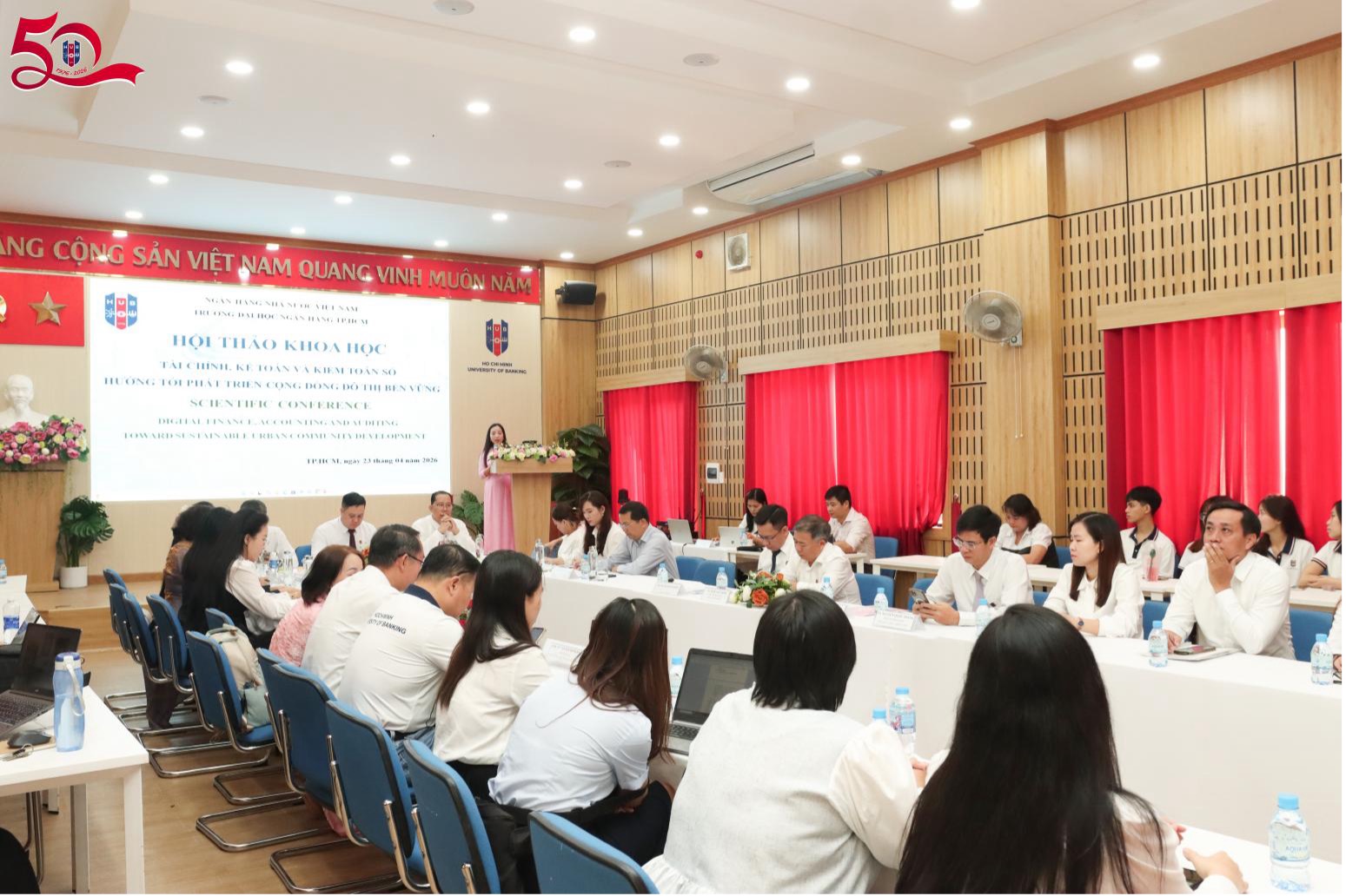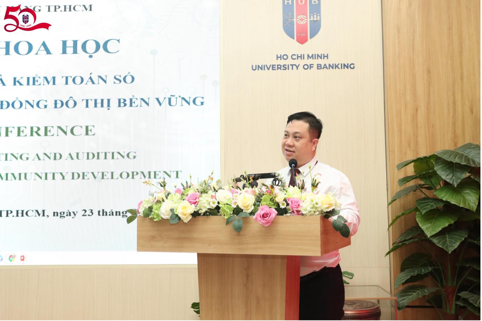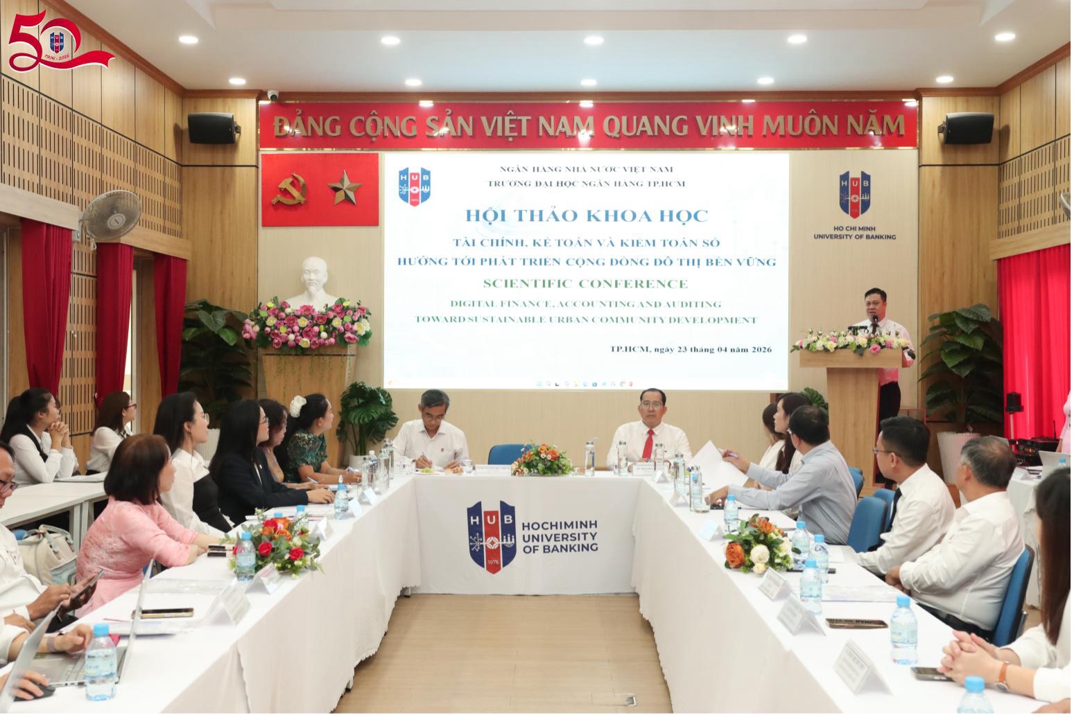 Sáng ngày 23/04/2026, tại Hội trường HT01, 56 Hoàng Diệu 2, Trường Đại học Ngân hàng TP. Hồ Chí Minh (HUB) đã tổ chức Hội thảo Khoa học cấp Trường với chủ đề “Tài chính, Kế toán và Kiểm toán số hướng tới Phát triển Cộng đồng Đô thị Bền vững”.