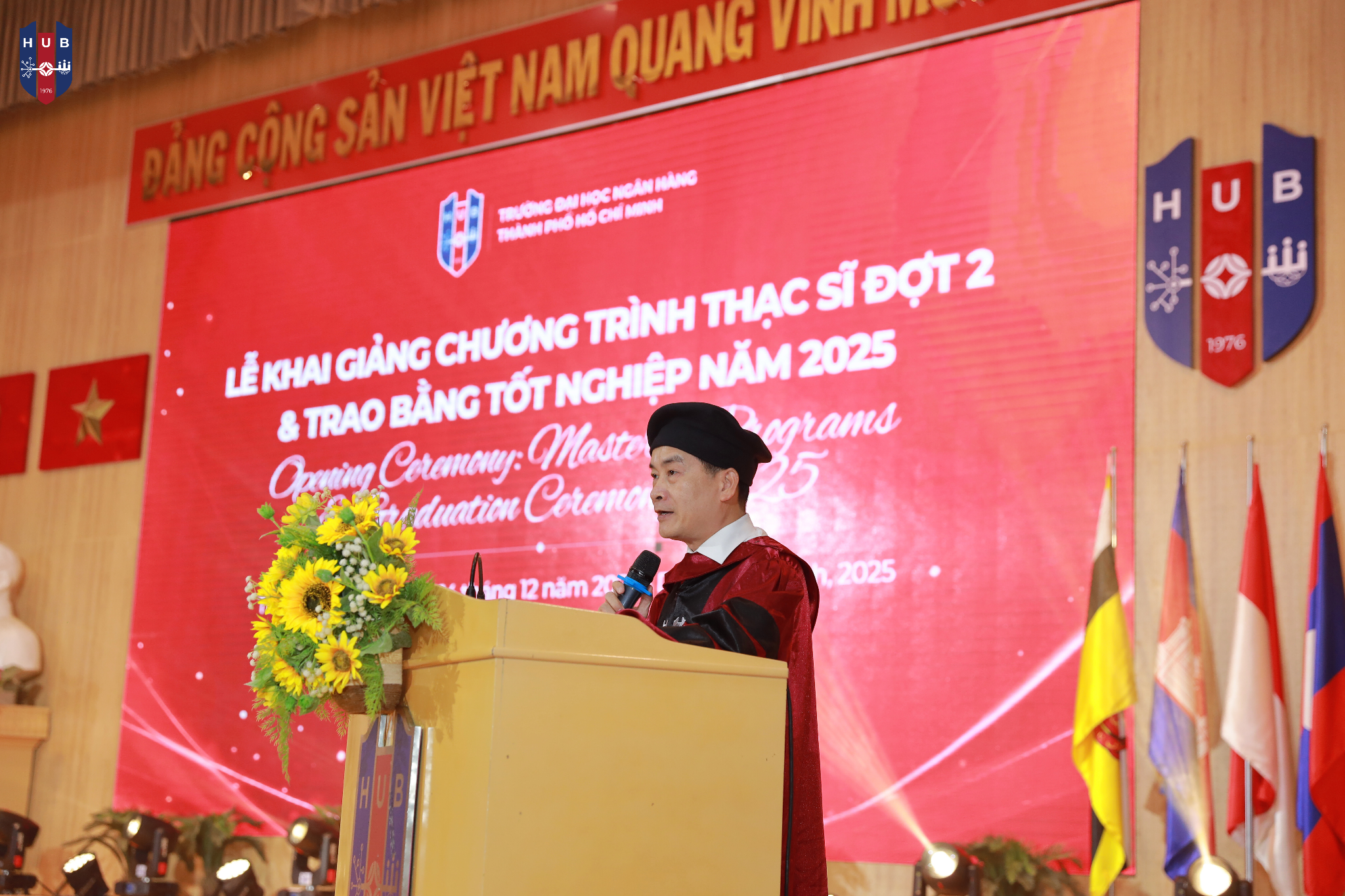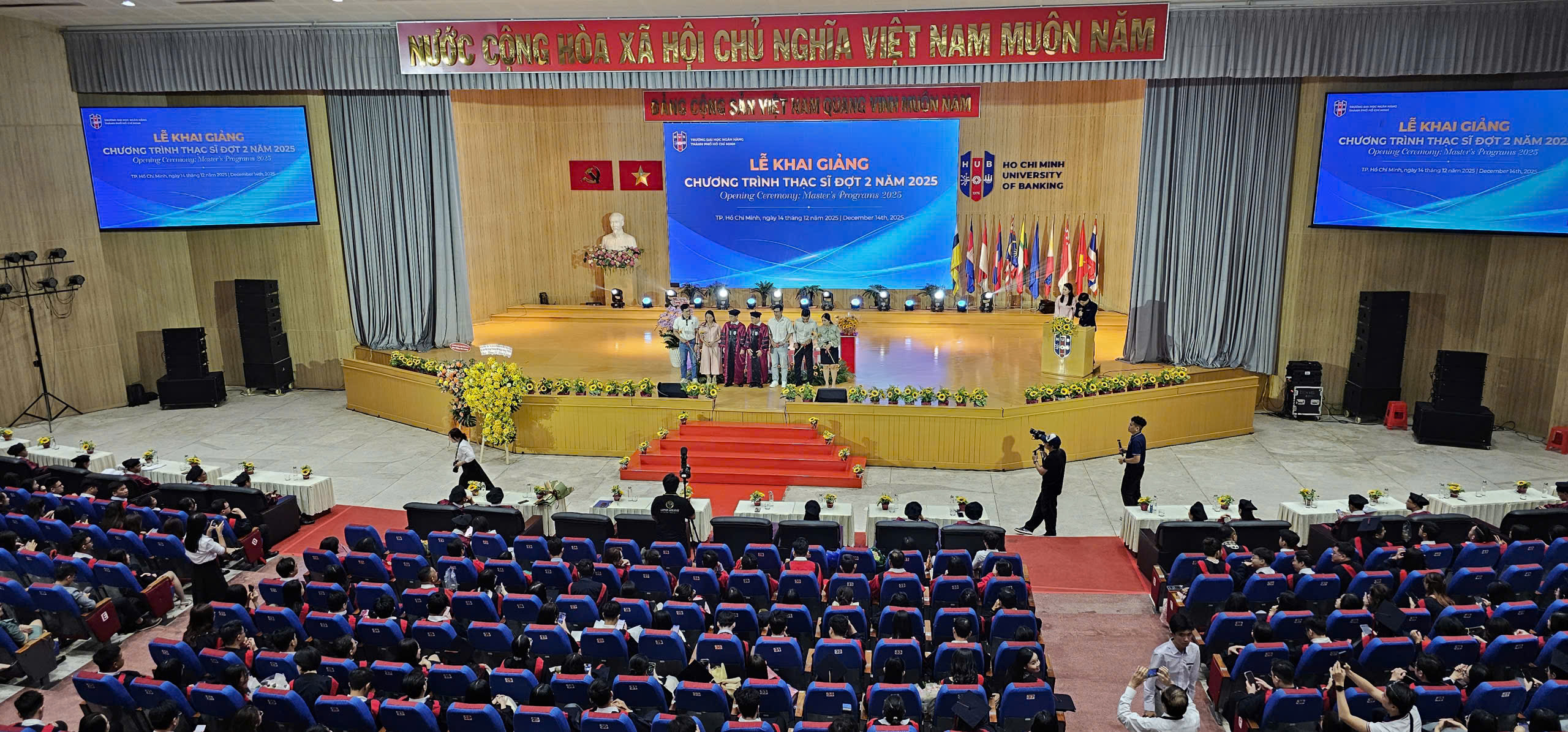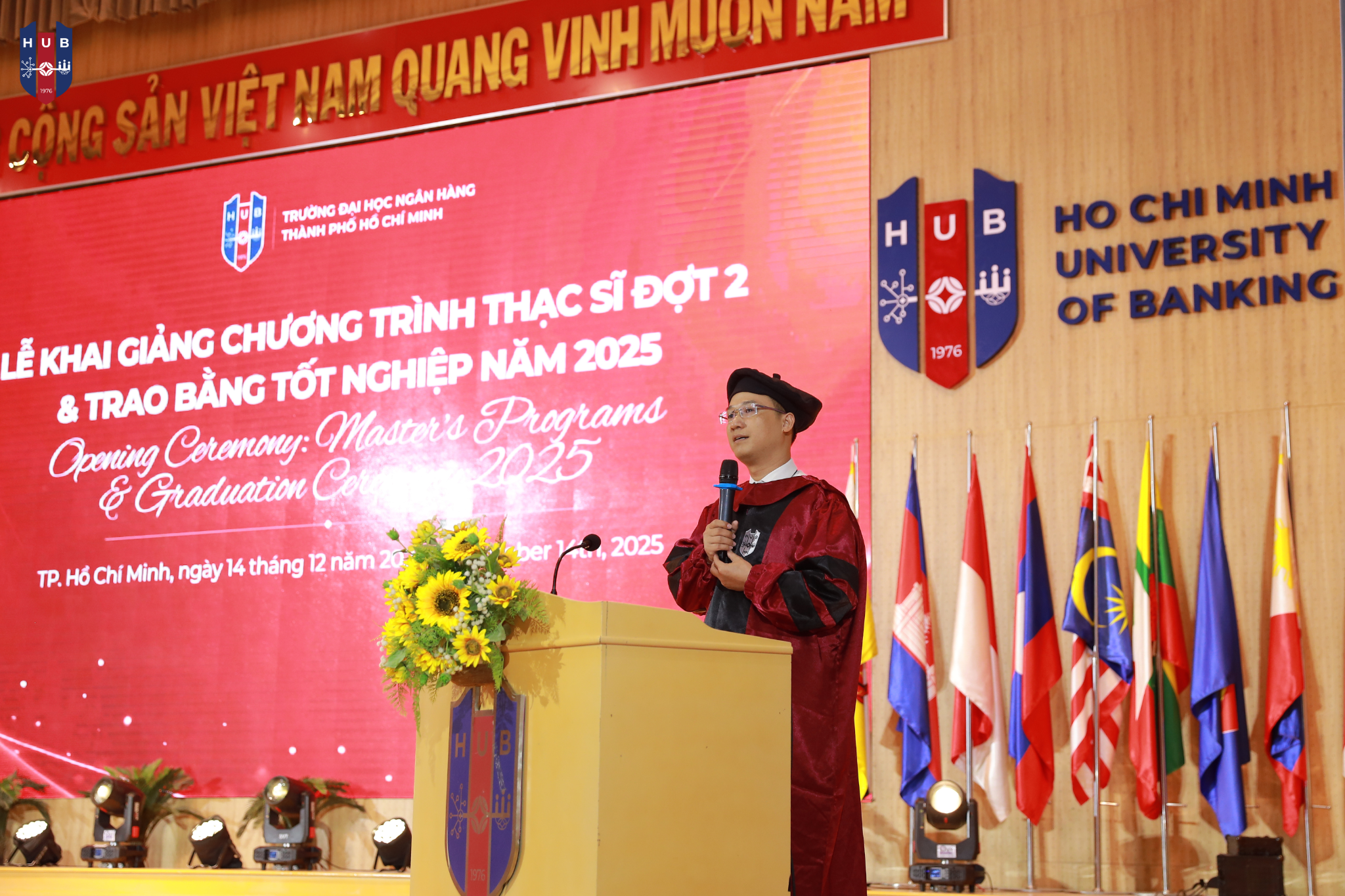 Sáng ngày 14/12/2025, trong không khí trang nghiêm và phấn khởi chào mừng 49 năm thành lập trường, Trường Đại học Ngân hàng TP.HCM (HUB) đã tổ chức thành công Lễ Khai giảng chương trình Thạc sĩ đợt tháng 12 năm 2025 tại Hội trường lớn cơ sở Thủ Đức. Sự kiện là dấu ấn quan trọng, mở ra một chặng đường học thuật mới của các tân nghiên cứu sinh, tân học viên.