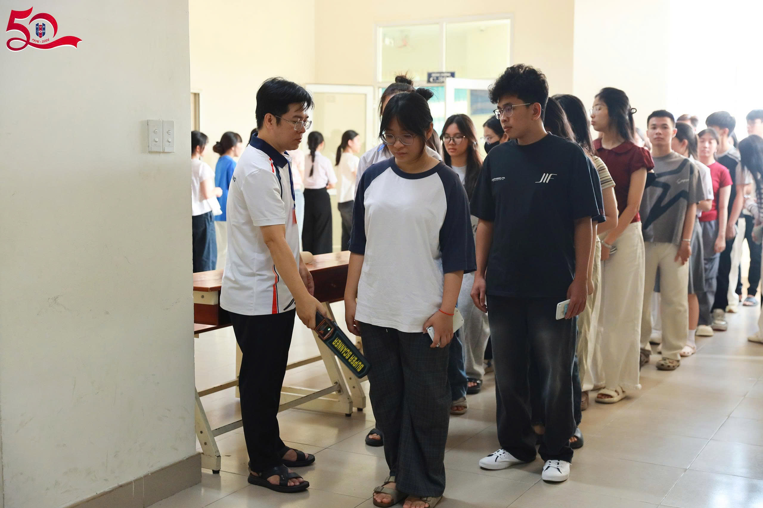 Trước giờ thi chính thức, HUB đã tiến hành công tác định hướng và phổ biến thông tin xét tuyển trực tiếp tại địa điểm tổ chức thi. Đại diện Nhà trường đã cung cấp bức tranh tổng quan về môi trường đào tạo, các ngành học trọng điểm cũng như hệ thống các phương thức xét tuyển đại học chính quy trong năm nay.