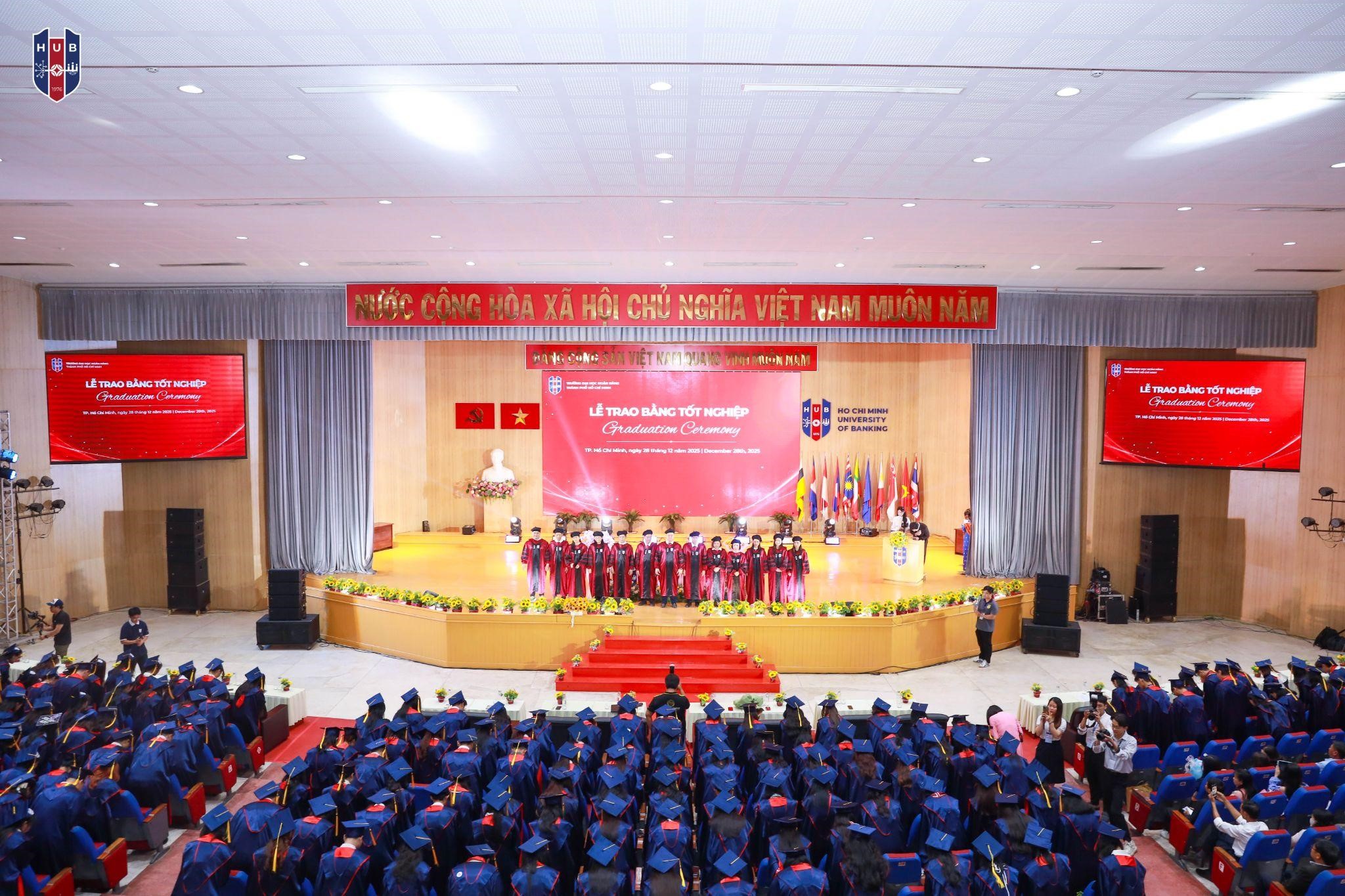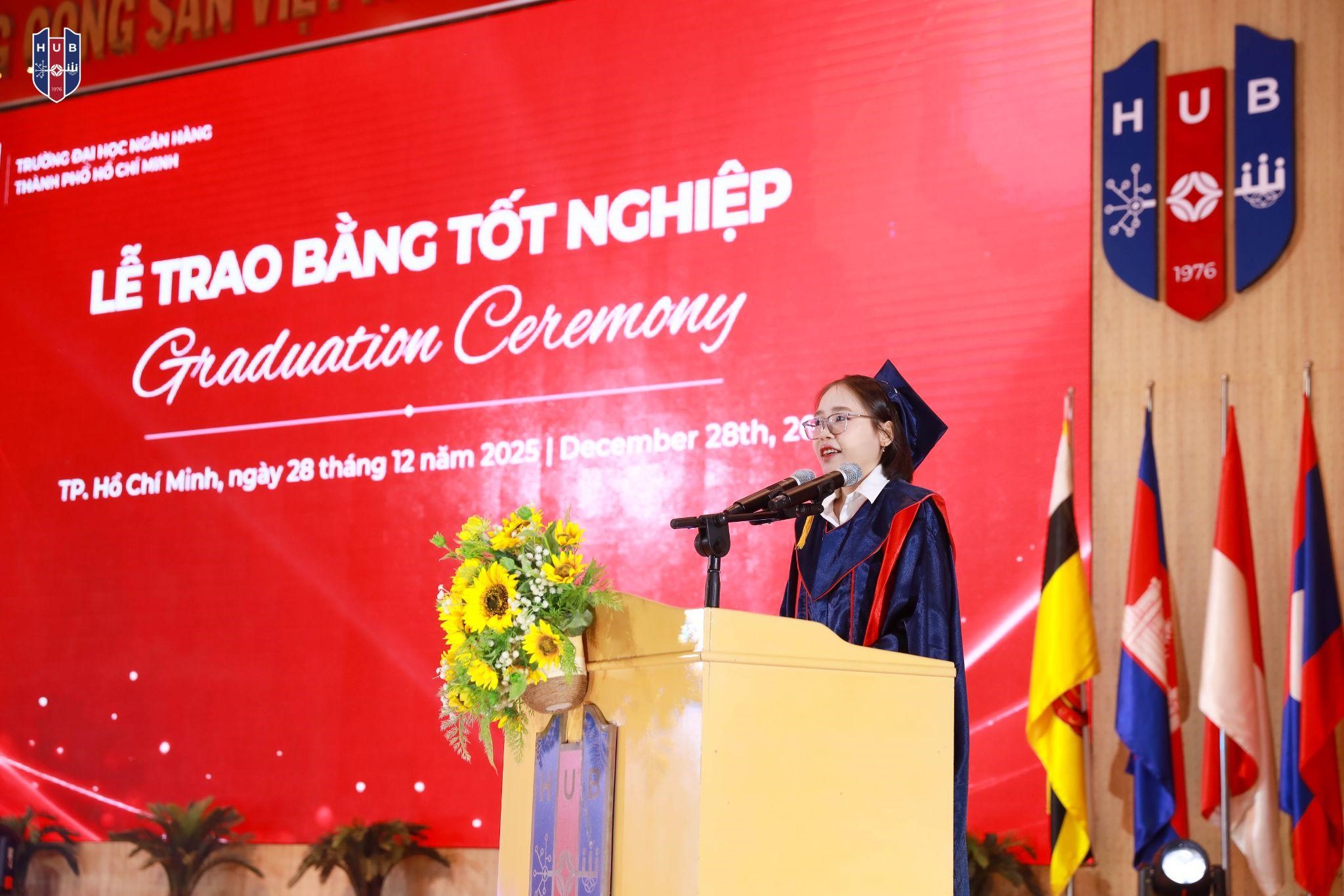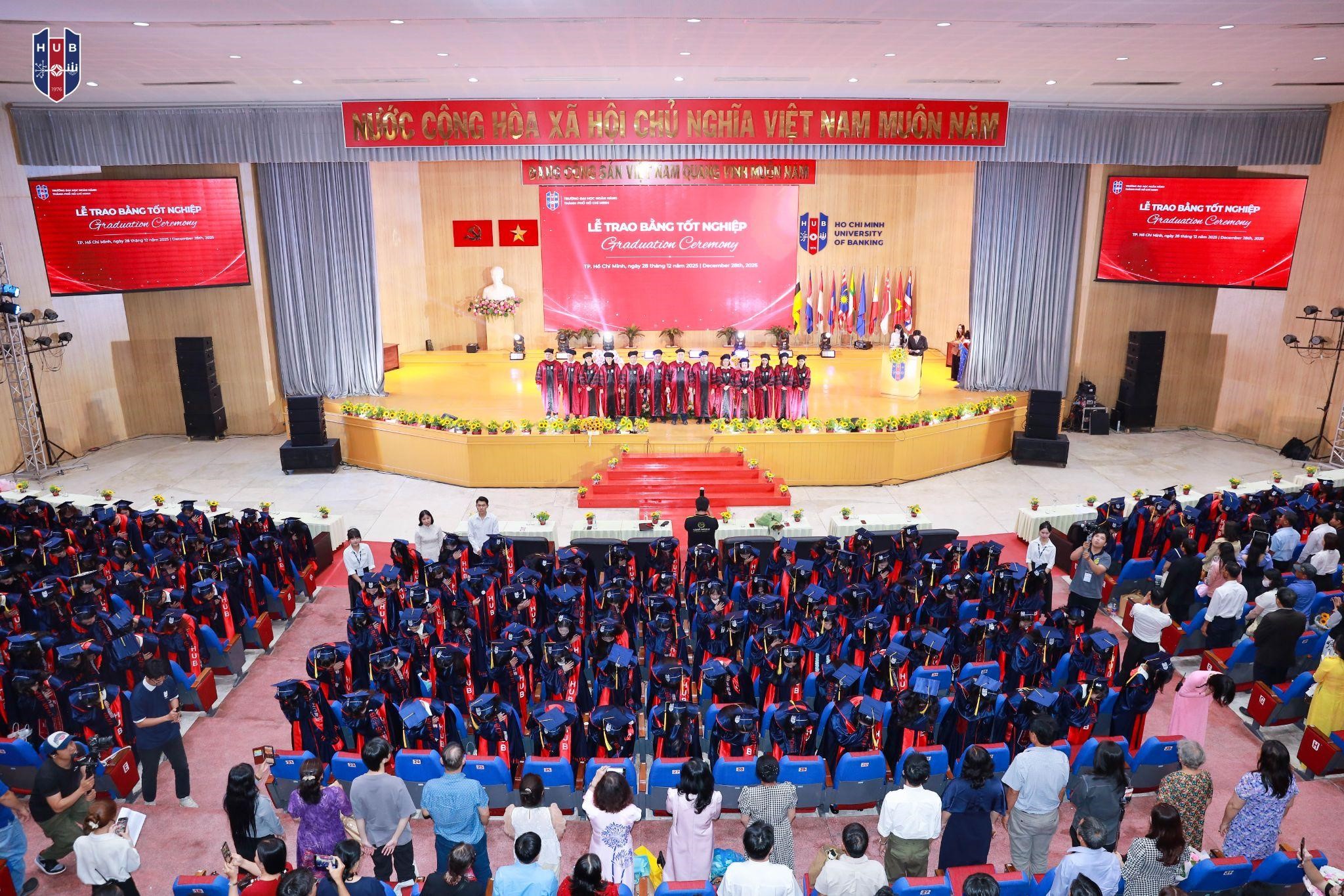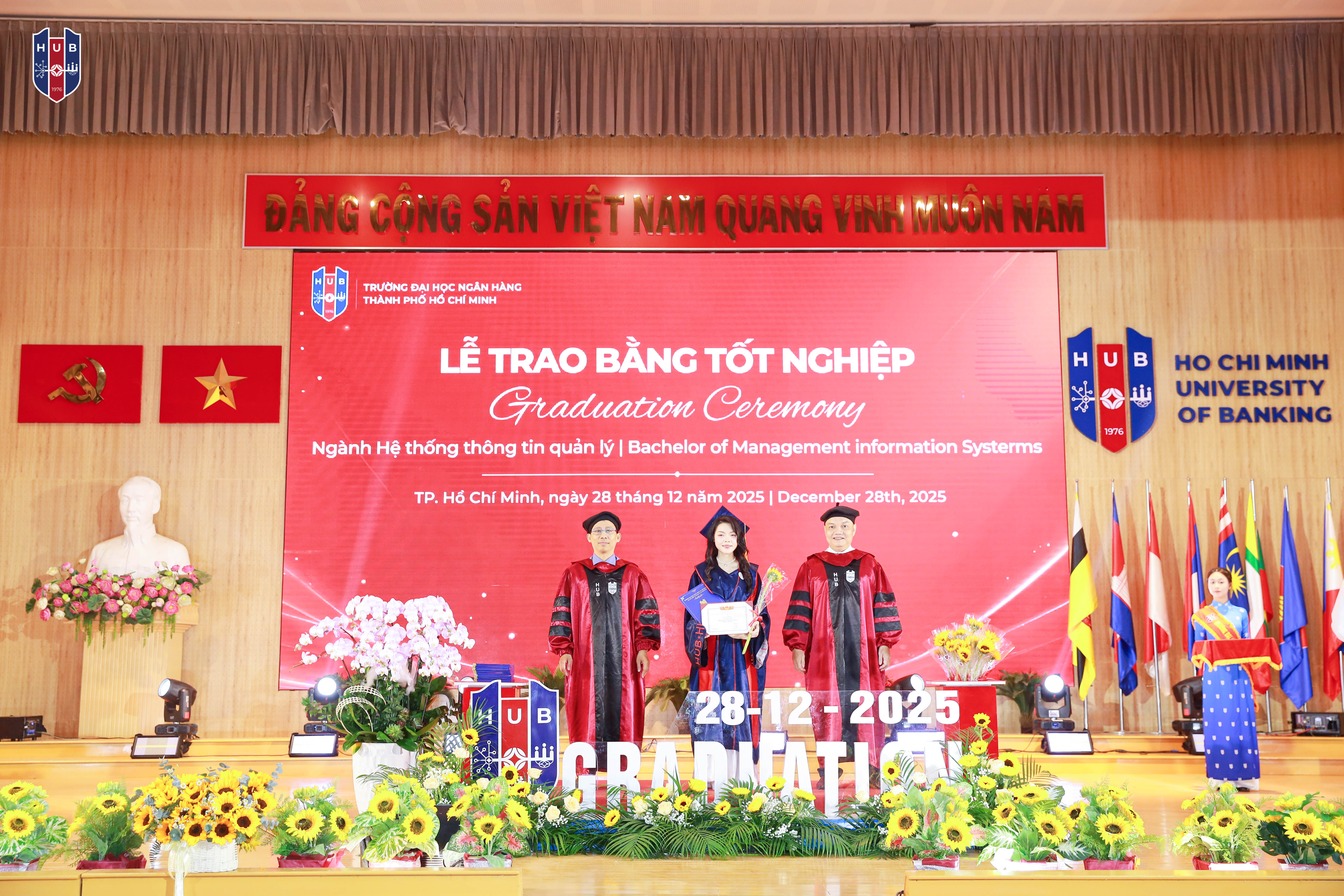 Chủ nhật (28/12/2025), tại cơ sở 56 Hoàng Diệu 2 phường Thủ Đức, Trường Đại học Ngân hàng TP.HCM (HUB) đã long trọng tổ chức Lễ trao bằng Tốt nghiệp và vinh danh thành tích cho hơn 600 Tân cử nhân ngành Kế toán, Ngôn ngữ Anh, Kinh tế Quốc tế, Luật Kinh tế, Hệ thống thông tin Quản lý và Khoa học dữ liệu trong kinh doanh thuộc chương trình Đại học chính quy và Tiếng Anh bán phần.
