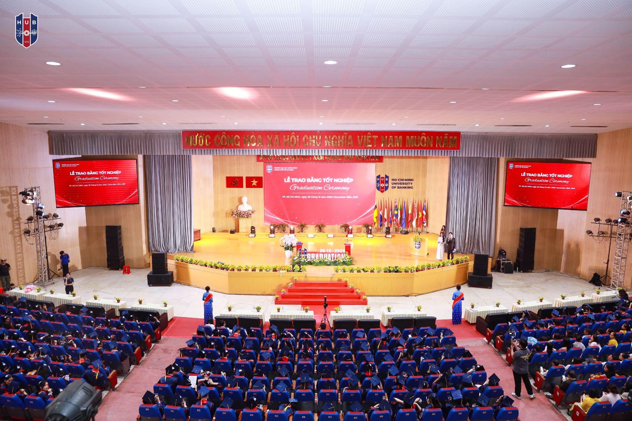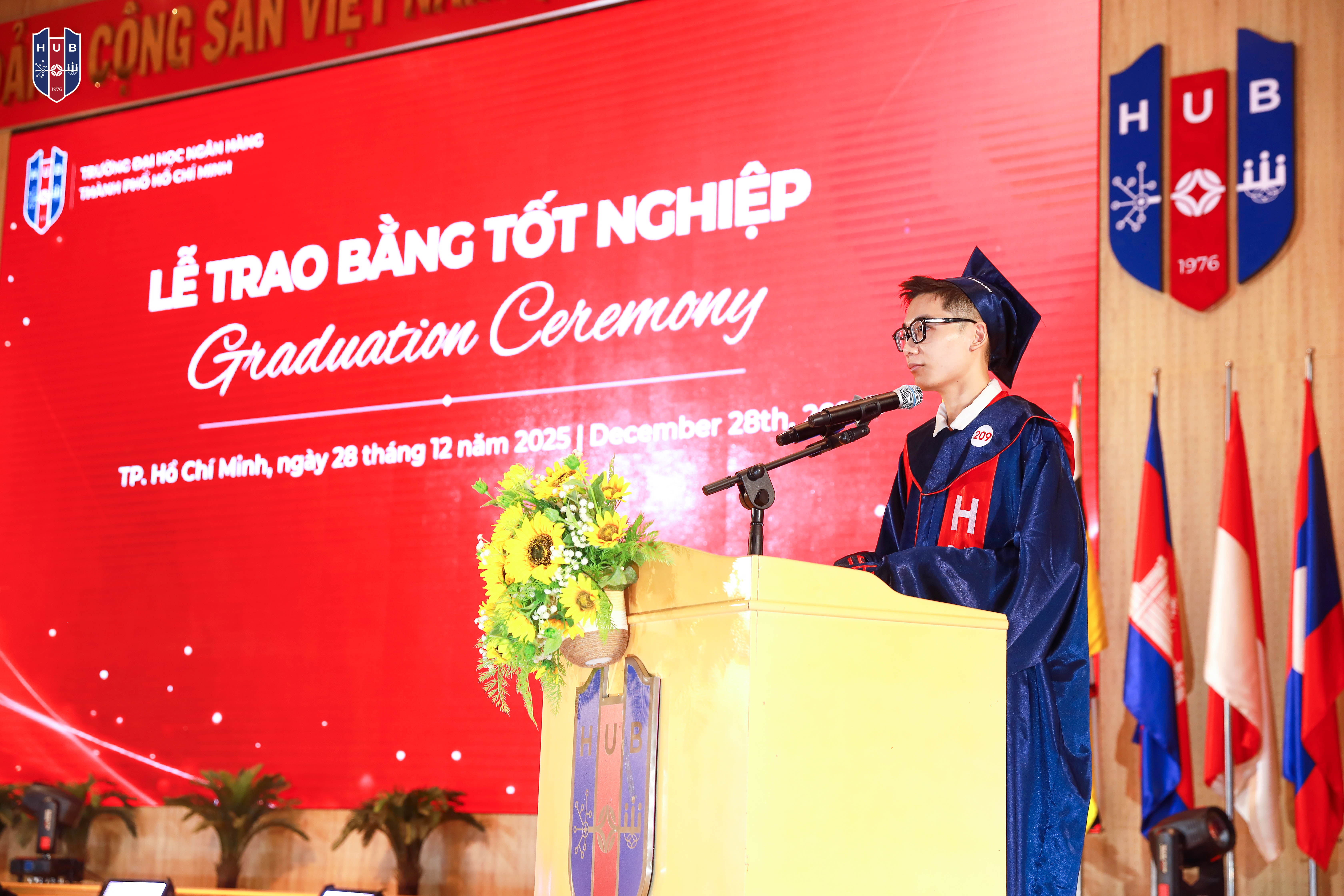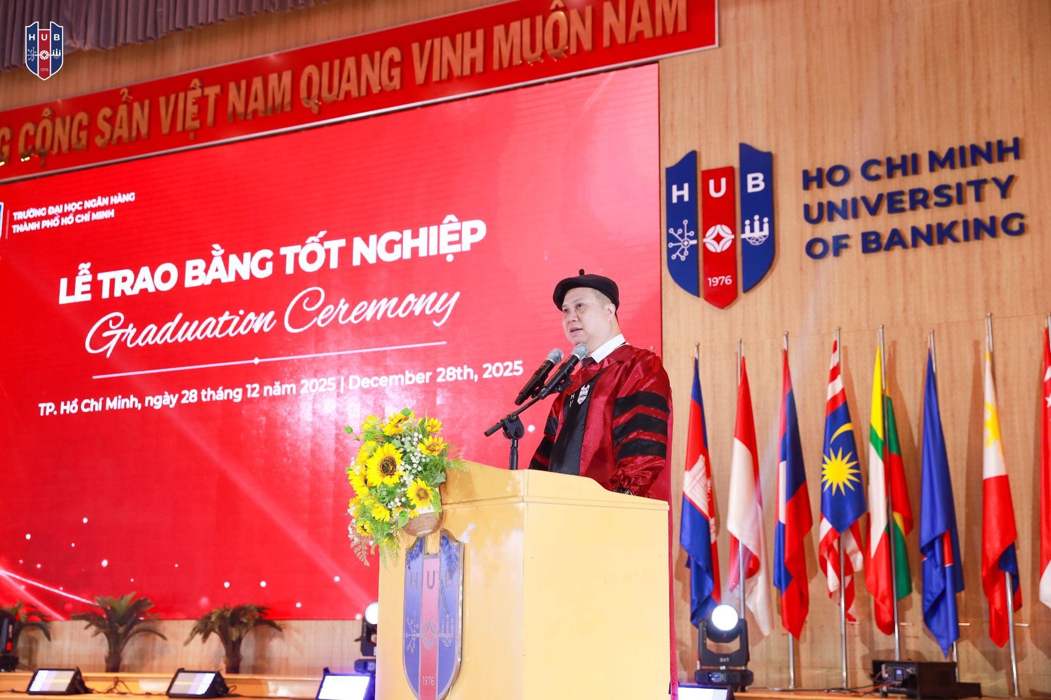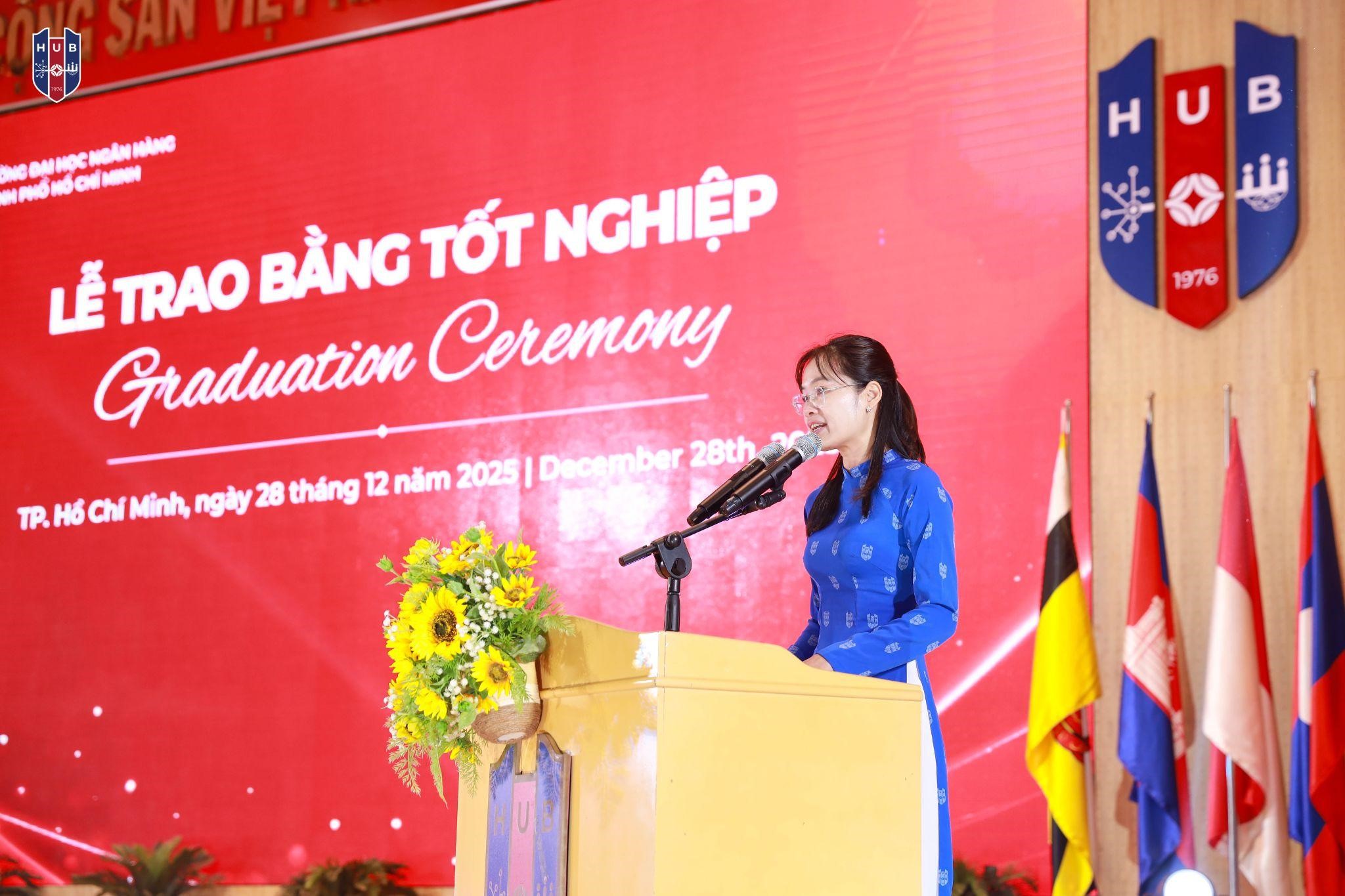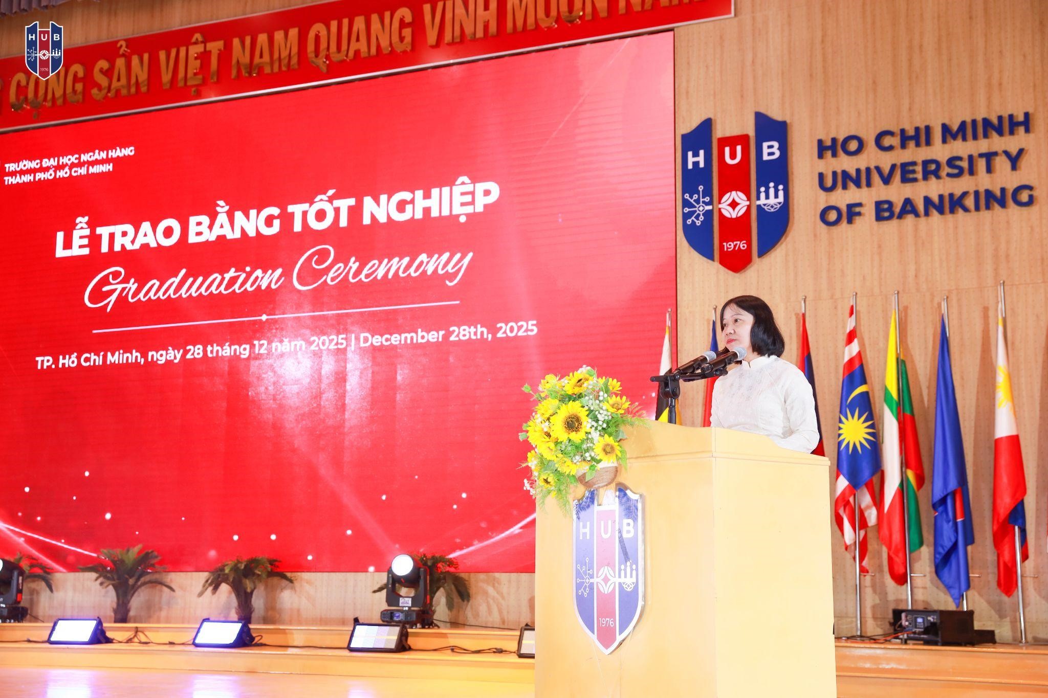 Chủ nhật (28/12/2025), tại cơ sở 56 Hoàng Diệu 2 phường Thủ Đức, Trường Đại học Ngân hàng TP.HCM (HUB) đã long trọng tổ chức Lễ trao bằng Tốt nghiệp và vinh danh thành tích cho hơn 600 Tân cử nhân ngành Kế toán, Ngôn ngữ Anh, Kinh tế Quốc tế, Luật Kinh tế, Hệ thống thông tin Quản lý và Khoa học dữ liệu trong kinh doanh thuộc chương trình Đại học chính quy và Tiếng Anh bán phần.