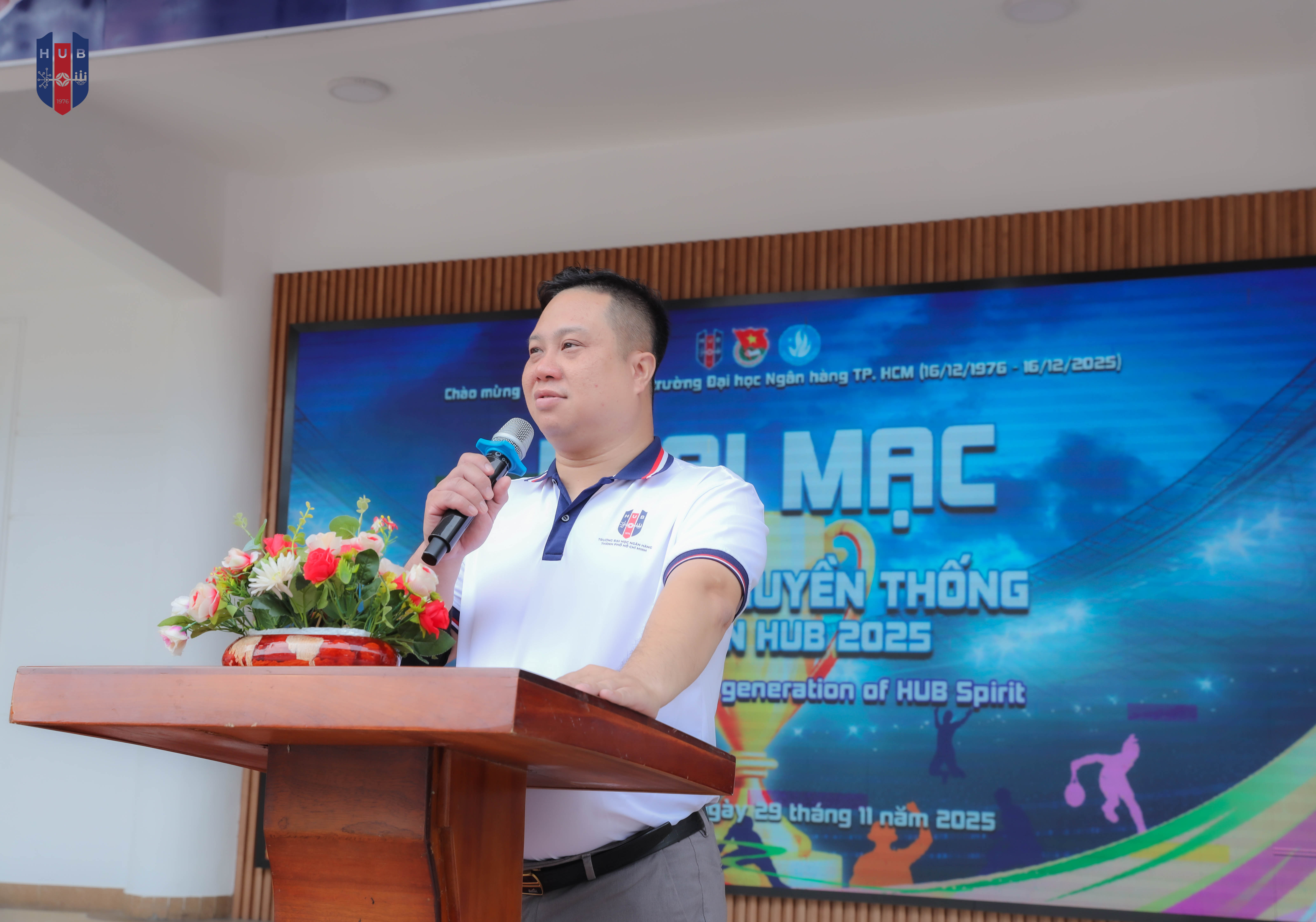 Tiếp nối chương trình, GS.TS. Nguyễn Đức Trung – Hiệu trưởng Trường Đại học Ngân hàng TP.HCM, Trưởng Ban Tổ chức Hội thao – nhấn mạnh vai trò quan trọng của thể thao trong môi trường giáo dục, khẳng định sức khỏe là nền tảng của mọi thành công và đánh giá cao tinh thần tham gia sôi nổi của sinh viên.