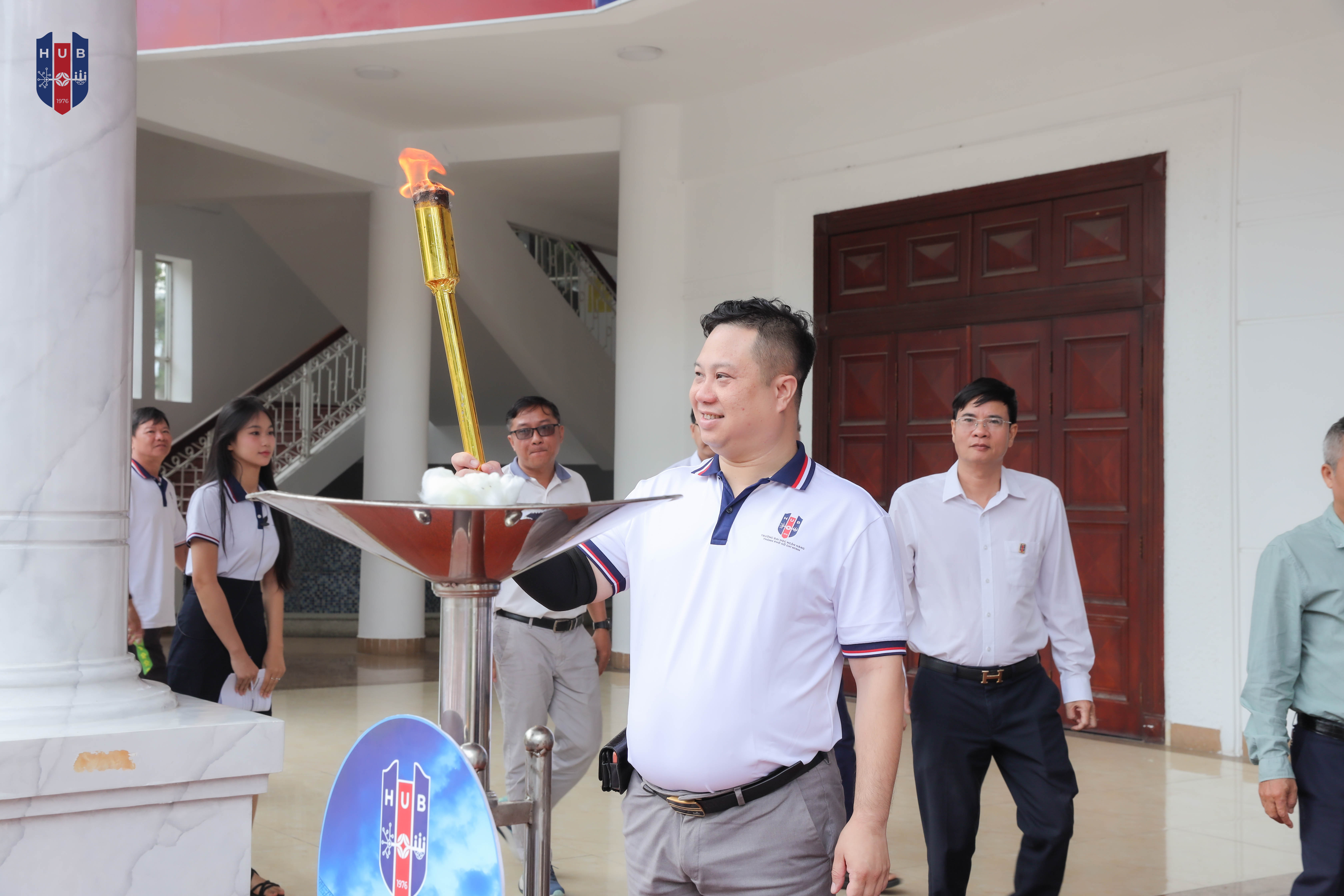 Nghi thức rước đuốc cuối chương trình đã chính thức thắp lên ngọn lửa nhiệt huyết, mở màn cho các trận tranh tài hấp dẫn trong khuôn khổ Hội thao Truyền thống Sinh viên HUB 2025.