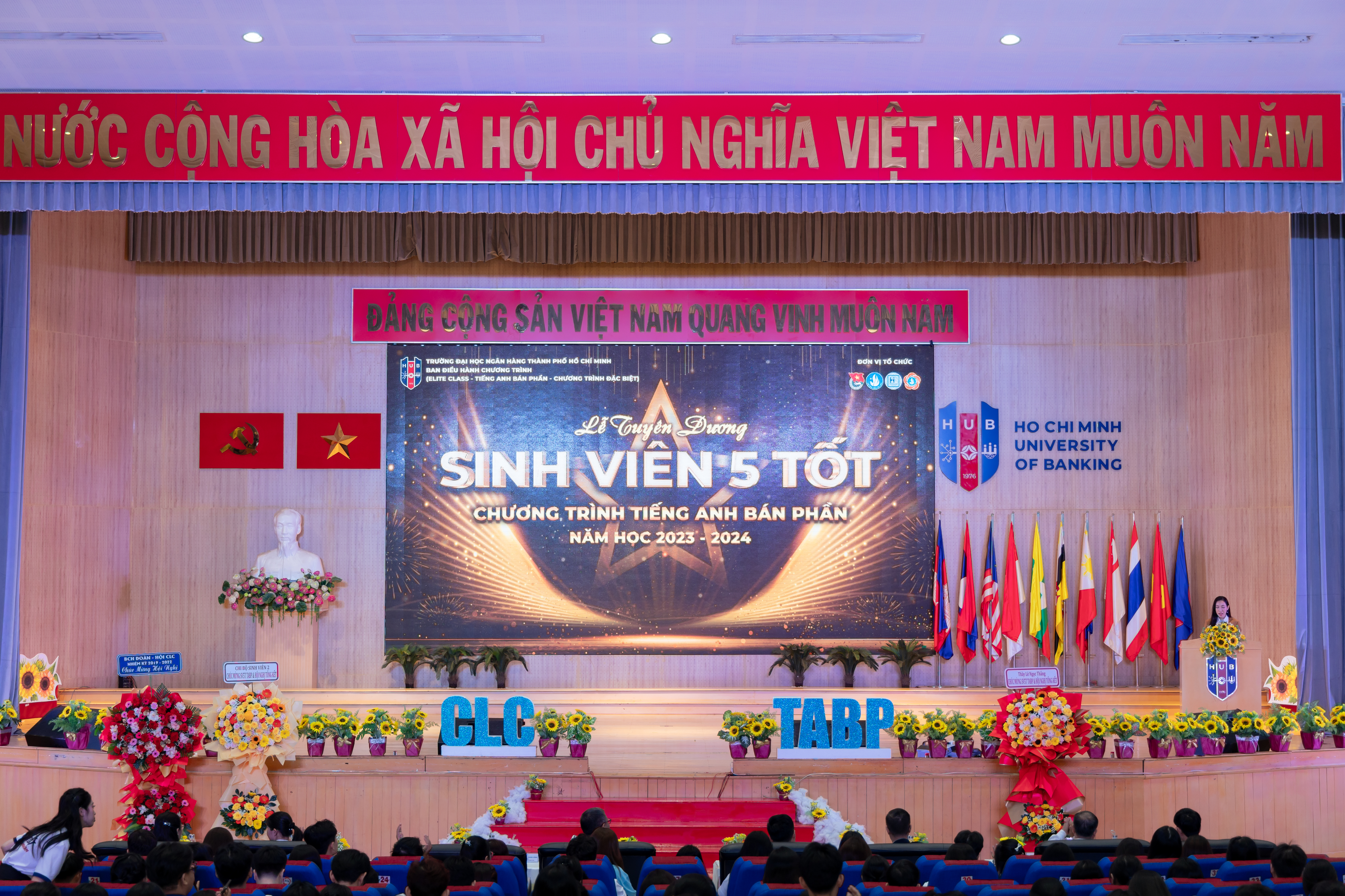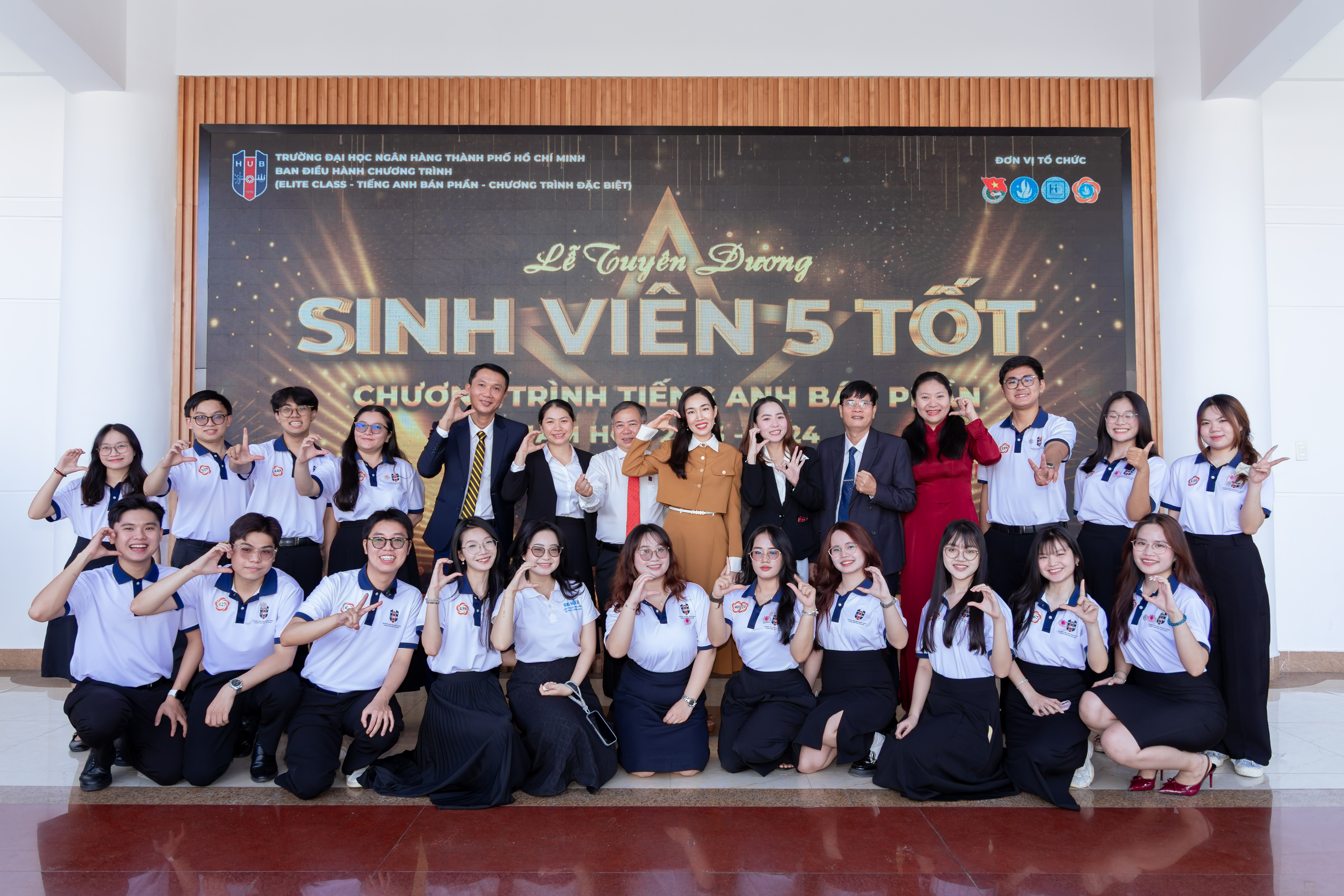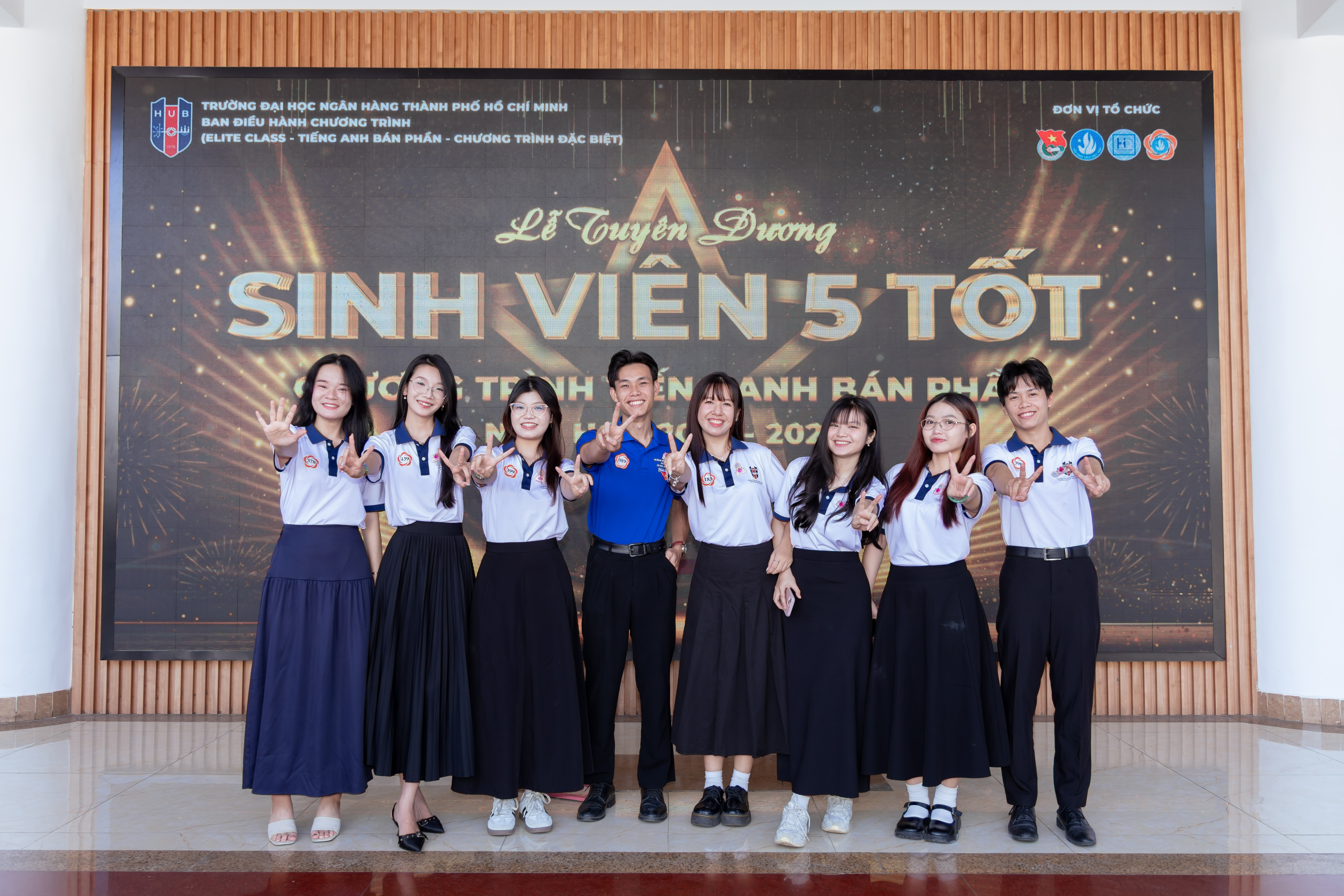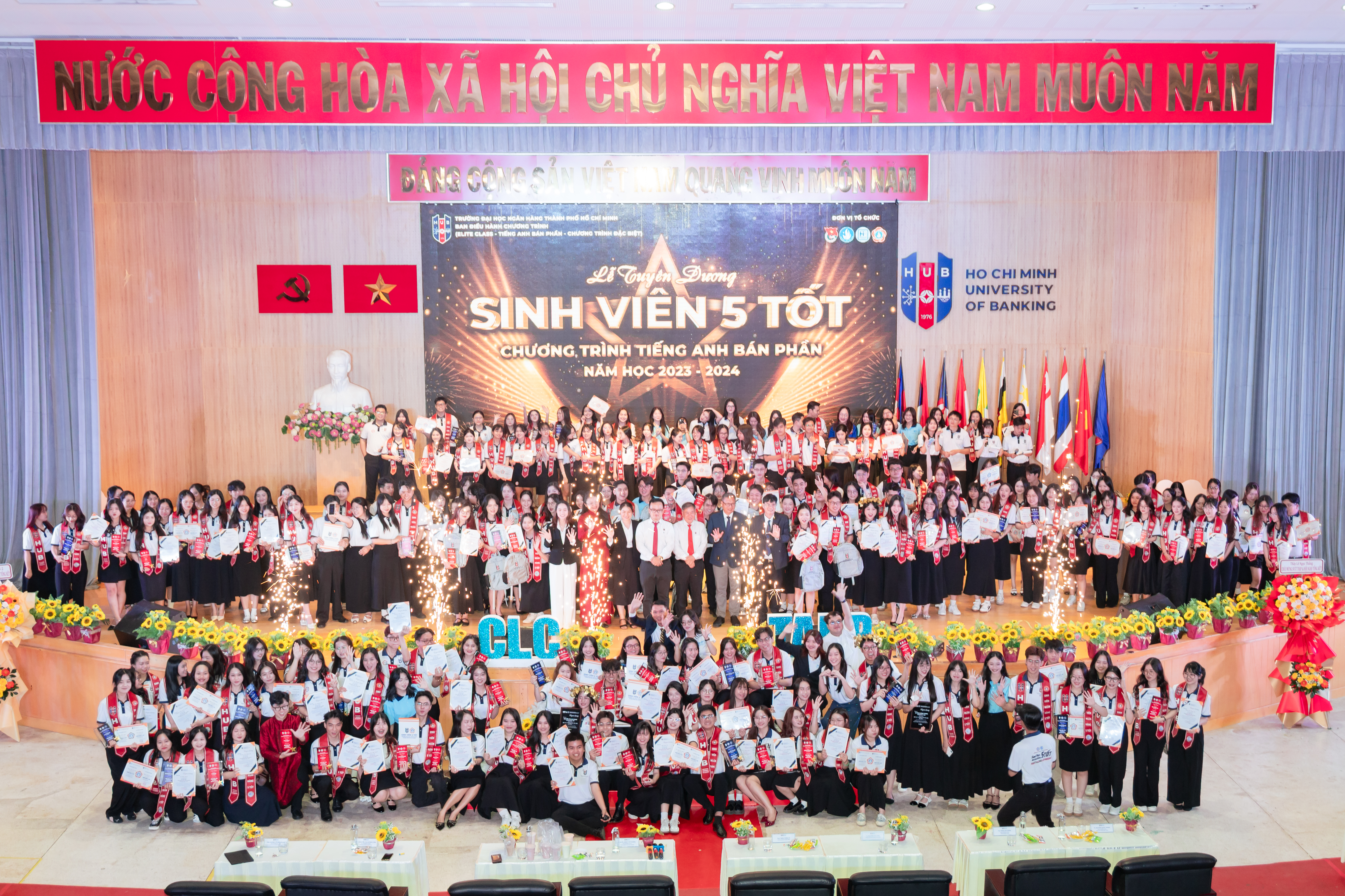 Sáng ngày 30/11, Chương trình Tiếng Anh Bán phần – Trường Đại học Ngân hàng TP.HCM đã long trọng tổ chức” Lễ Tuyên dương Sinh viên 5 tốt năm học 2023–2024”, nhằm ghi nhận và tôn vinh những cá nhân tiêu biểu đạt thành tích xuất sắc trong học tập, rèn luyện và hoạt động phong trào với 05 tiêu chí: Đạo đức tốt – Học tập tốt – Thể lực tốt – Tình nguyện tốt – Hội nhập tốt . Đây là sự kiện thường niên có ý nghĩa quan trọng, góp phần khẳng định chất lượng đào tạo và môi trường giáo dục toàn diện của nhà trường.