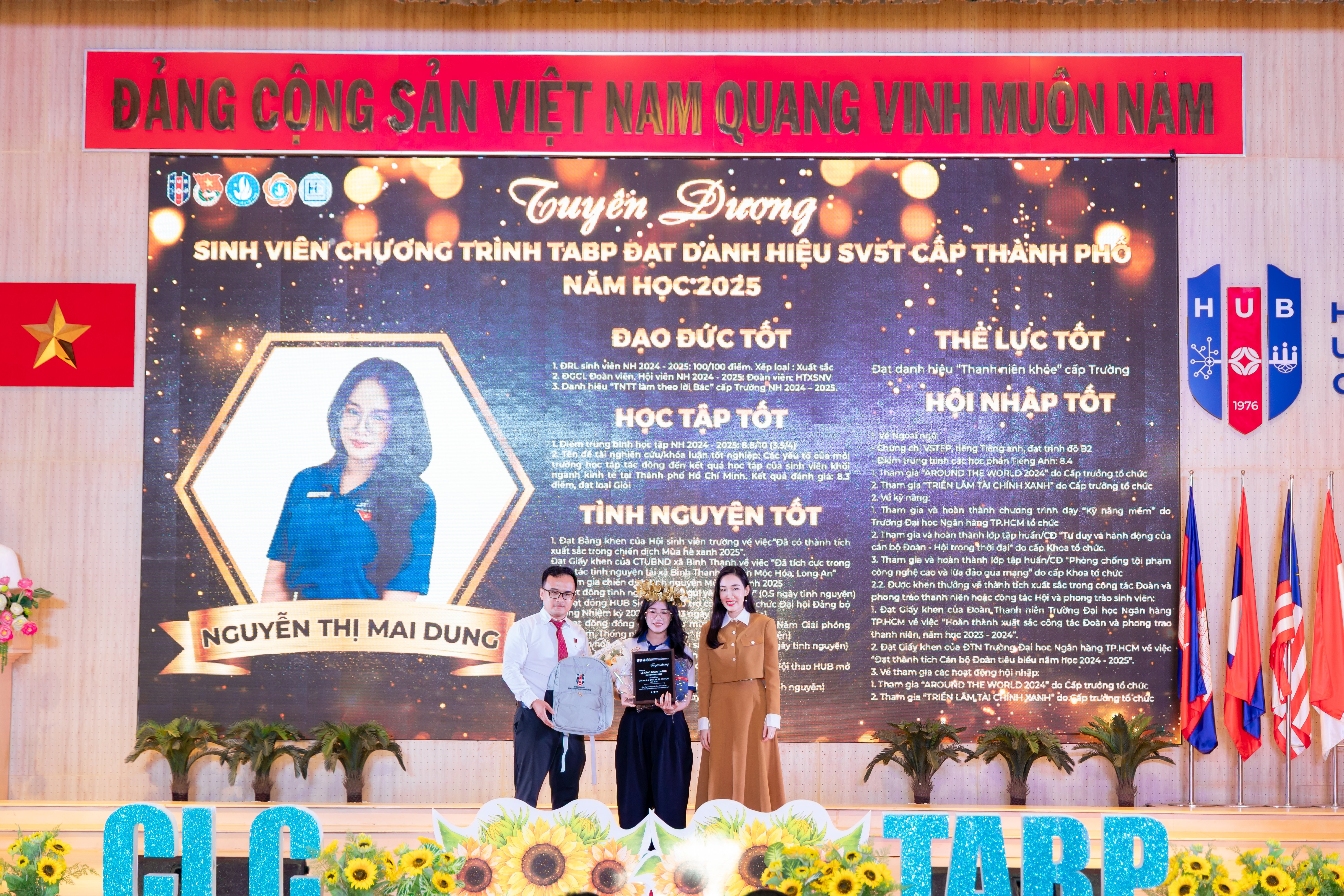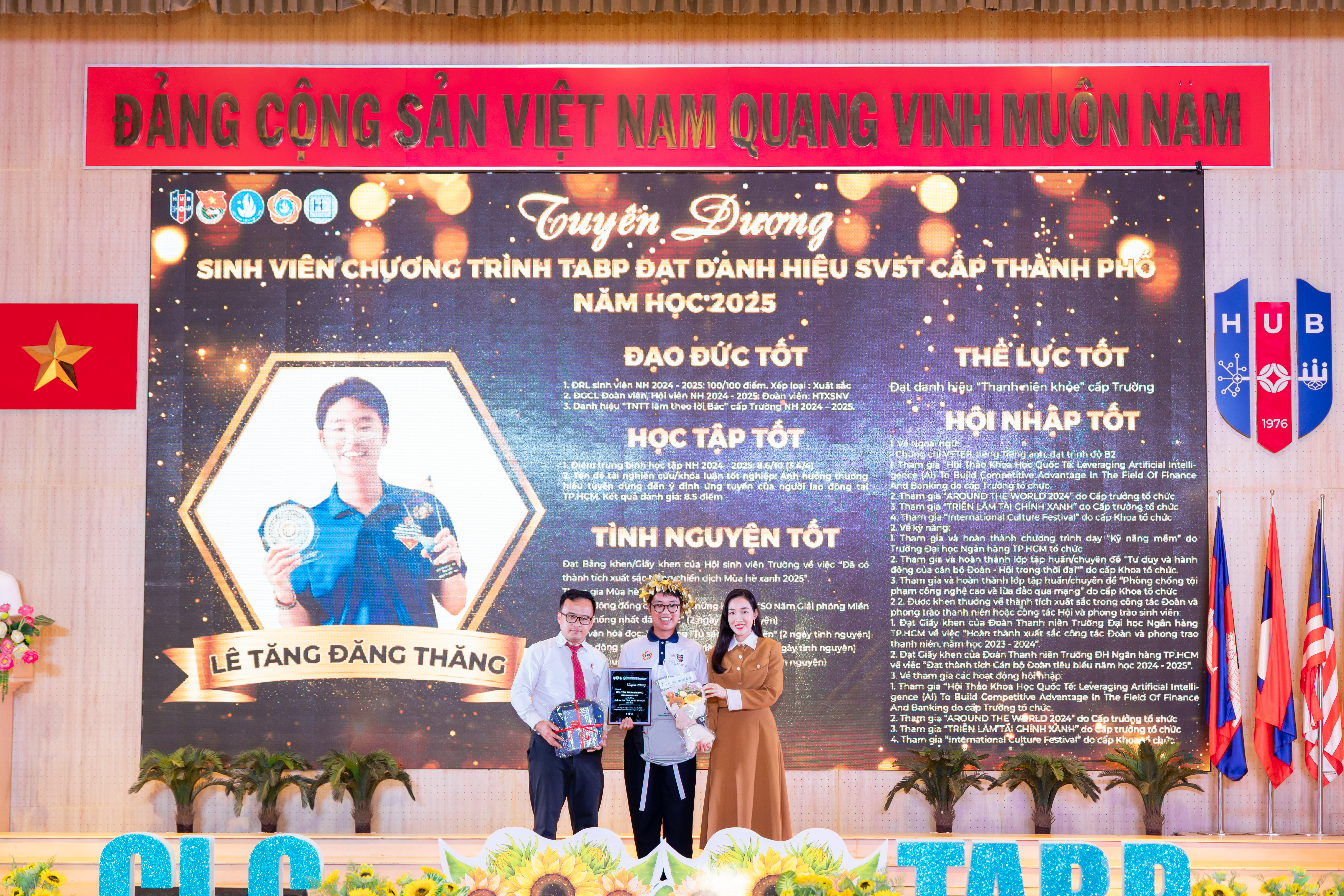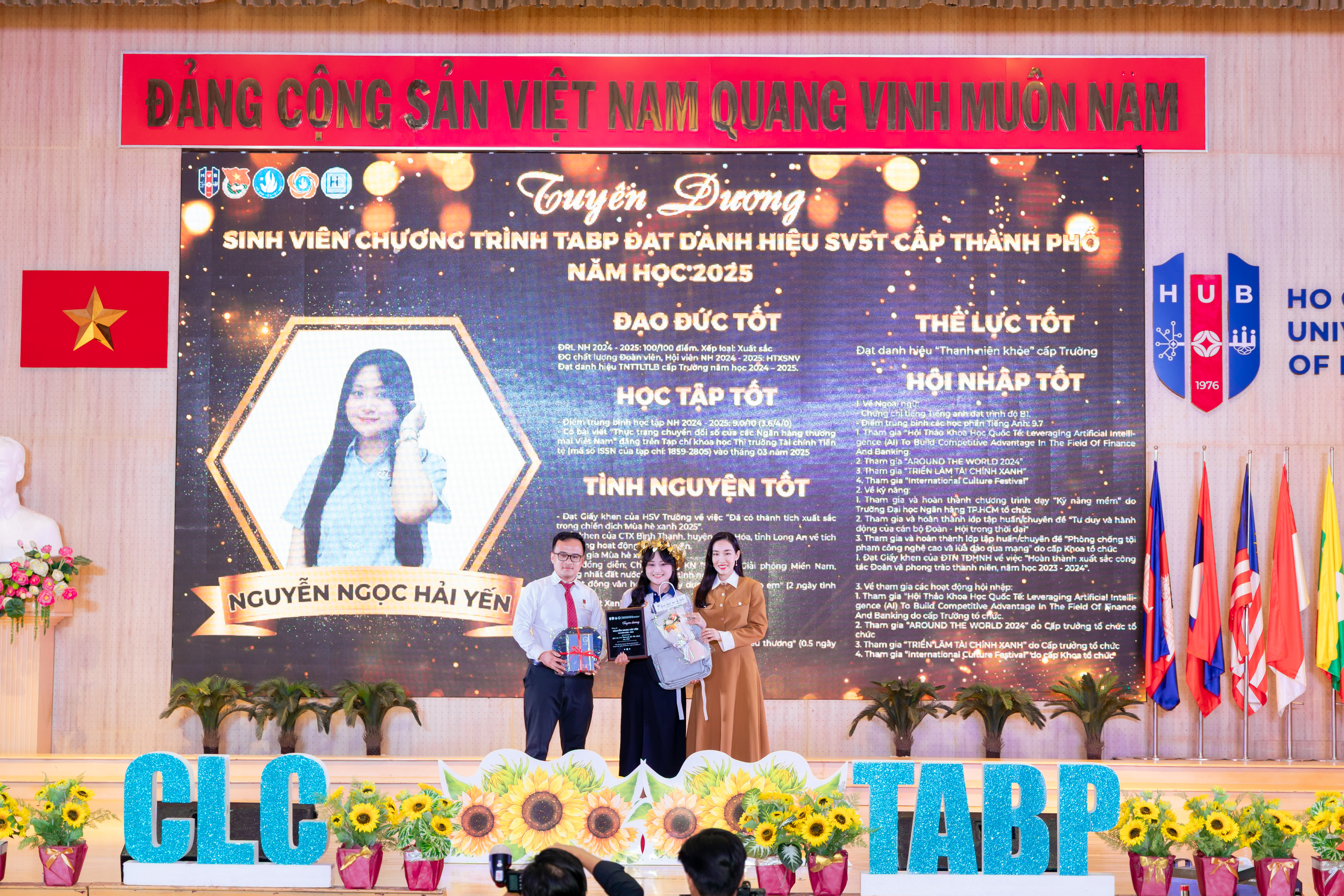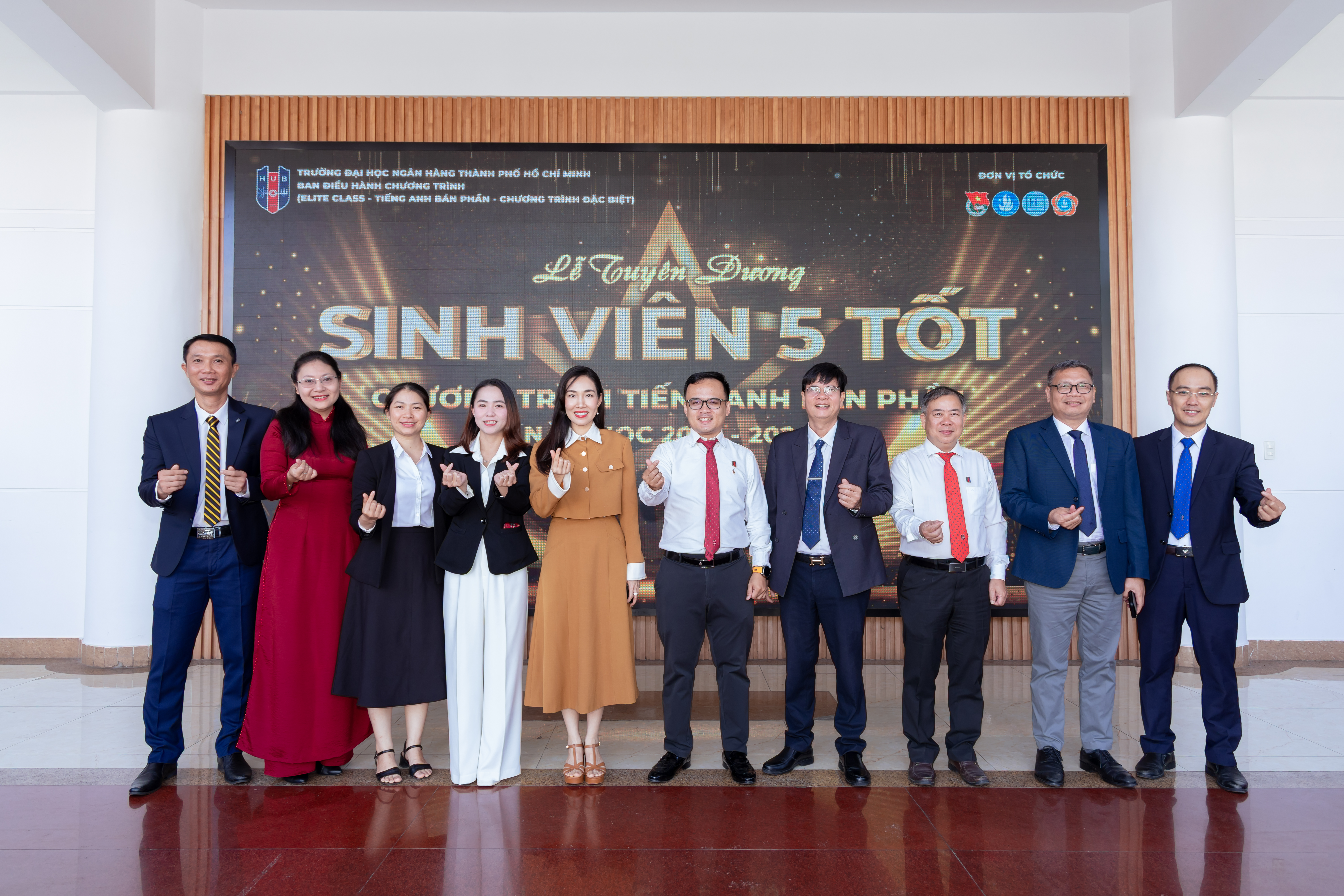 Sáng ngày 30/11, Chương trình Tiếng Anh Bán phần – Trường Đại học Ngân hàng TP.HCM đã long trọng tổ chức” Lễ Tuyên dương Sinh viên 5 tốt năm học 2023–2024”, nhằm ghi nhận và tôn vinh những cá nhân tiêu biểu đạt thành tích xuất sắc trong học tập, rèn luyện và hoạt động phong trào với 05 tiêu chí: Đạo đức tốt – Học tập tốt – Thể lực tốt – Tình nguyện tốt – Hội nhập tốt . Đây là sự kiện thường niên có ý nghĩa quan trọng, góp phần khẳng định chất lượng đào tạo và môi trường giáo dục toàn diện của nhà trường.