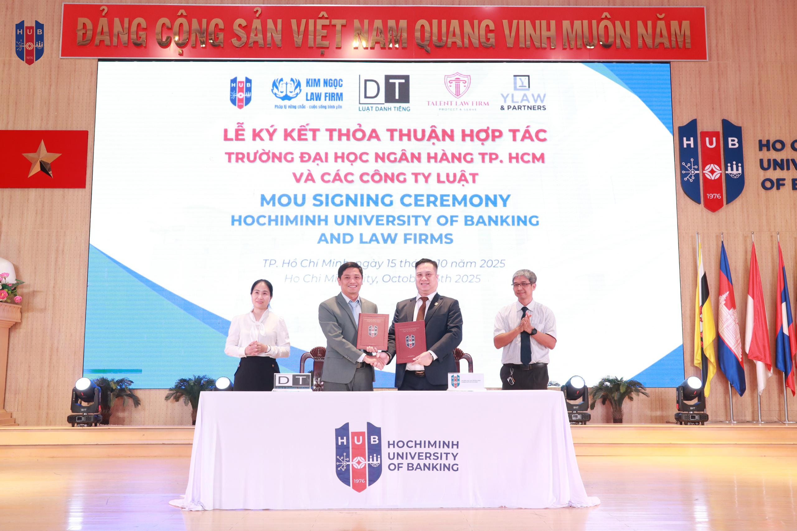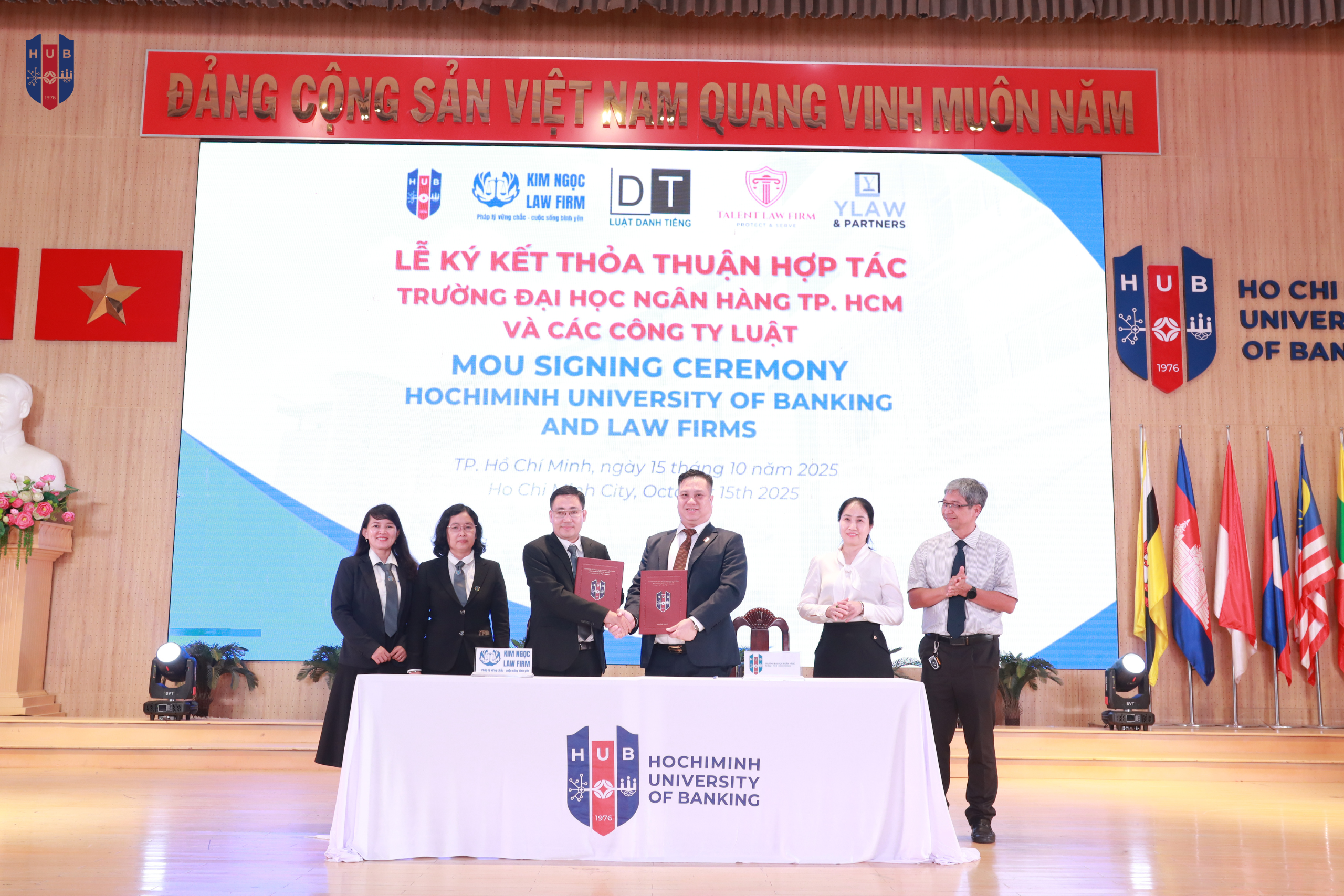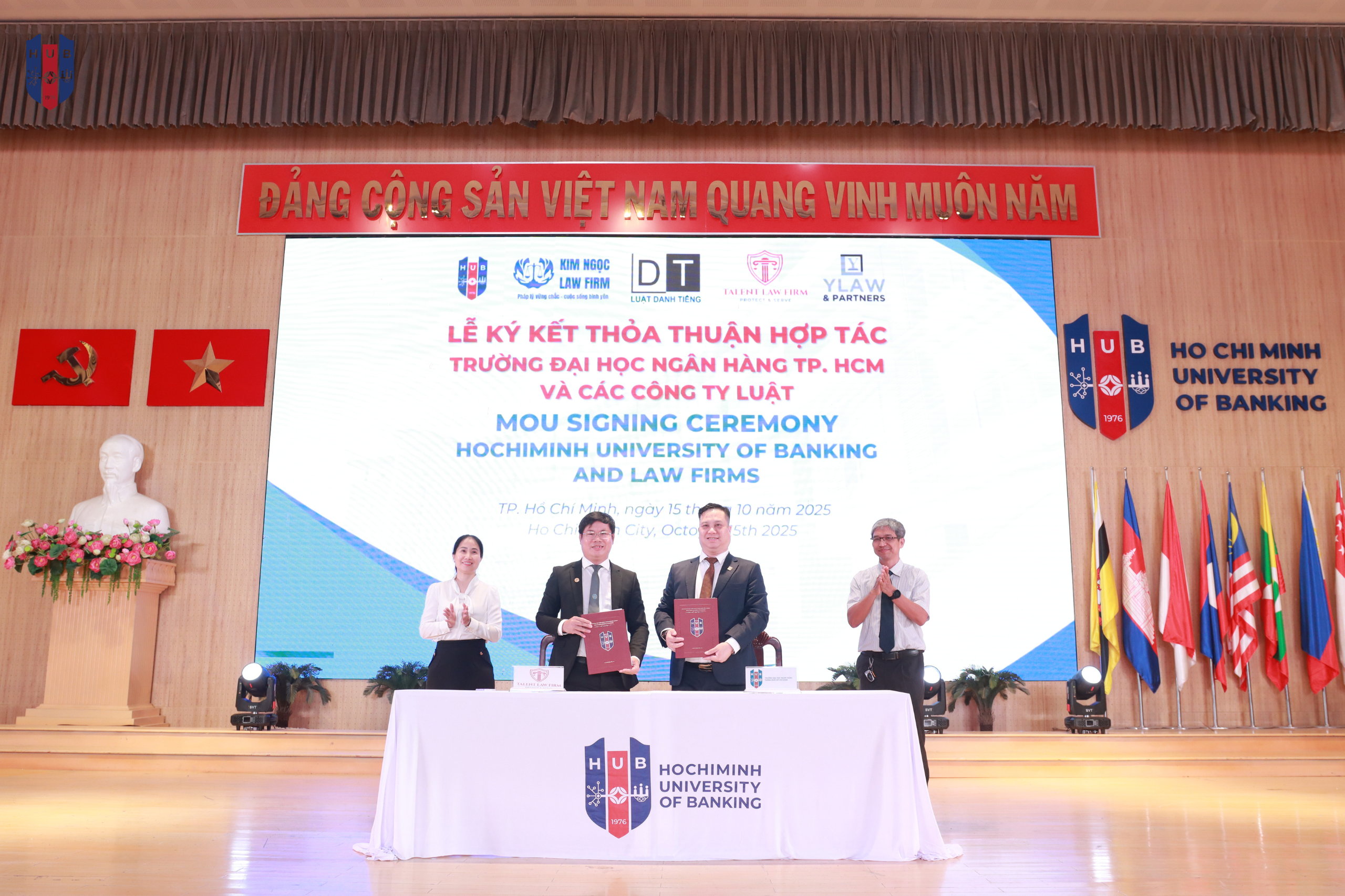 Ngày 15/10/2025, trong khuôn khổ chương trình “Chào đón Tân sinh viên K41 – OVERTURE” của Khoa Luật Kinh tế, Trường Đại học Ngân hàng TP. Hồ Chí Minh (HUB) đã long trọng tổ chức Lễ ký kết hợp tác giữa HUB và các doanh nghiệp pháp lý.