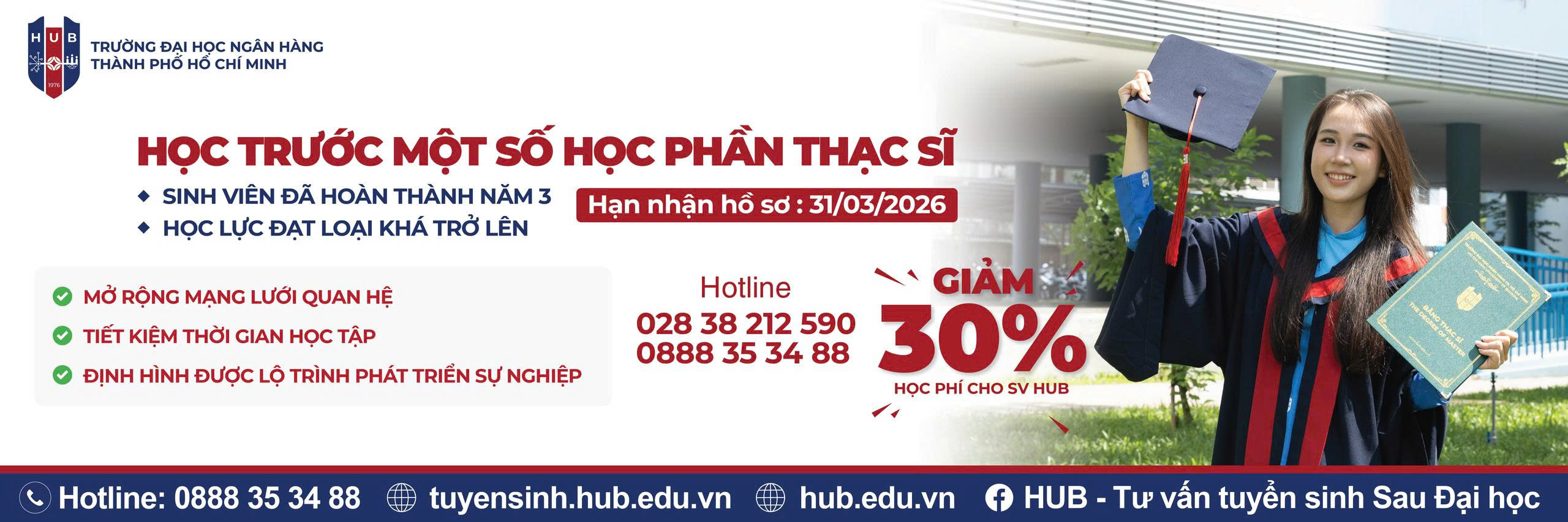 Để nắm rõ hơn thông tin liên quan đến việc đăng ký học trước một số học phần thuộc chương trình Thạc sĩ năm 2026 của Trường Đại học Ngân hàng TP. Hồ Chí Minh, vui lòng liên hệ Khoa Sau đại học: