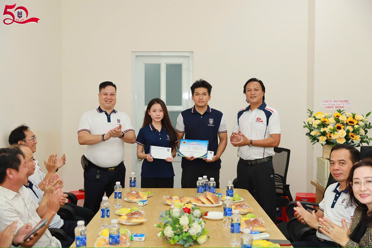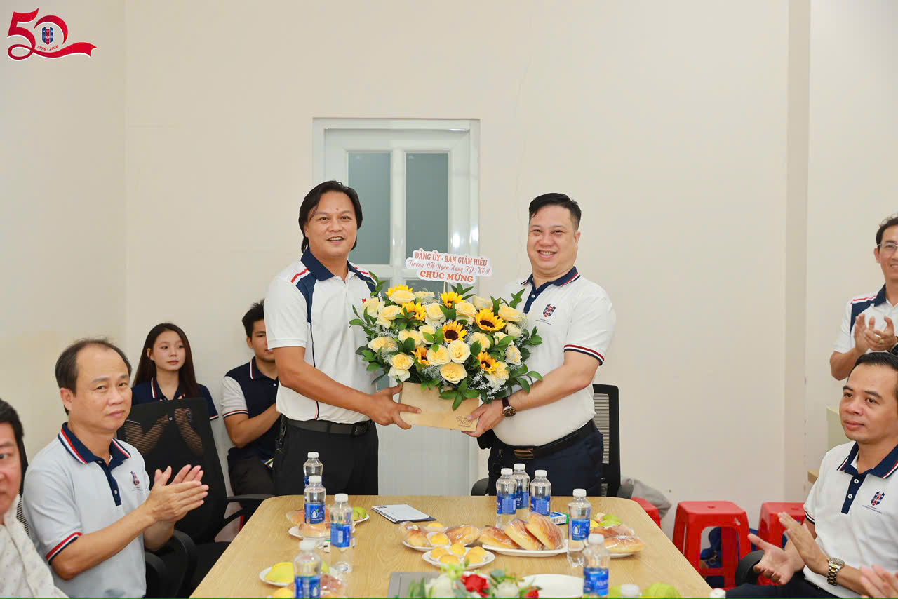 Đảng uỷ - Ban giám hiệu tặng hoa chúc mừng