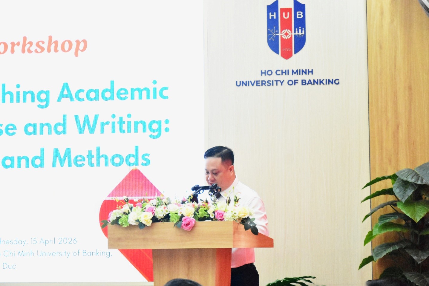 Sáng ngày 15 tháng 4 năm 2026, tại Hội trường HT01 – Cơ sở 56 Hoàng Diệu 2, Thủ Đức, Khoa Ngoại ngữ – Trường Đại học Ngân hàng TP. Hồ Chí Minh (HUB) đã tổ chức Tọa đàm học thuật với chủ đề “Researching Academic Discourse and Writing: Issues and Methods”, thu hút sự tham gia của đông đảo giảng viên, học viên cao học và sinh viên ngành Ngôn ngữ Anh.
