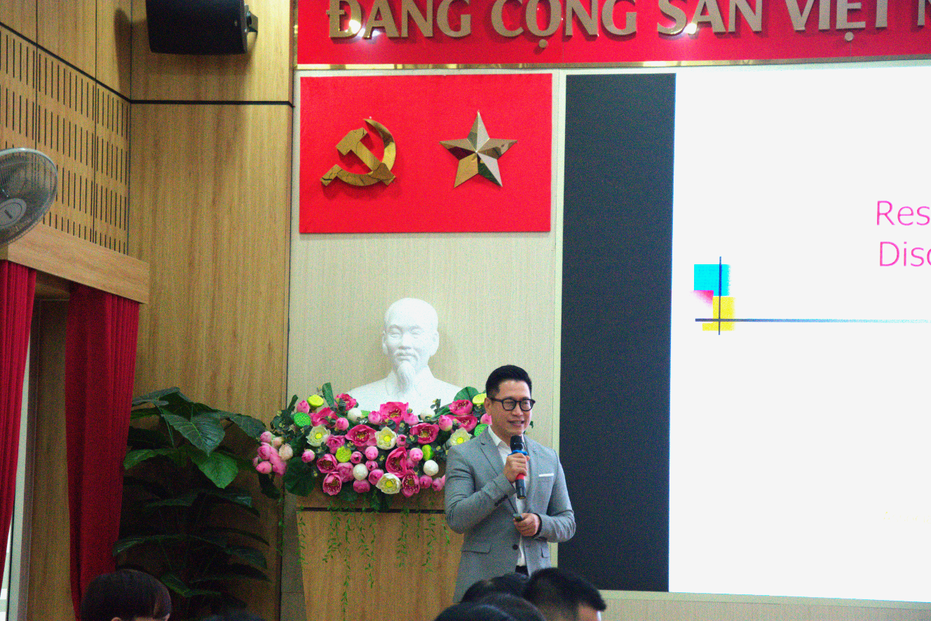 Phát biểu khai mạc, GS.TS. Nguyễn Đức Trung nhấn mạnh vai trò quan trọng của nghiên cứu ngôn ngữ và việc giảng dạy viết học thuật trong đào tạo sau đại học, đặc biệt trong bối cảnh hội nhập và quốc tế hóa giáo dục. Ông khẳng định Nhà trường luôn tạo điều kiện để giảng viên và học viên tiếp cận các xu hướng nghiên cứu hiện đại.