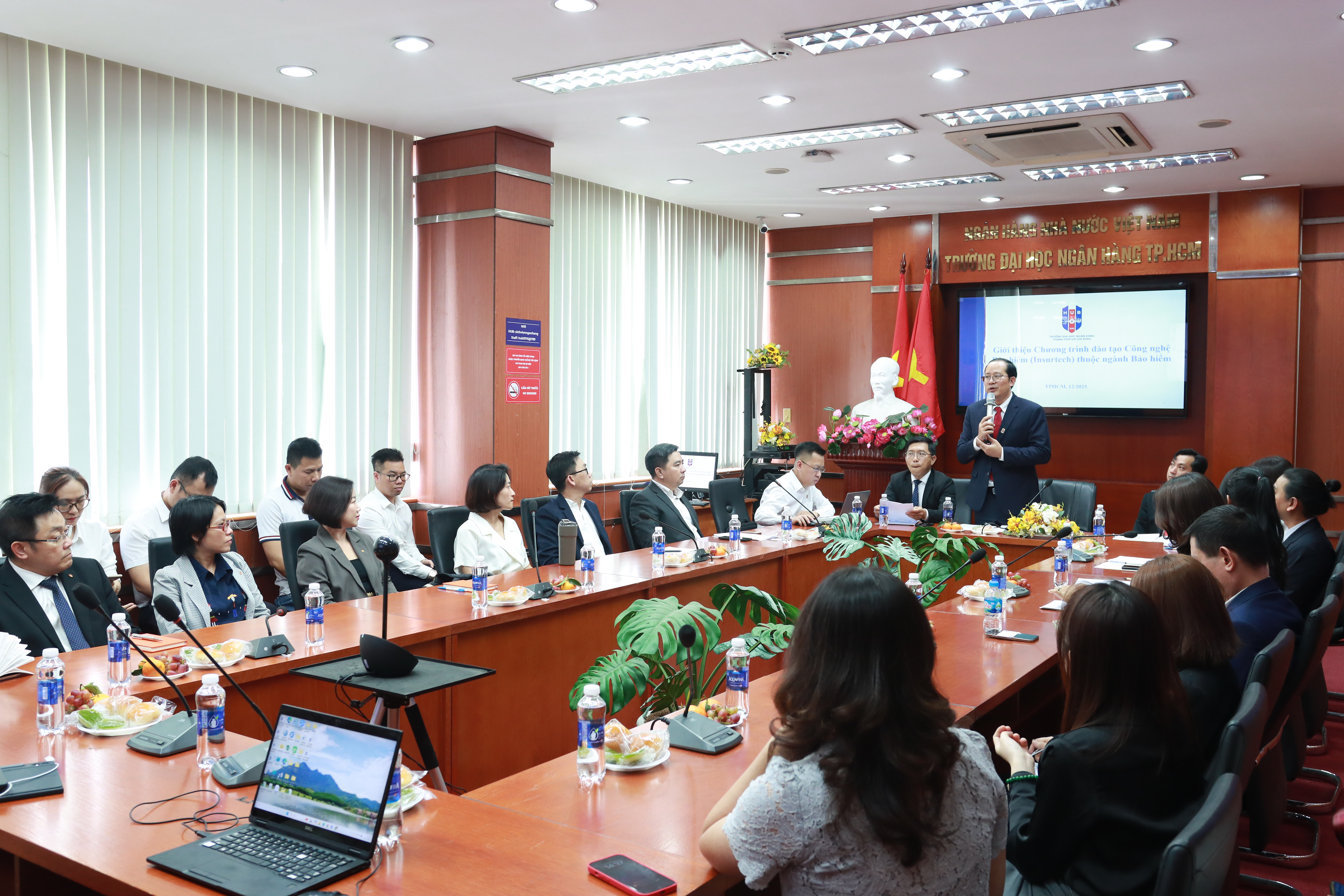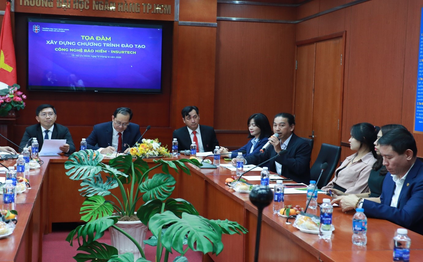 Trong bối cảnh công nghệ đang tái định hình toàn bộ ngành tài chính – bảo hiểm, Trường Đại học Ngân hàng TP.HCM (HUB) tiếp tục khẳng định vai trò tiên phong khi phát triển chương trình đào tạo Công nghệ Bảo hiểm (Insurtech). Vào chiều 12/12/2025 tại cơ sở Tôn Thất Đạm, Phường Sài Gòn, TP. Hồ Chí Minh, HUB đã tổ chức Tọa đàm “Trao đổi nội dung xây dựng chương trình đào tạo Công nghệ Bảo hiểm – Insurtech”. Sự kiện quy tụ đông đảo chuyên gia từ các trường đại học, doanh nghiệp bảo hiểm, ngân hàng thương mại và đơn vị tư vấn, thể hiện quyết tâm mạnh mẽ trong việc xây dựng chương trình đào tạo Insurtech chuẩn mực, hiện đại và bám sát nhu cầu nhân lực trong bối cảnh chuyển đổi số và kỷ nguyên AI.