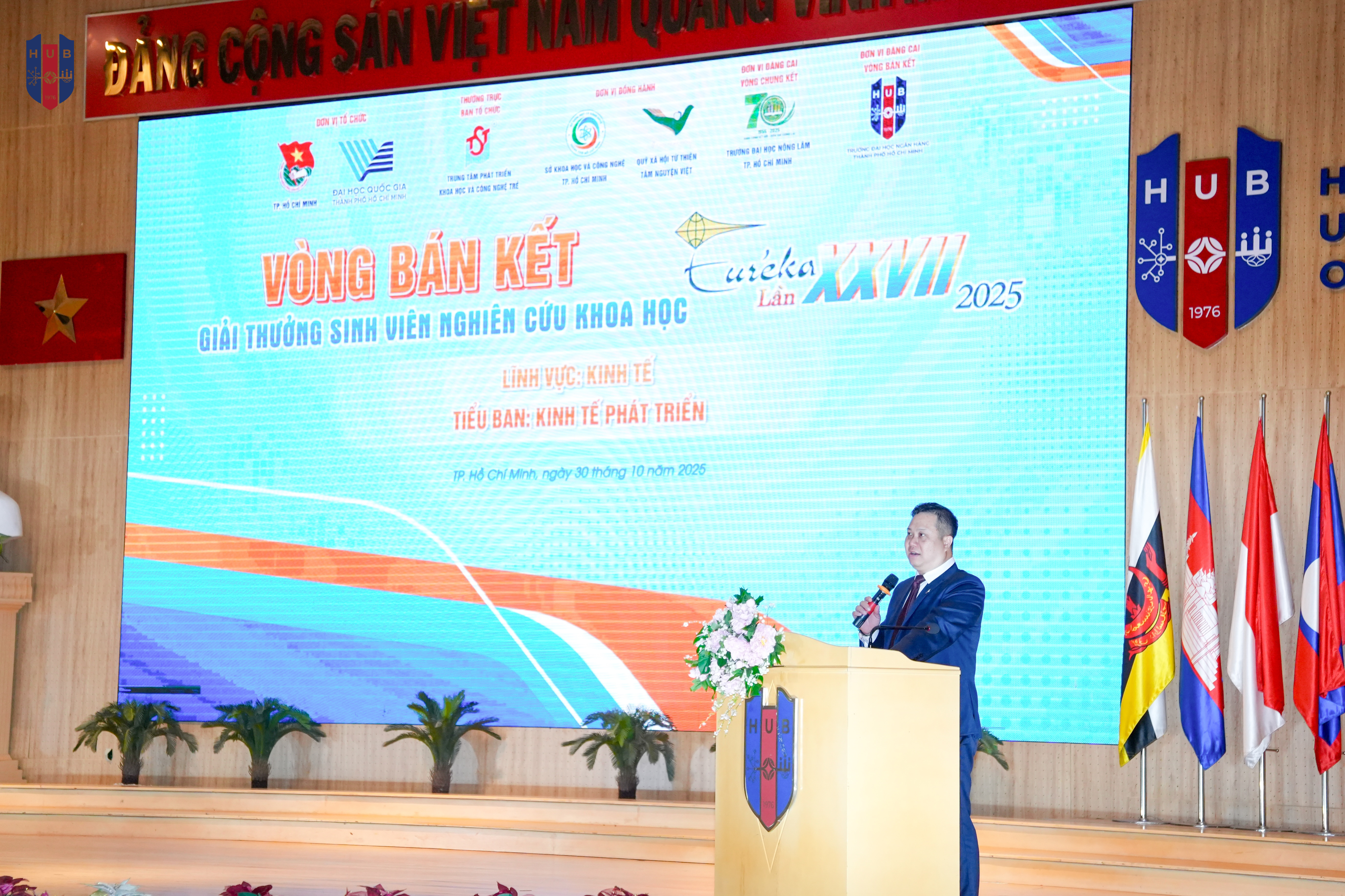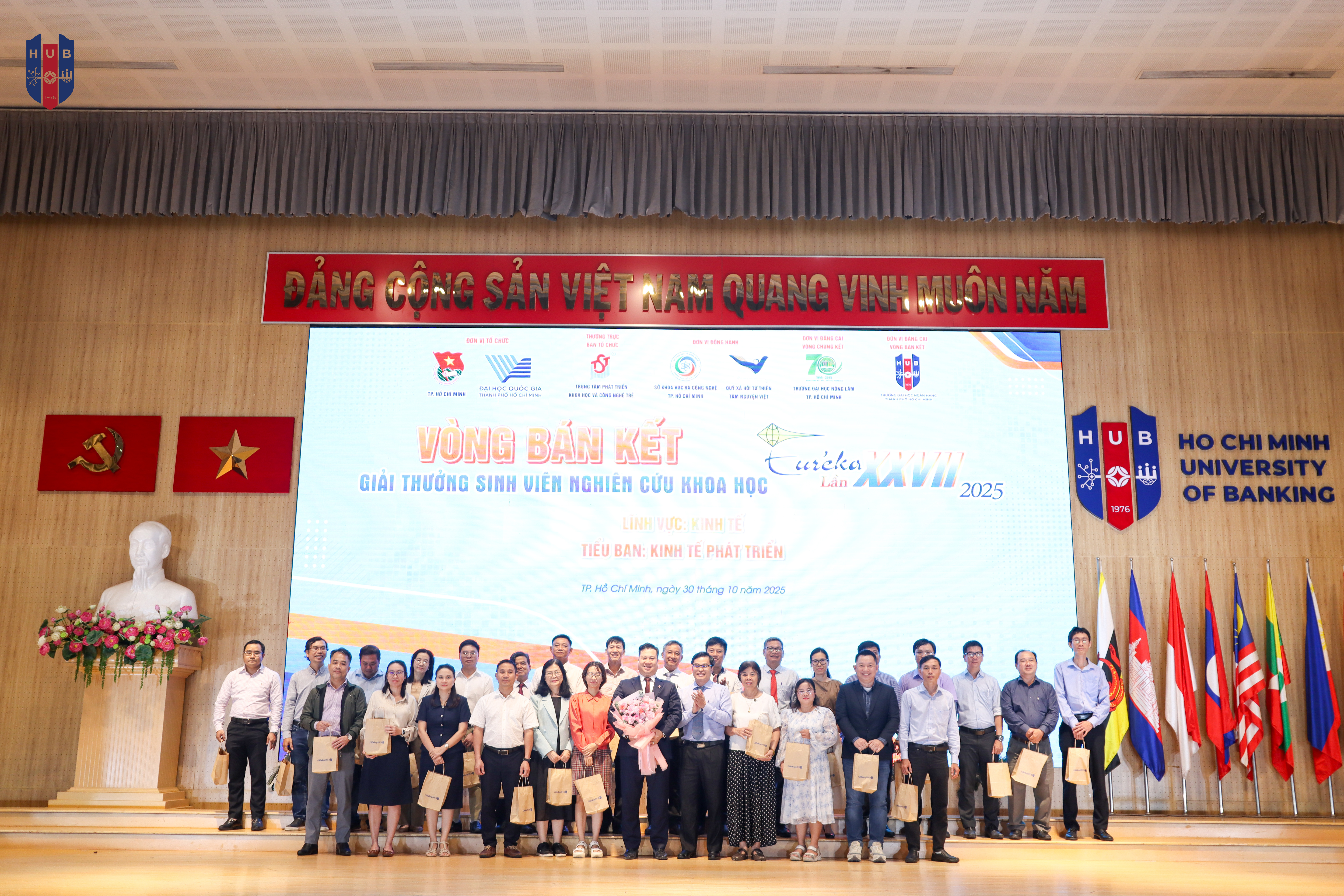 Vào chiều ngày 30/10, tại Hội trường lớn- cơ sở 56 Hoàng Diệu 2, Trường Đại học Ngân hàng Thành phố Hồ Chí Minh đã đăng cai Lễ Khai mạc Vòng bán kết Lĩnh vực Kinh tế – Tiểu ban Kinh tế Phát triển của Giải thưởng Sinh viên Nghiên cứu Khoa học Euréka lần thứ 27 năm 2025, với 109 đề tài đến từ 48 trường và sự góp mặt của 373 thí sinh trên toàn quốc.