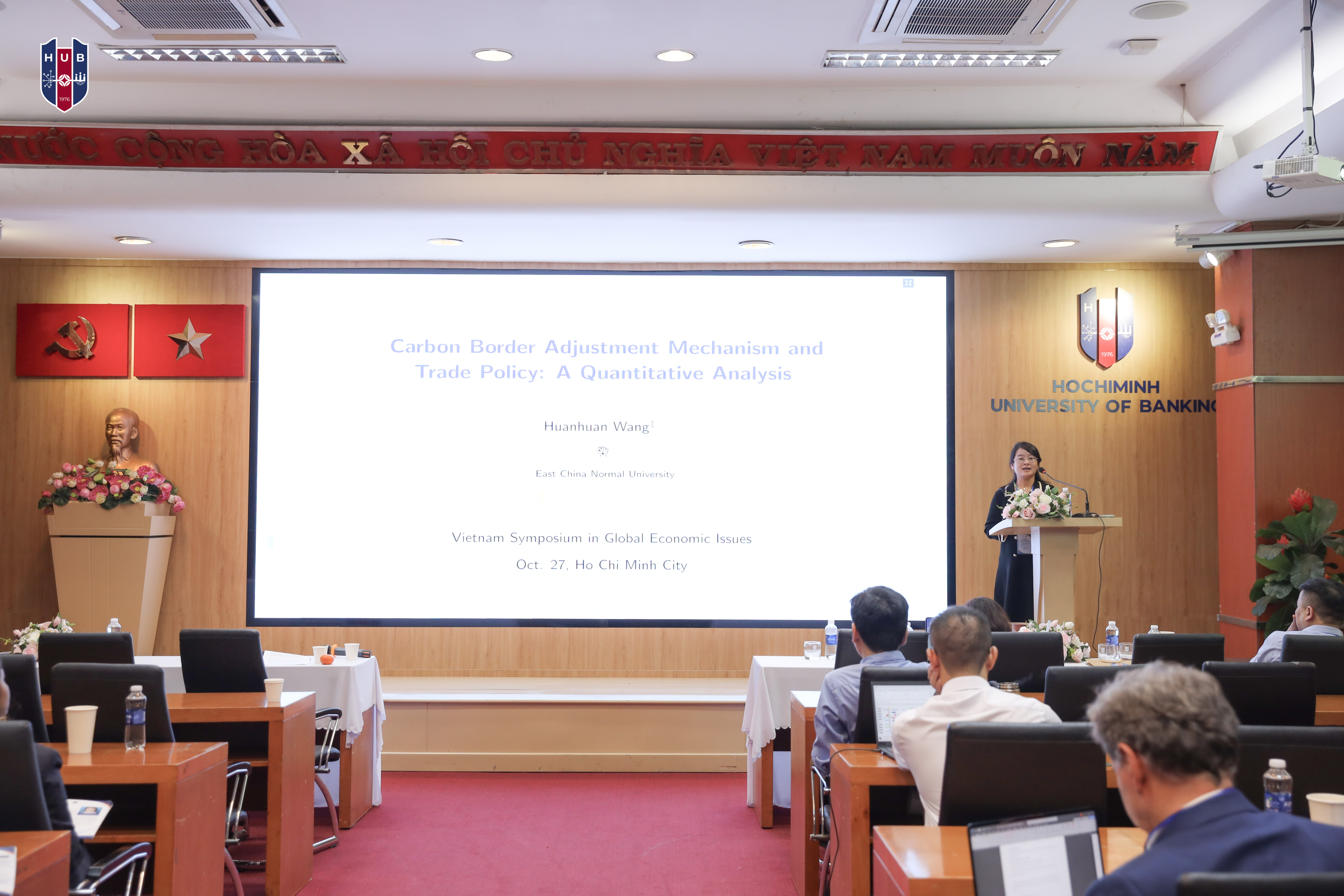 Sau lễ khai mạc, Diễn đàn VSGE 2025 bước vào các phiên thảo luận học thuật chuyên sâu với ba chủ đề trọng tâm: “Dirty Trade War - The Effects of Trade War on Carbon Emissions” do GS. Haichao Fan trình bày; “Carbon Border Adjustment Mechanism and Trade Policy: A Quantitative Analysis” do GS. Huanhuan Wang trình bày; và “The Macroeconomic Effects of Cash Transfers: Evidence from Brazil” do TS. Nguyễn Thúy Lan trình bày.